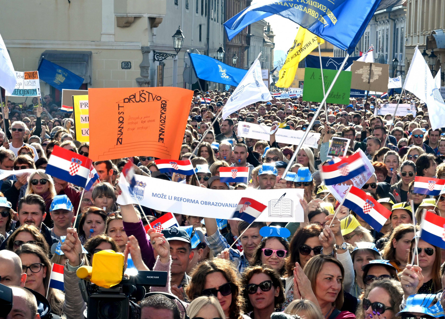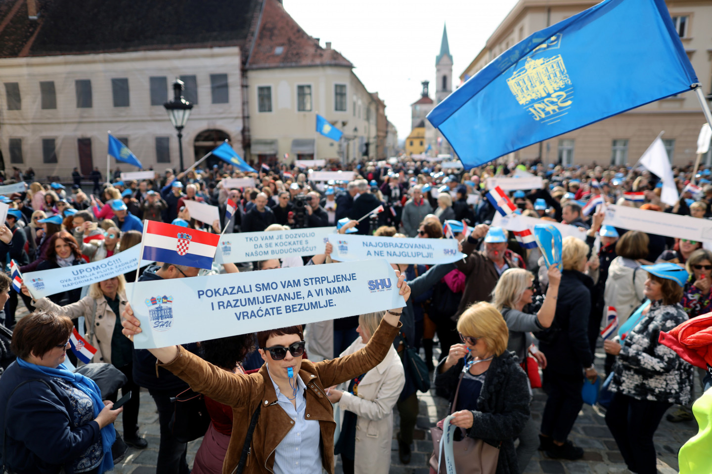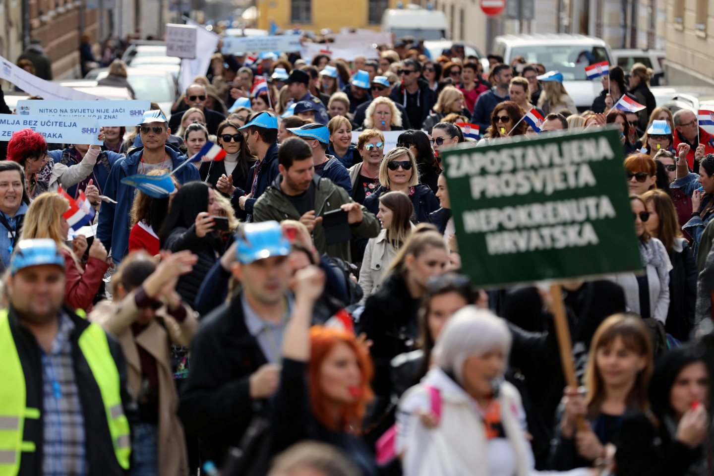 Vairāk nekā 2000 skolotāju un citi Horvātijas izglītības sistēmas darbinieki trešdien sapulcējušies uz protestiem Zagrebā, pieprasot algu palielināšanu. Pēc gandrīz mēnesi ilga streika skolotāji šodien devās gājienā pa Zagrebas ielām un pēc tam sapulcējās pie valdības ēkas. Arodbiedrības pieprasa algu palielināšanu, taču sarunas ar valdību līdz šim nav devušas rezultātus. "Ir svarīgi parādīt valdībai, ka skolotāji ir gatavi cīnīties par savu cieņu," sacīja Horvātijas skolotāju arodbiedrības pārstāve. Skolotāji sāka streikot pagājušajā mēnesī, dažādās pašvaldībās apturot mācības dažādās nedēļas dienās. Horvātijā darbojas aptuveni 1000 skolu ar desmitiem tūkstošiem darbinieku.