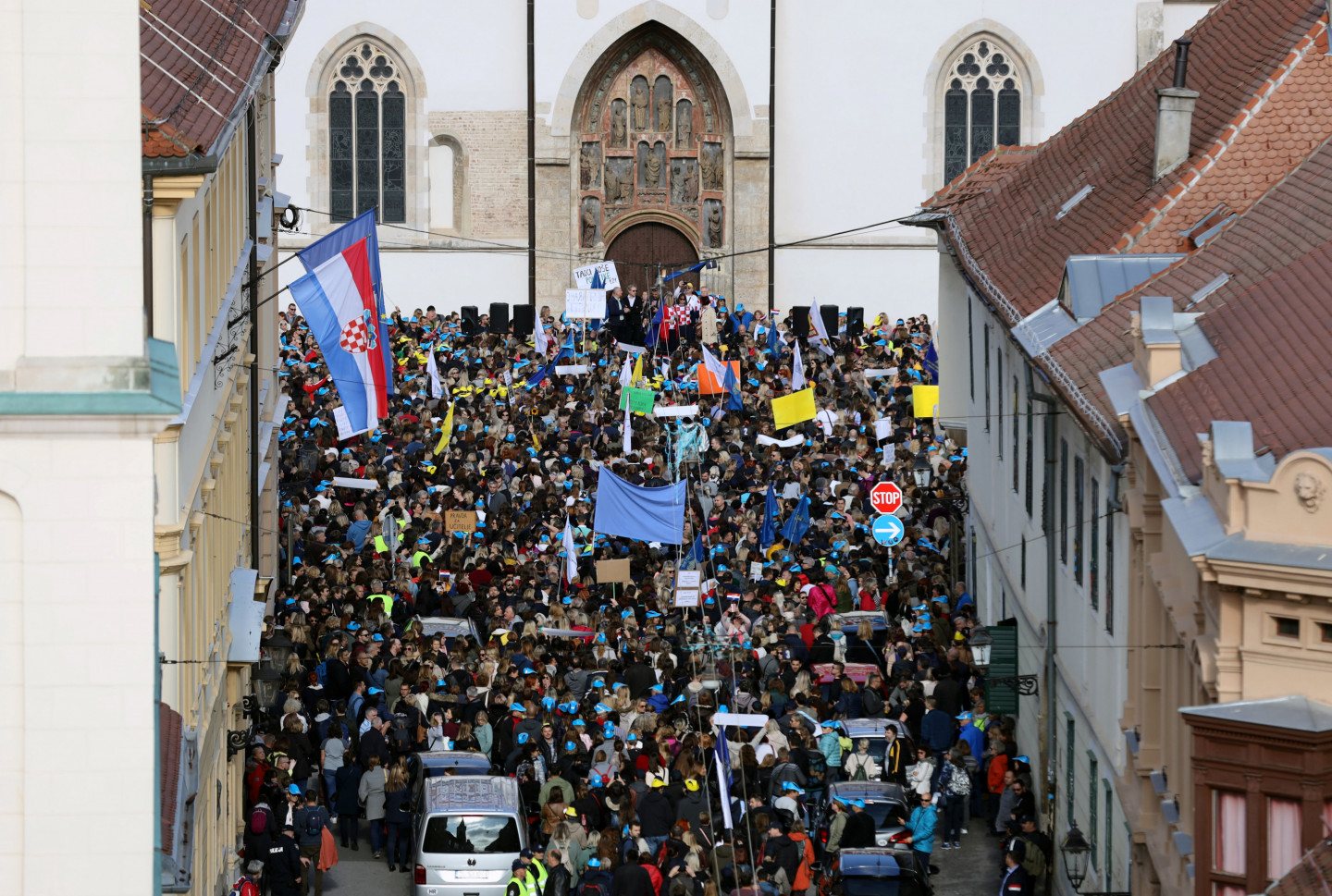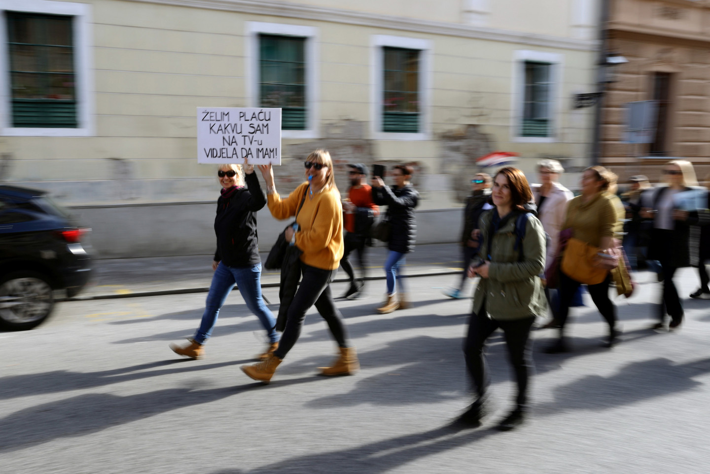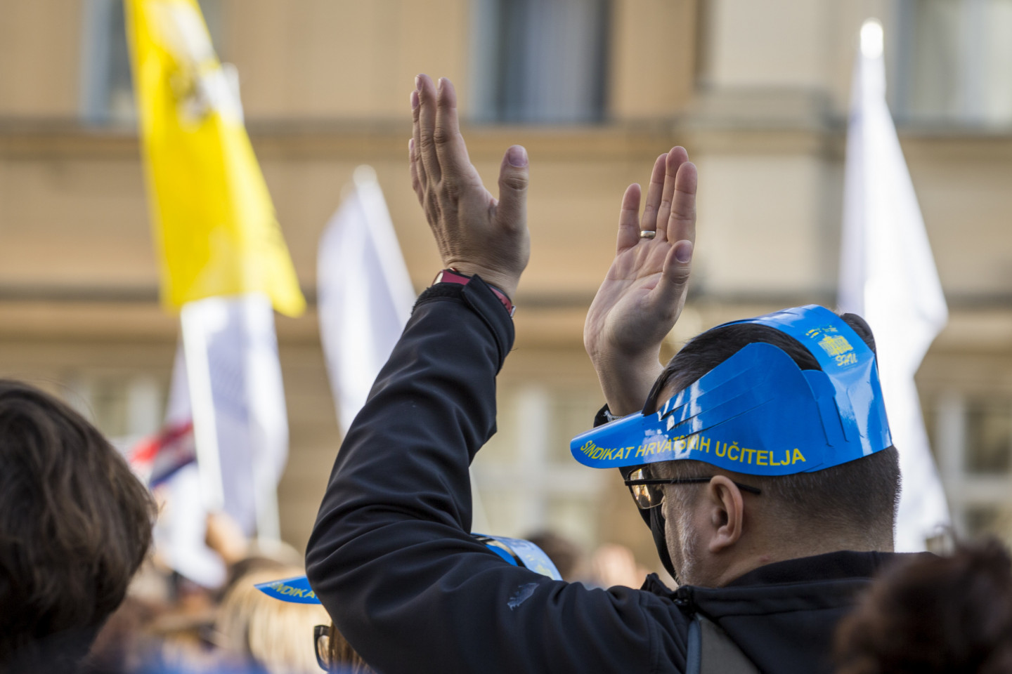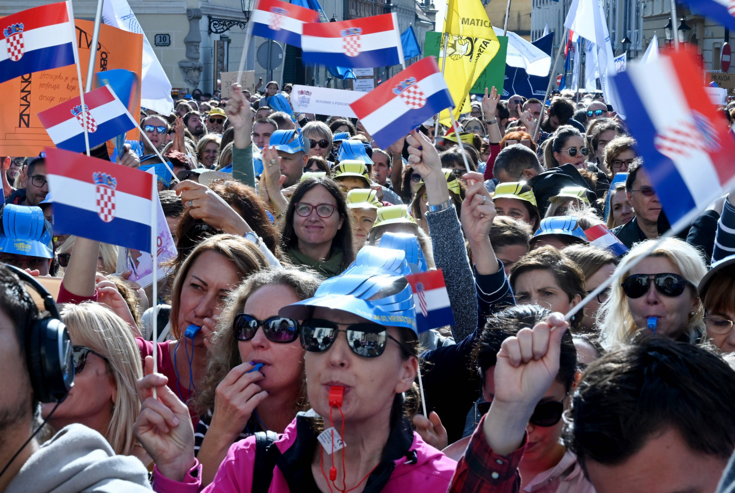 Vairāk nekā 2000 skolotāju un citi Horvātijas izglītības sistēmas darbinieki trešdien sapulcējušies uz protestiem Zagrebā, pieprasot algu palielināšanu. Pēc gandrīz mēnesi ilga streika skolotāji šodien devās gājienā pa Zagrebas ielām un pēc tam sapulcējās pie valdības ēkas. Arodbiedrības pieprasa algu palielināšanu, taču sarunas ar valdību līdz šim nav devušas rezultātus. "Ir svarīgi parādīt valdībai, ka skolotāji ir gatavi cīnīties par savu cieņu," sacīja Horvātijas skolotāju arodbiedrības pārstāve. Skolotāji sāka streikot pagājušajā mēnesī, dažādās pašvaldībās apturot mācības dažādās nedēļas dienās. Horvātijā darbojas aptuveni 1000 skolu ar desmitiem tūkstošiem darbinieku.