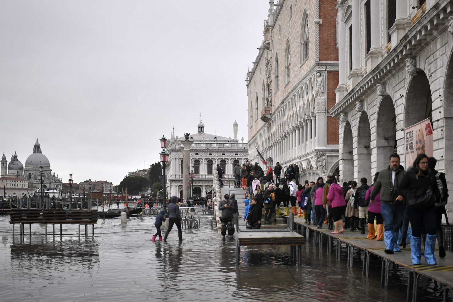 Venēcijā slēgts tās slavenais Svētā Marka laukums, kas atrodas vienā no zemākajām pilsētas vietām un šonedēļ lielāko daļu bijis zem ūdens saistībā ar plašajiem plūdiem pilsētā. "Vēl viena ārkārtas situācijas diena," tviterī paziņoja Venēcijas mērs Luidži Brugnaro, norādot arī uz spēcīgo vēju. Svētā Marka laukums ir slēgts, lai izvairītos no apmeklētāju apdraudējuma, sacīja mērs, aicinot iedzīvotājus un tūristus būt piesardzīgiem. Piektdien priekšpusdienā ūdens līmenis sasniedzis 153 centimetrus virs ierastā jūras līmeņa, bet pēc tam sācis kristies, norādīja pašvaldība. Venēcijā slēgtas skolas un līdzās Svētā Marka laukumam esošā Dodžu pils. Apmēram 70% UNESCO Pasaules mantojumā iekļautās pilsētas ir zem ūdens, aplēsušie vietējie mediji.