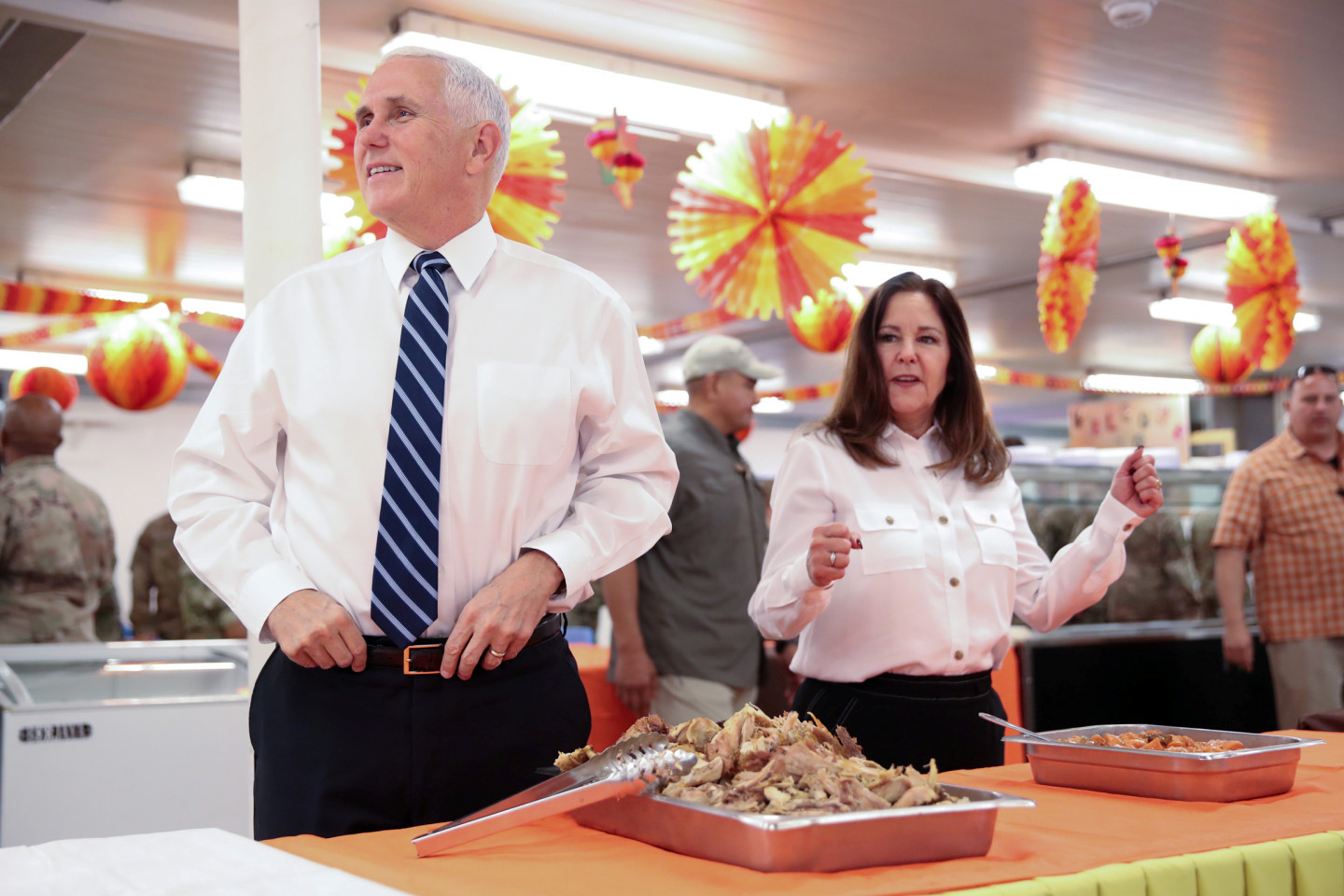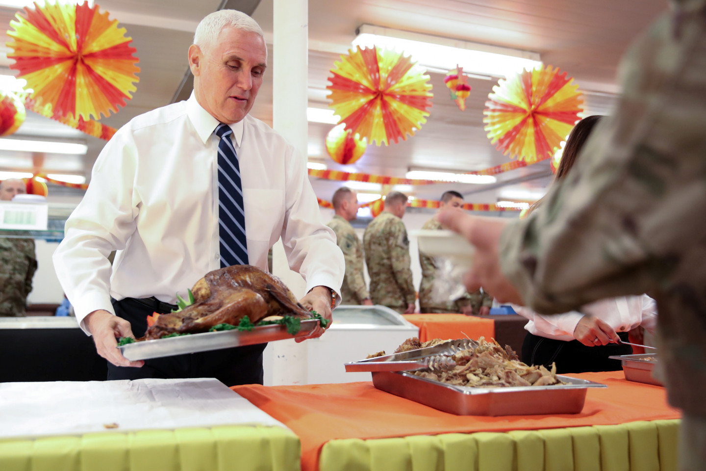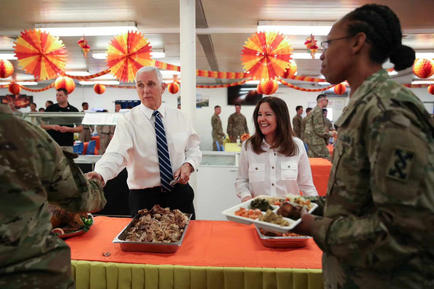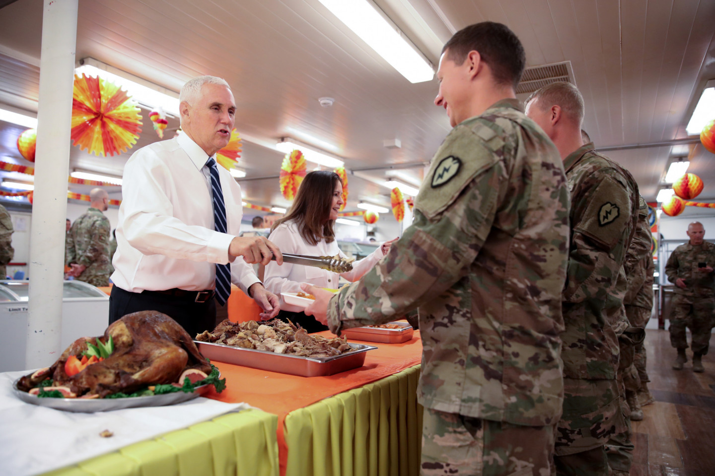 ASV viceprezidents Maiks Penss pasniedz Pateicības dienas maltīti karavīriem Irākā
