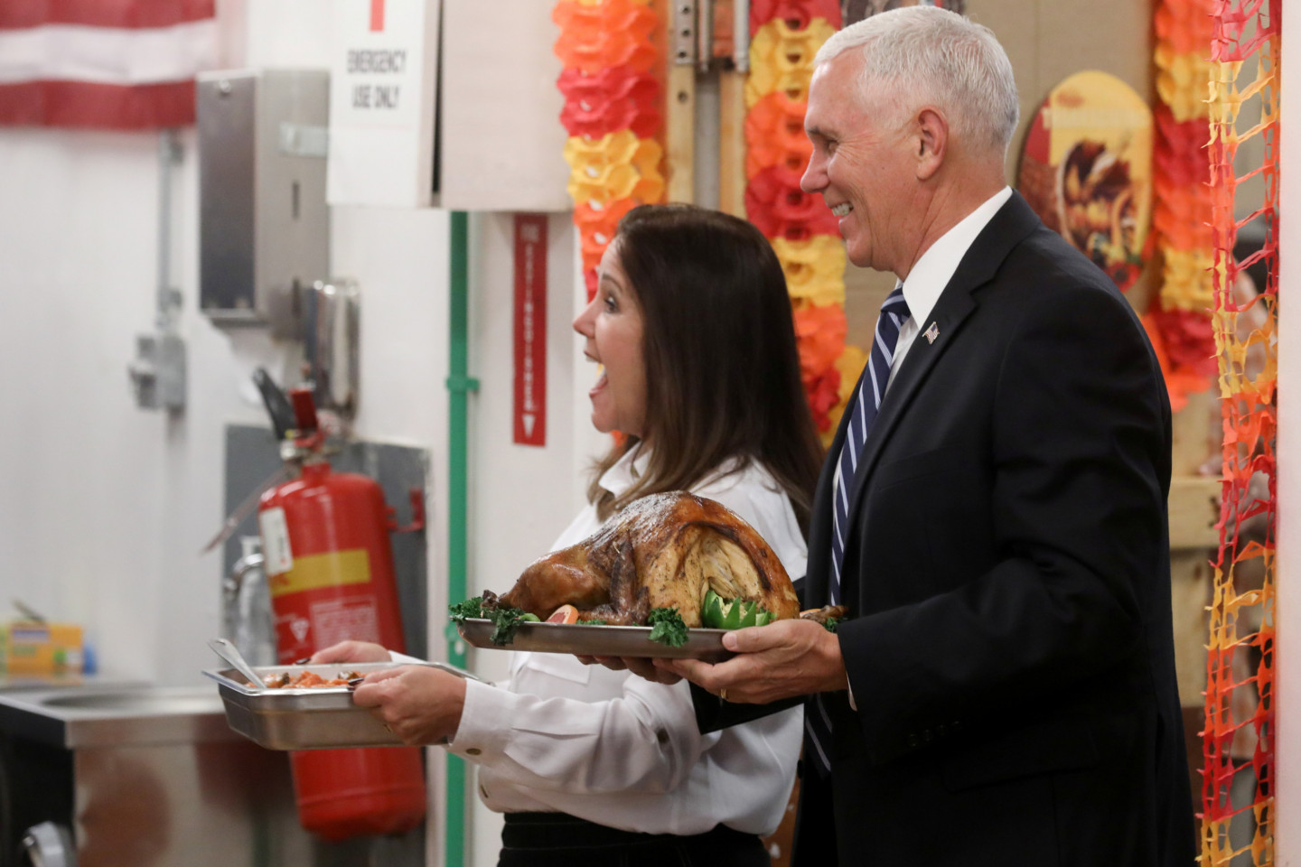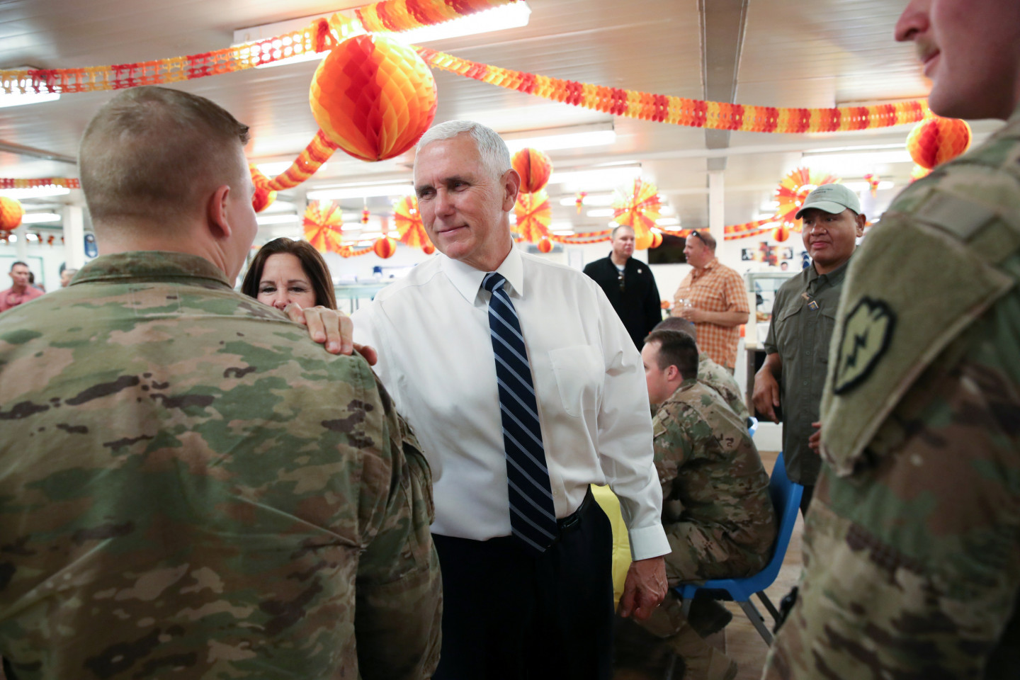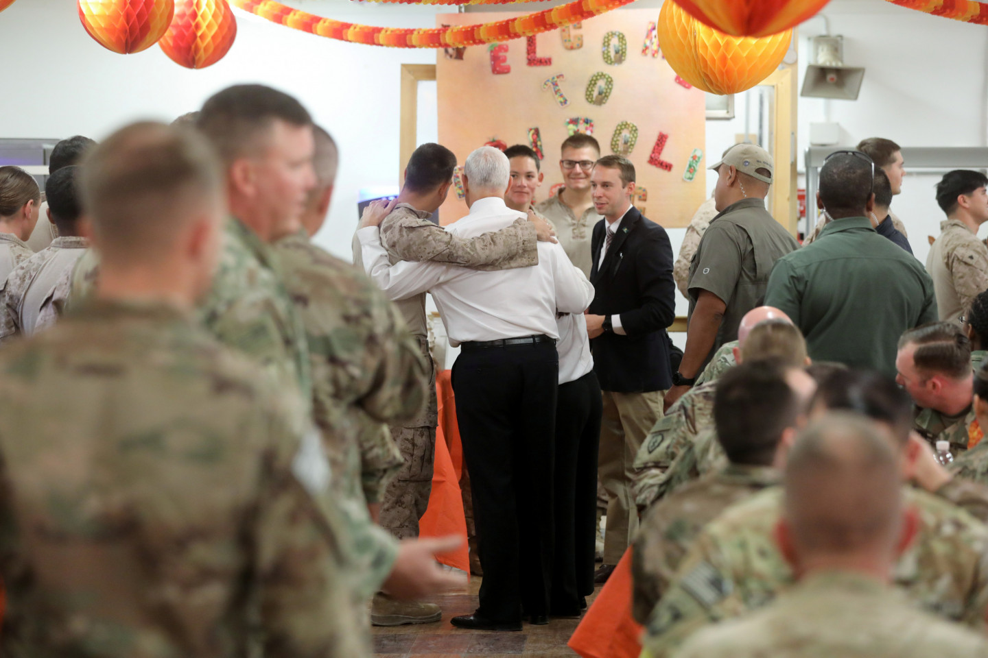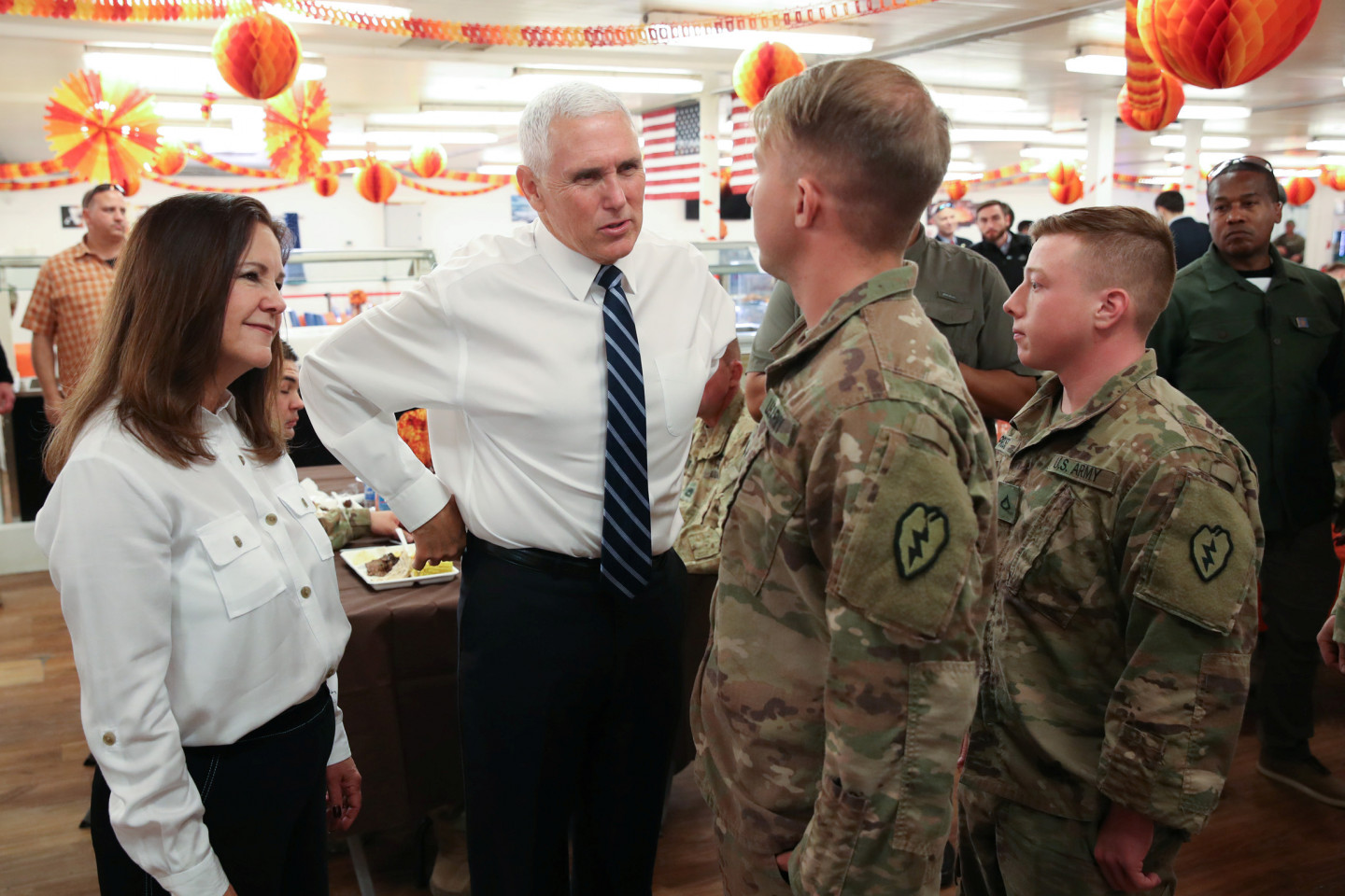 ASV viceprezidents Maiks Penss pasniedz Pateicības dienas maltīti karavīriem Irākā