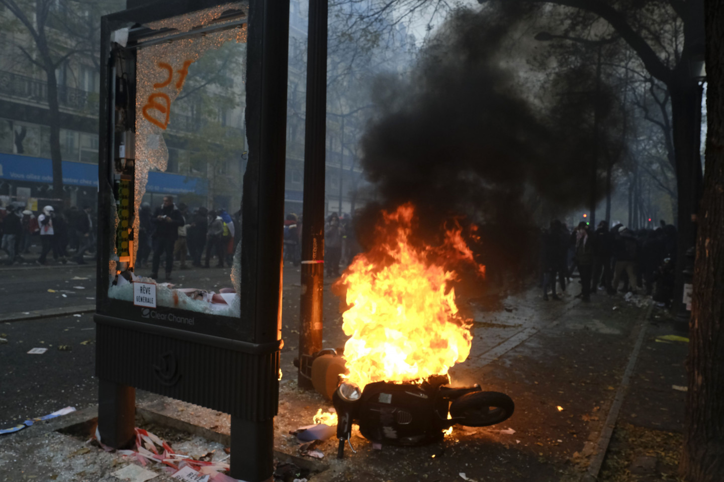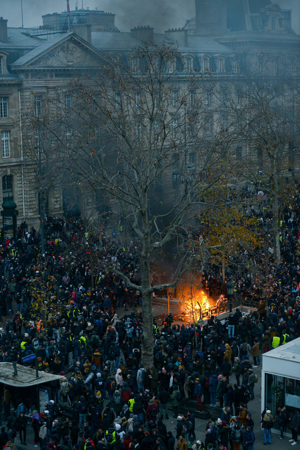 Francijā piektdien otro dienu pēc kārtas norisinās strādājošo streiks, arodbiedrībām turpinot plašus protestus pret prezidenta Emanuela Makrona iecerēto pensiju sistēmas reformu, un visā valstī ir paralizēta satiksme. Valsts dienesti vēsta, ka uz galvenajiem ceļiem Parīzes reģionā izveidojušies satiksmes sastrēgumi vairāk nekā 375 kilometru garumā. Francijas valsts dzelzceļa uzņēmums SNCF informējis , ka no desmit tālsatiksmes vilcieniem kursē tikai viens, bet Parīzes metro satiksme notiek tikai tajās divās līnijās, kurās kursē automātiskās vadības vilcieni bez vadītāja. Tāpat atcelti simtiem avioreisu, un satiksmes sarežģījumi gaidāmi arī nedēļas nogalē. Nedarbojas arī skolas, bet slimnīcas strādā ar ierobežotu darbinieku skaitu. Otro dienu apmeklētājiem slēgta Versaļas pils, bet Luvras muzejs brīdinājis apmeklētājus par iespējamiem kavējumiem un atsevišķām slēgtām galerijām. Eifeļa tornis piektdien atsācis darbību, taču tūristiem ir problēmas nokļūt līdz tornim satiksmes traucējumu dēļ.