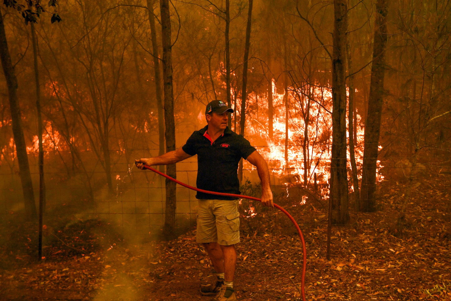 Vairāki savvaļas ugunsgrēki uz ziemeļiem no Sidnejas apvienojušies milzīgā ugunsgrēkā, apdraudot Sidnejas piepilsētas. Austrālijas Jaundienvidvelsas lauku ugunsdzēsības dienests (RFS) šodien ziņoja, ka ugunsgrēks izpleties 60 kilometru garumā un liesmas plosās vairākos nacionālajos parkos. RFS pārstāvis žurnālistiem sacīja, ka, visticamāk, kopā saplūduši vairāk nekā astoņi ugunsgrēki. Vēlāk RFS tviterī paziņoja, ka šajos ugunsgrēkos kopumā izdegusi aptuveni 335 000 hektāru liela platība. Meteoroloģijas birojs norādīja, ka milzīgie ugunsgrēki dažreiz vienkārši ir pārāk lieli, lai tos būtu iespējams uzreiz apdzēst. Austrālijā pašlaik deg vairāk nekā 100 ugunsgrēki, cīņā ar kuriem iesaistīti vairāk nekā 2800 ugunsdzēsēji. Sidneju ieskāvis biezs dūmu mākonis, un šodien tika slēgts desmitiem skolu un atcelti vairāki sporta pasākumi. Varasiestādes norādīja, ka gadījumā, ja gaisa kvalitāte neuzlabosies, varētu tikt slēgtas arī pludmales.
