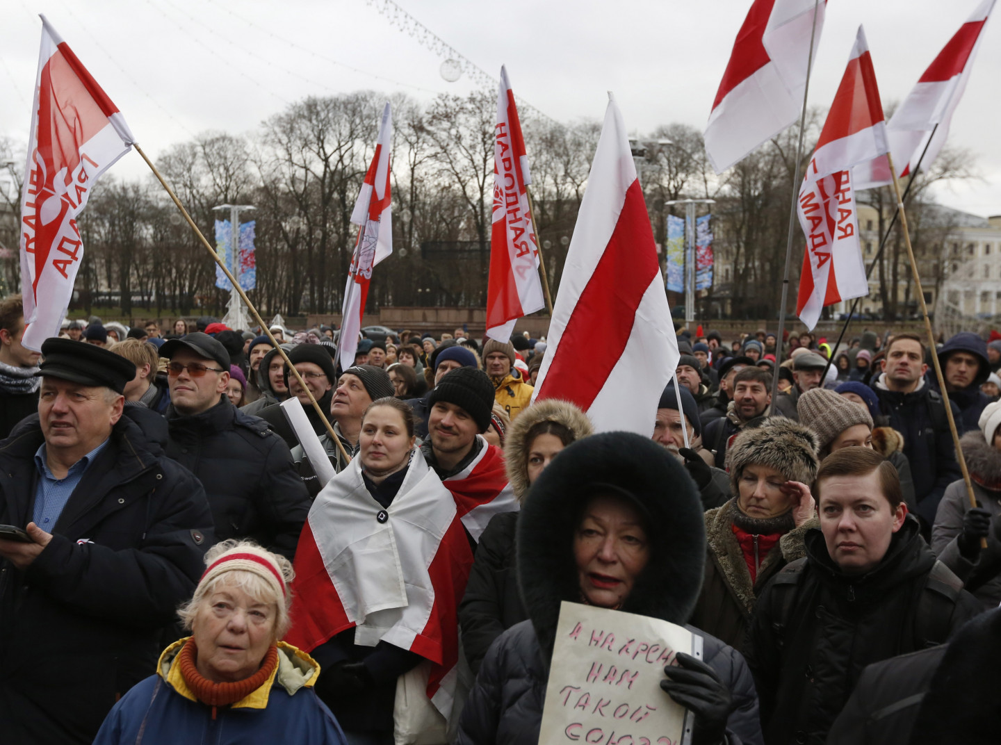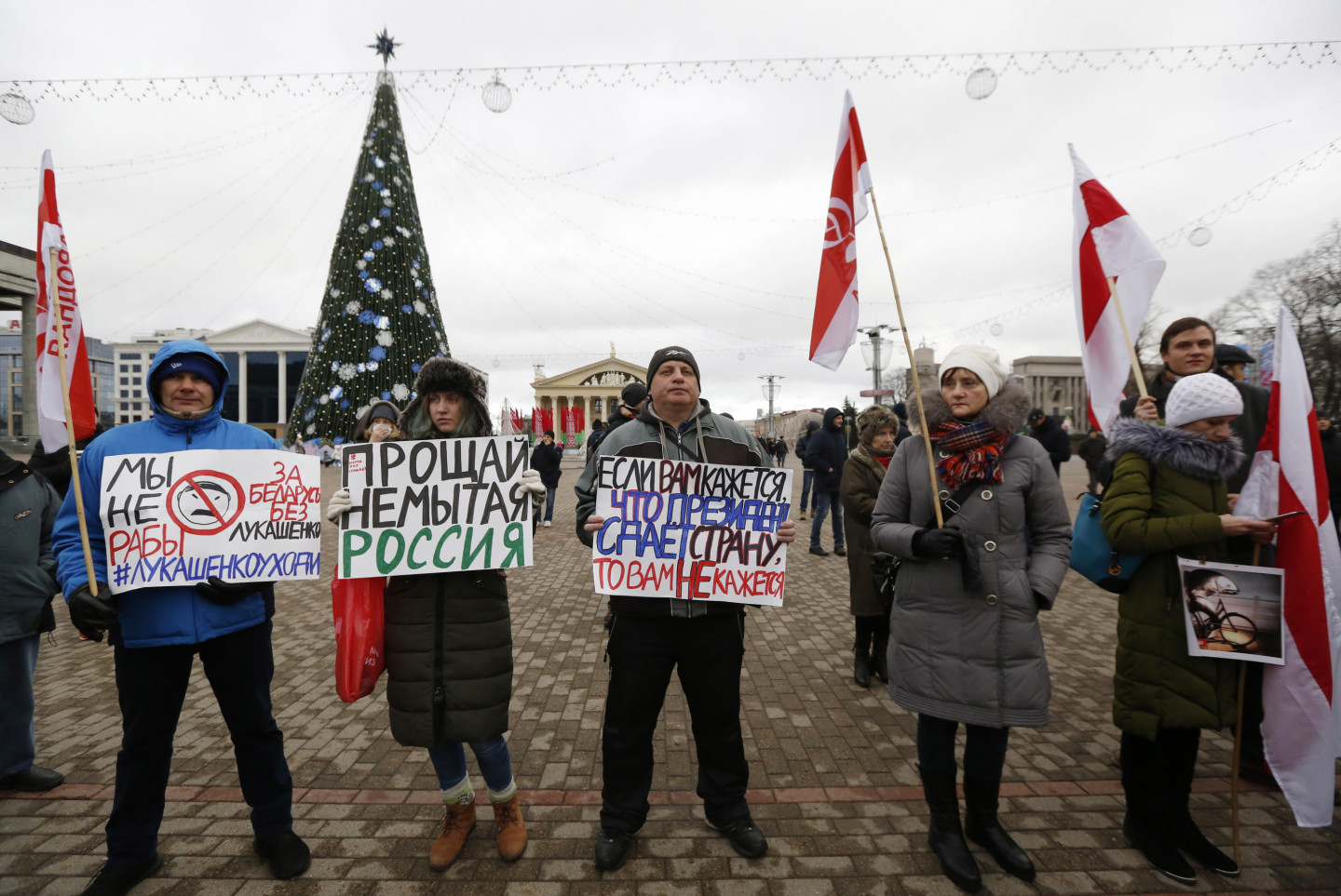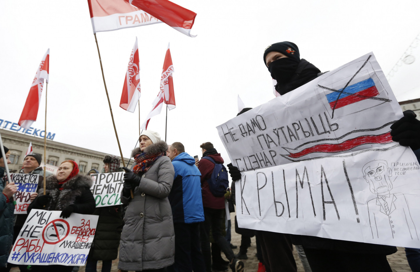 Minskā vairāki simti cilvēku svētdien otro dienu pēc kārtas protestēja pret ciešākām valsts attiecībām ar Krieviju, informē ziņu aģentūra LETA. Svētdienas protesta akcijā pulcējās ap 500 cilvēku.