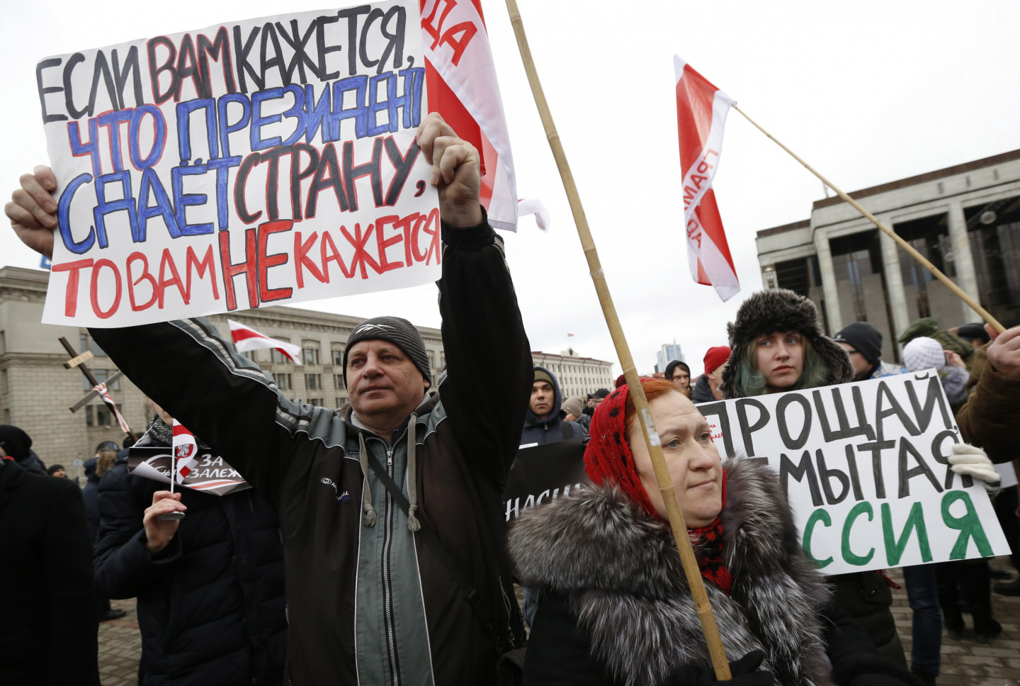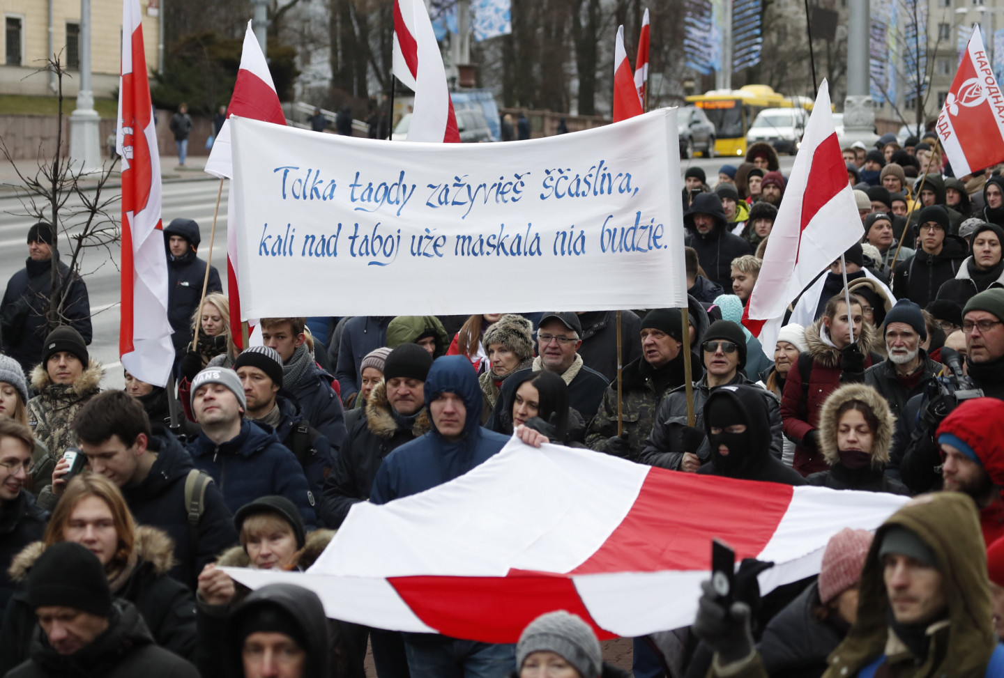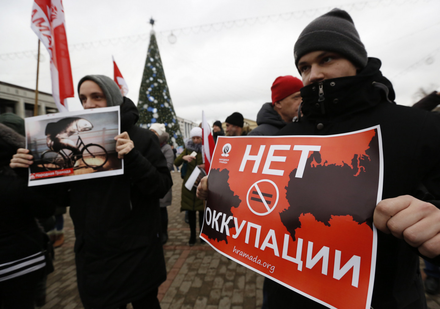 Minskā vairāki simti cilvēku svētdien otro dienu pēc kārtas protestēja pret ciešākām valsts attiecībām ar Krieviju, informē ziņu aģentūra LETA. Svētdienas protesta akcijā pulcējās ap 500 cilvēku.