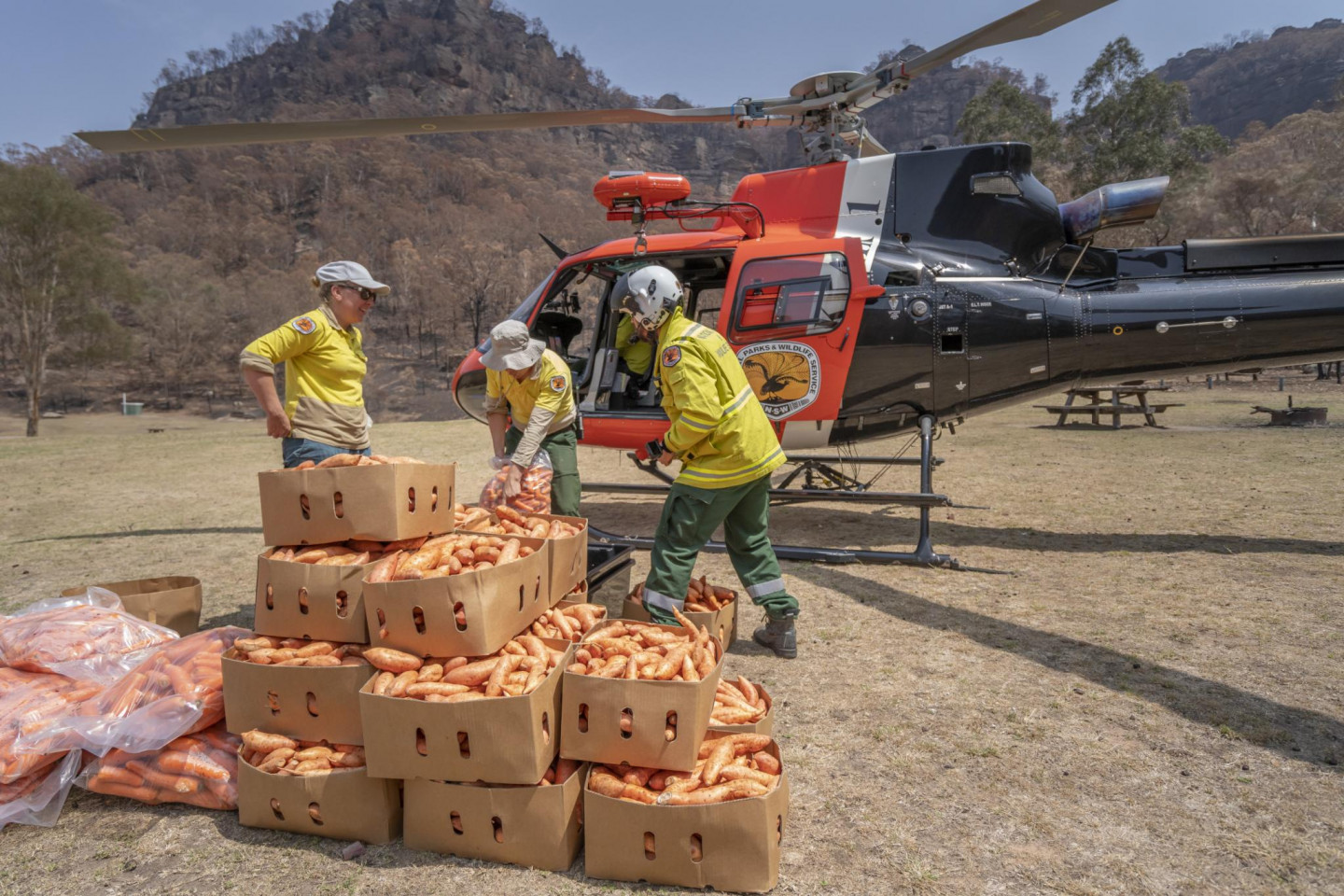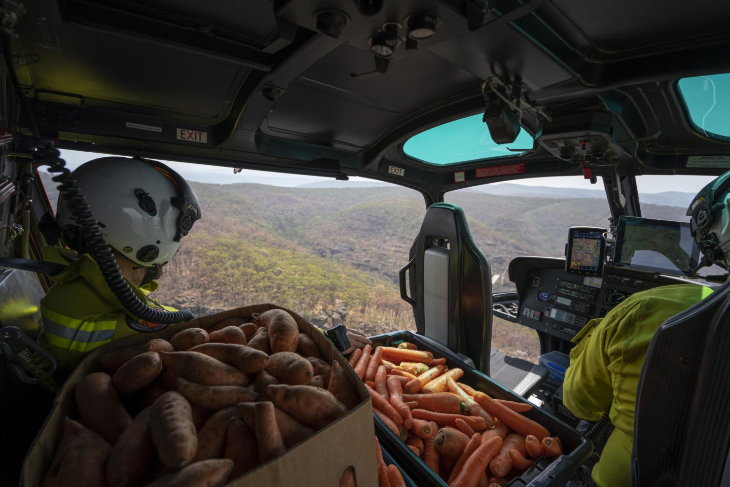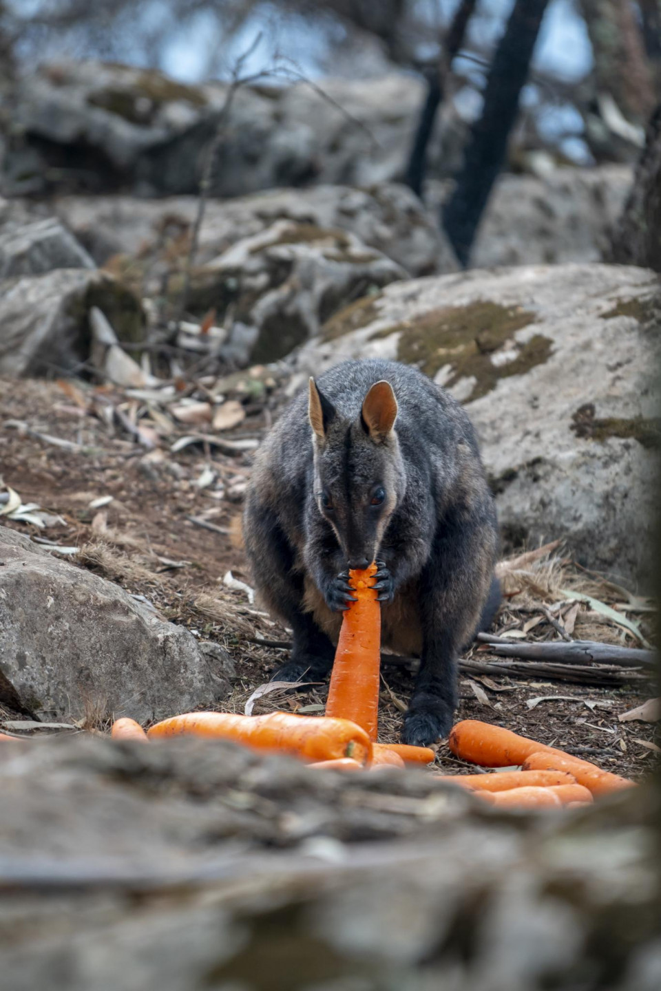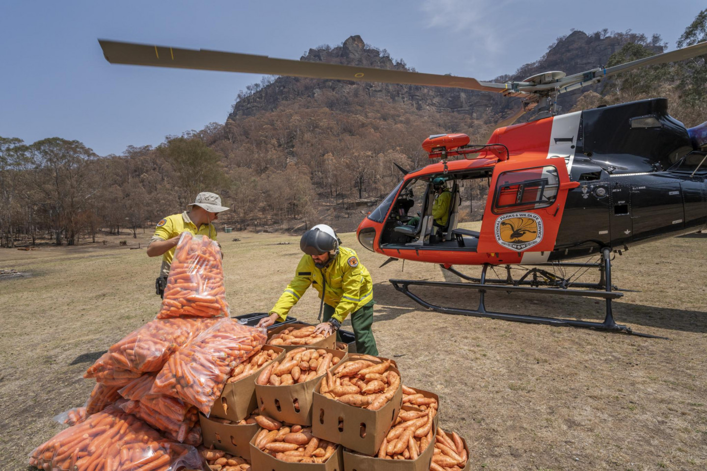 Savvaļas ugunsgrēku skartajiem zvēriem Austrālijā nogādā dārzeņus
