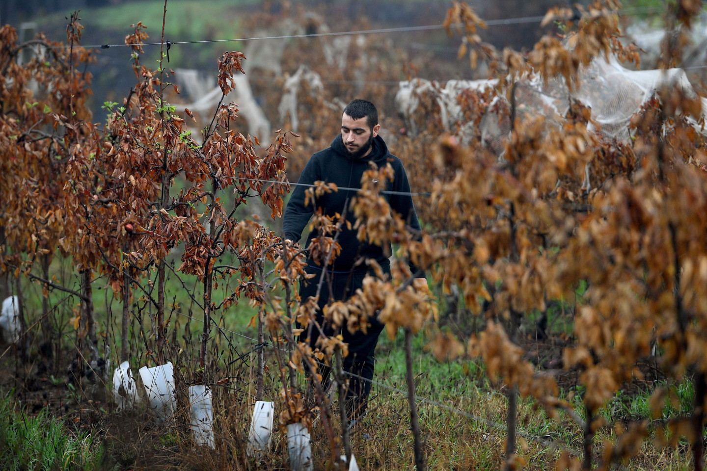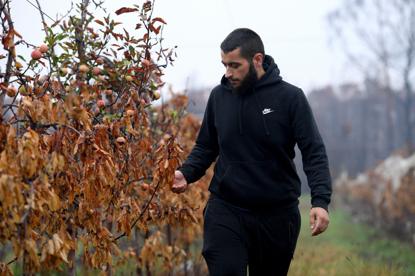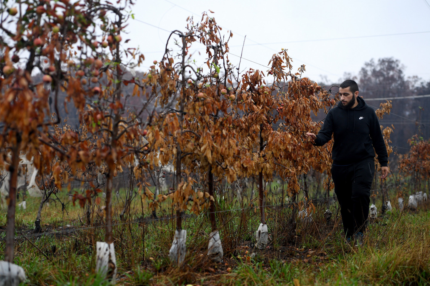Dārzkopis Austrālijā aplūko, kā ugunsgrēkā cietusi saimniecība