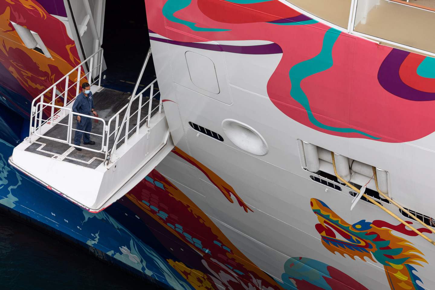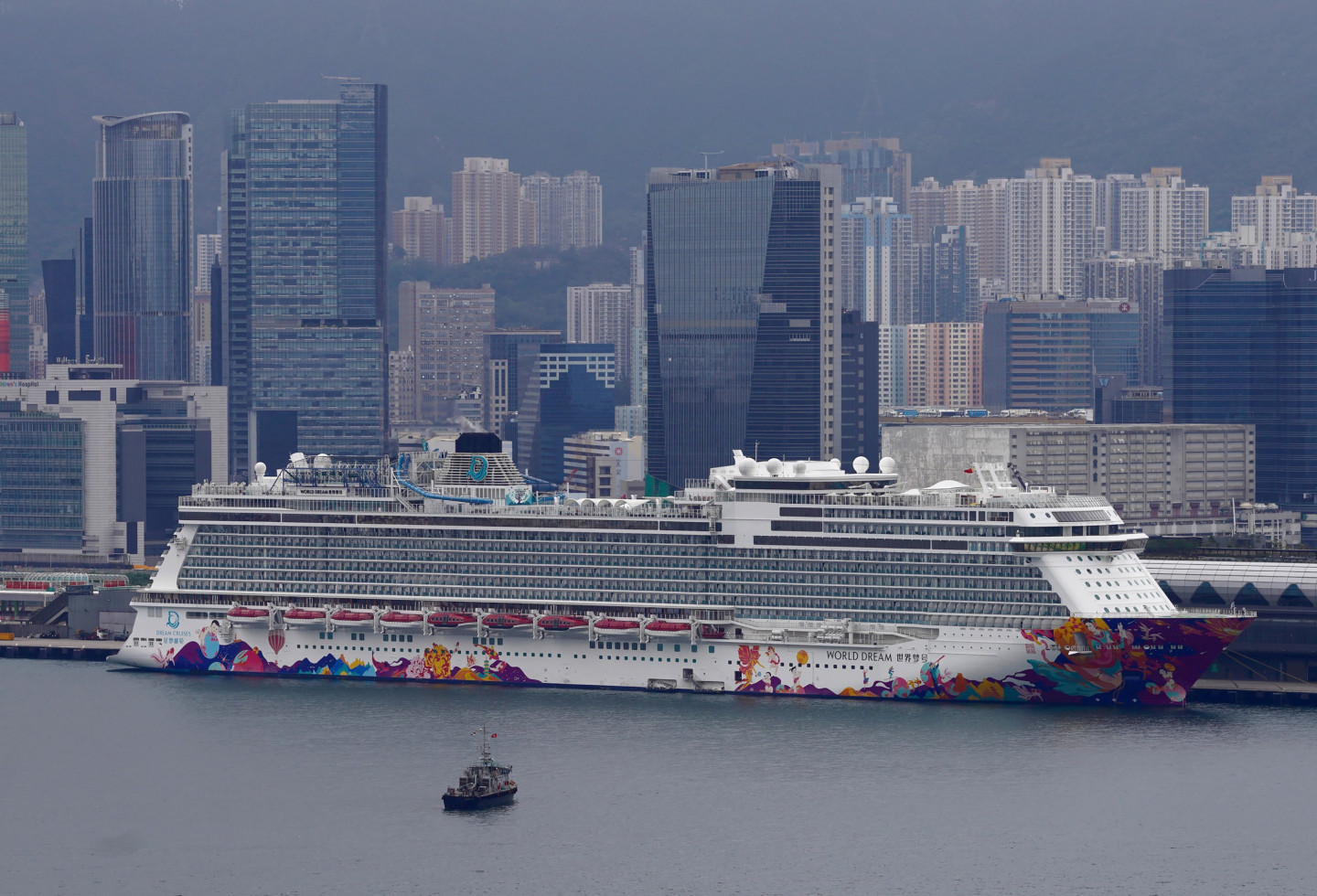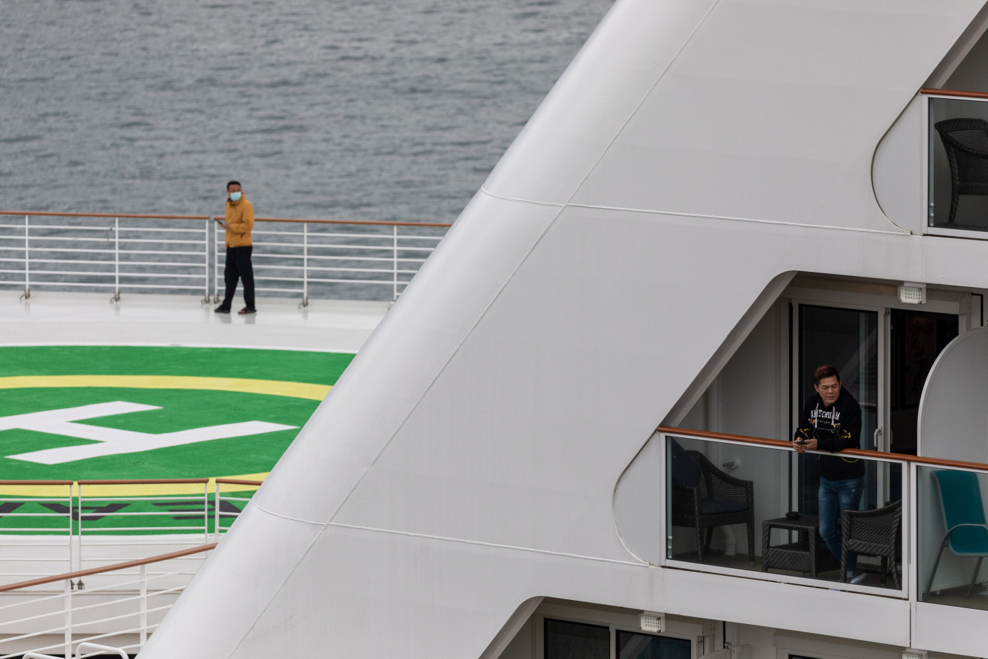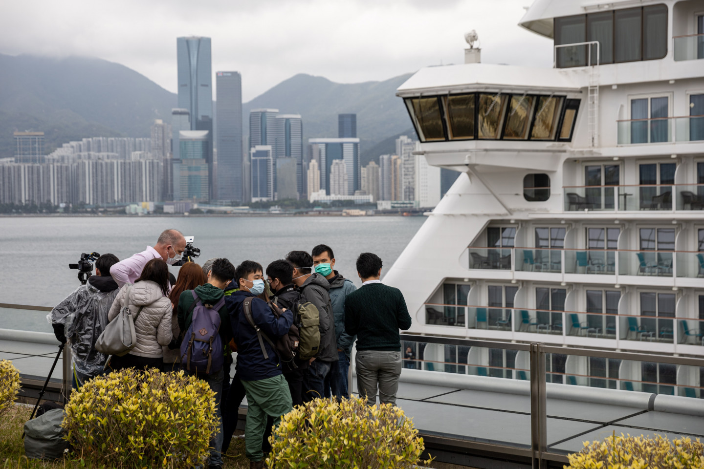 Koronavīrusa draudu dēļ pasažieriem uz kruīza kuģa Honkongas ostā neļauj pamest kruīza kuģi.