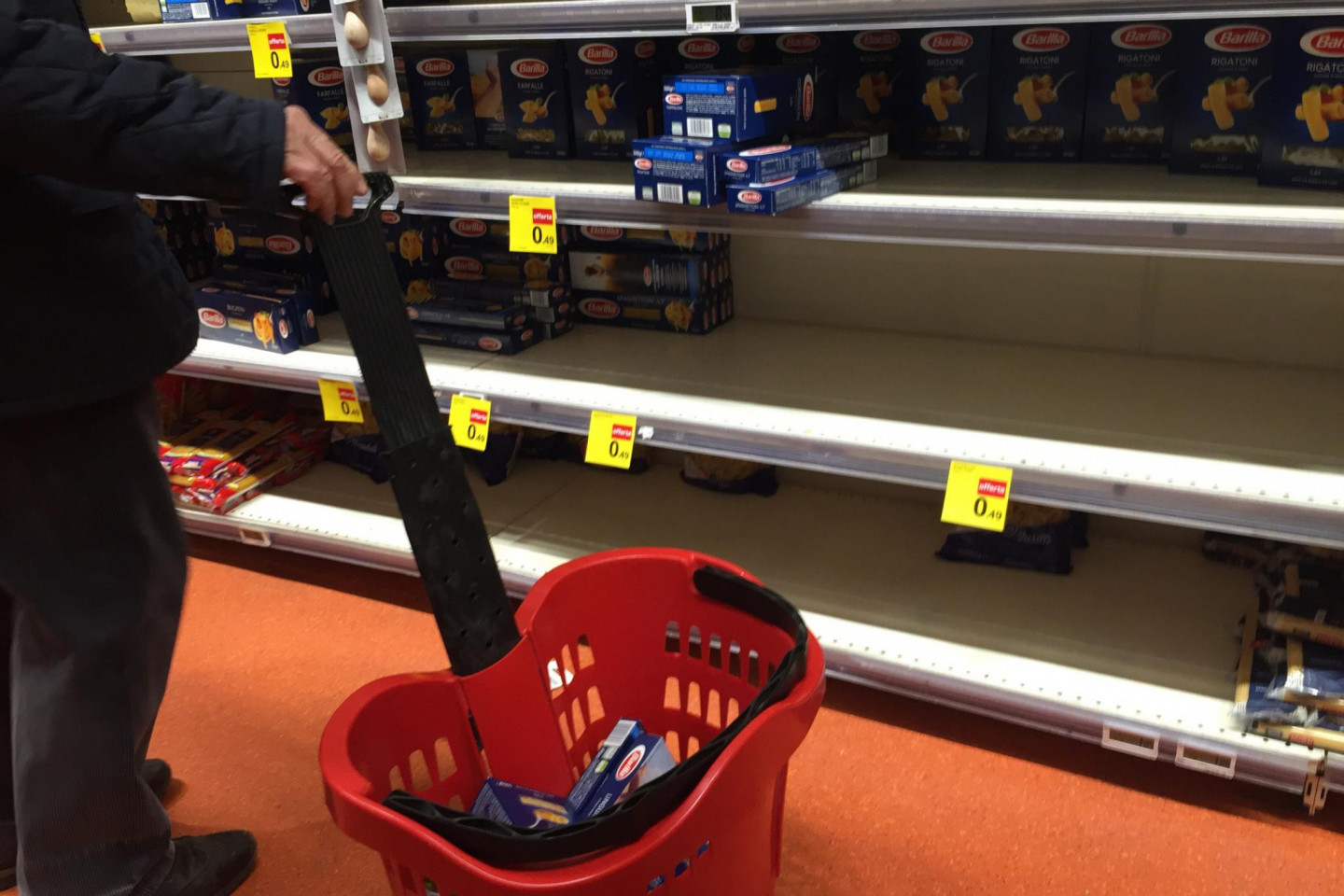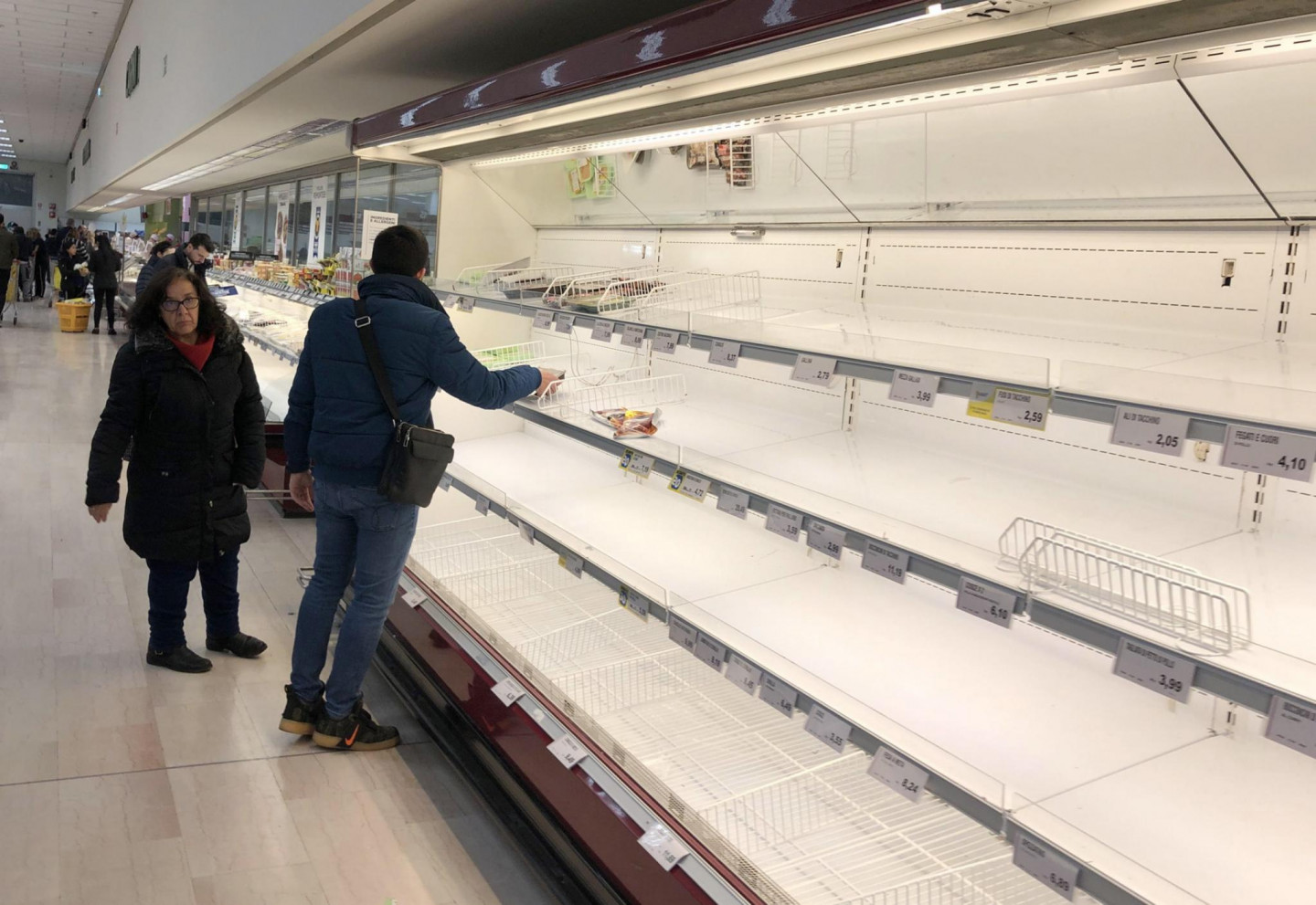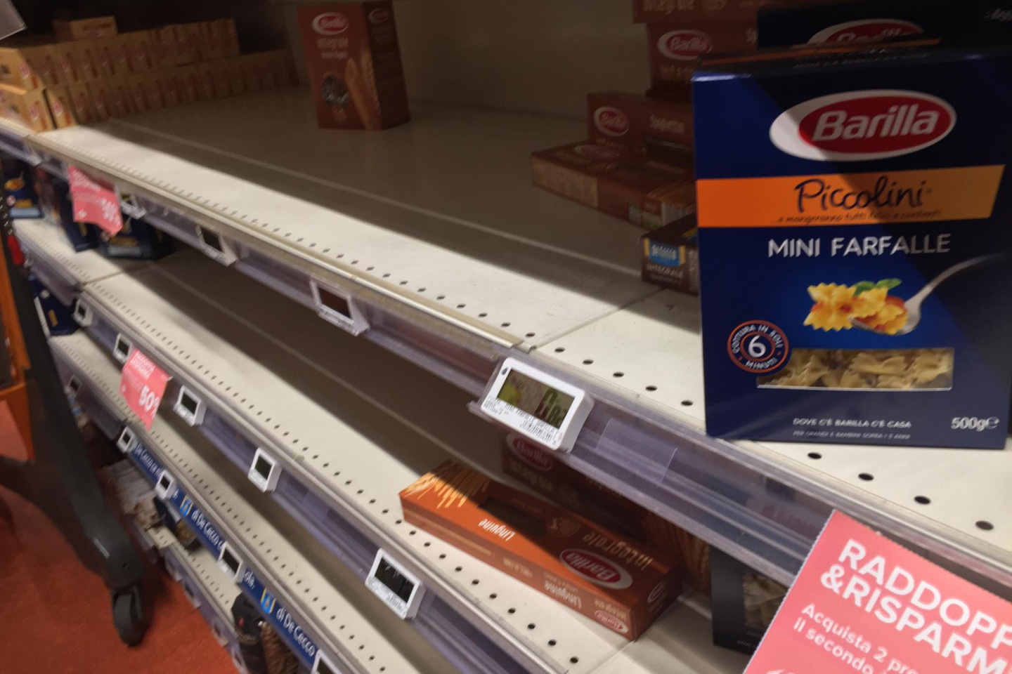 Tik tukši ir veikalu plaukti koronavīrusa skartajās pilsētās Itālijā