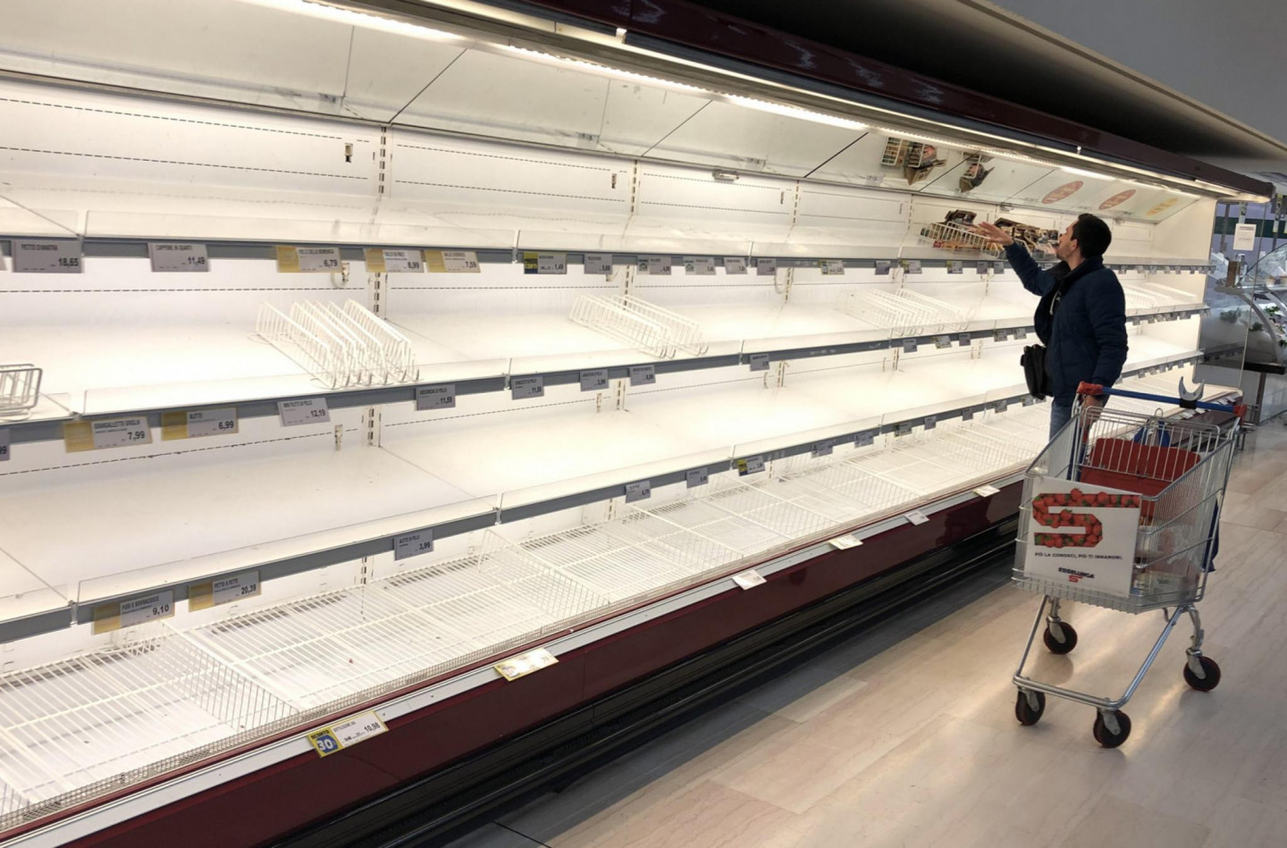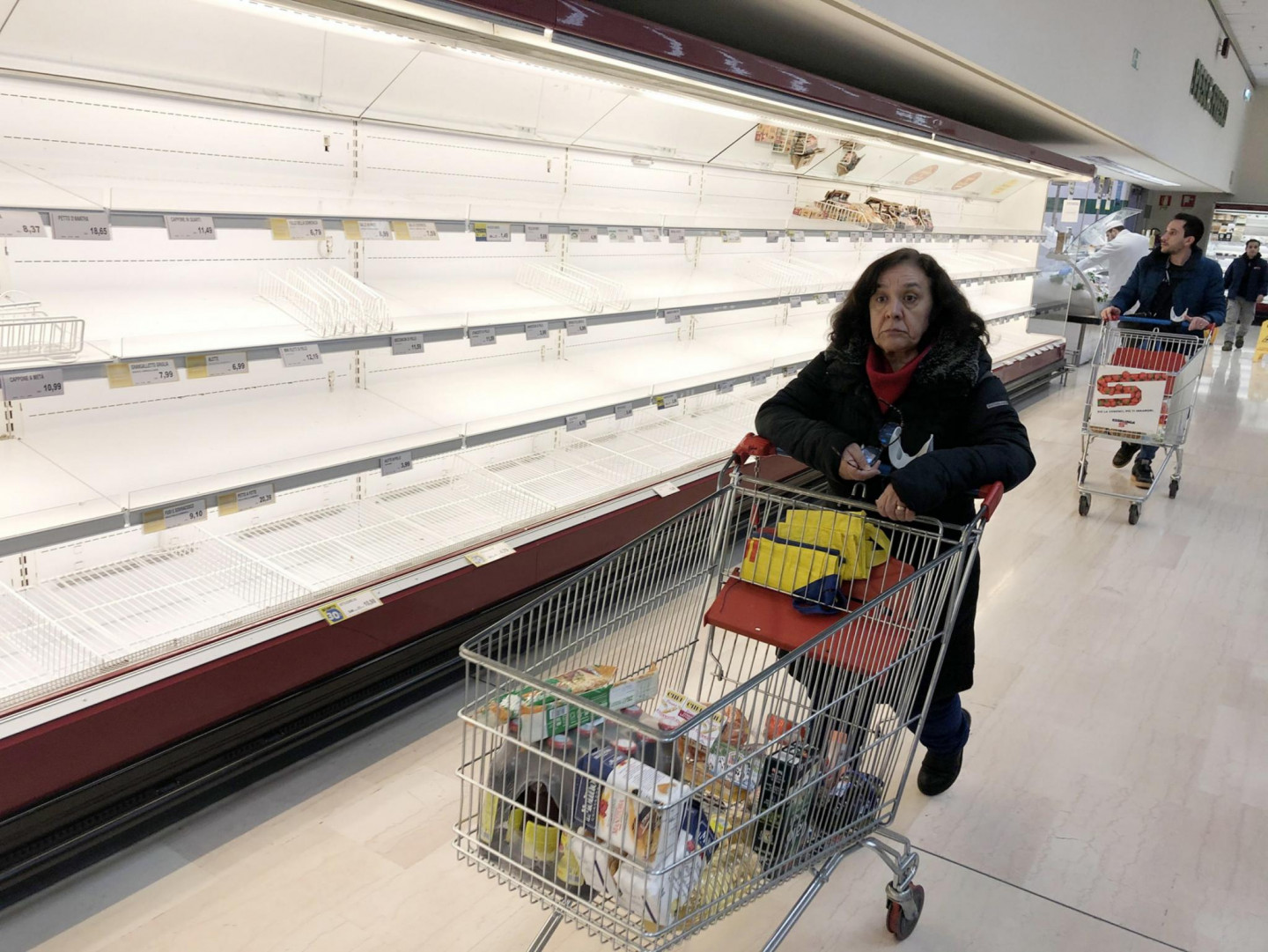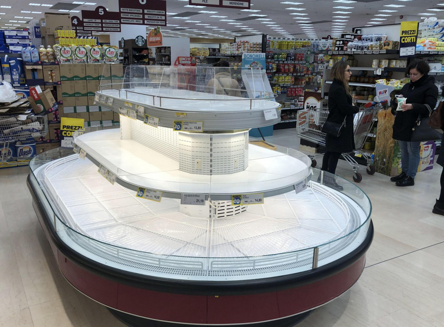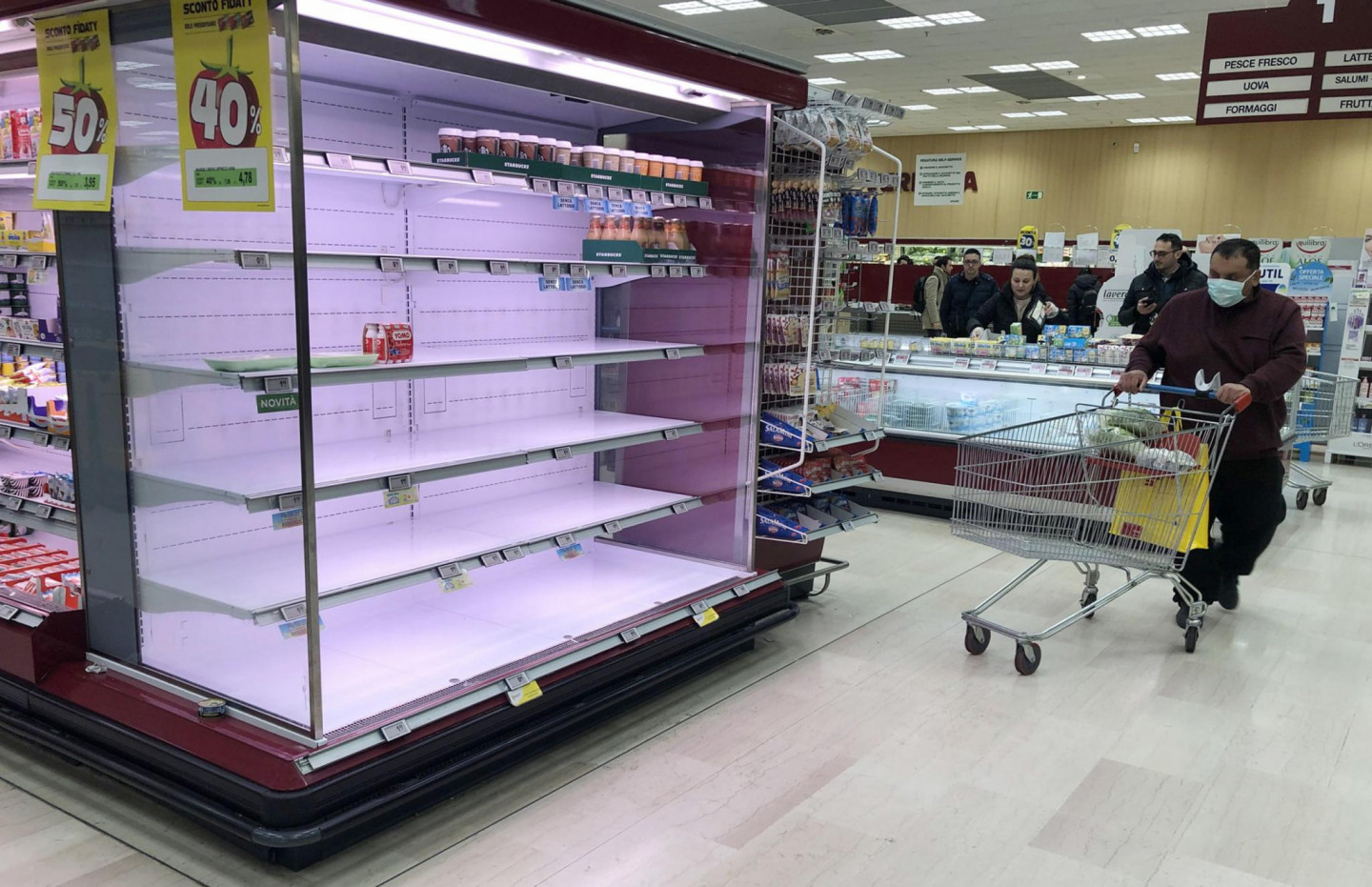 Tik tukši ir veikalu plaukti koronavīrusa skartajās pilsētās Itālijā