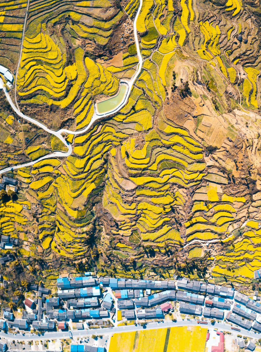 Tik neparasti pavasarī izskatās ziedu lauki Ķīnā