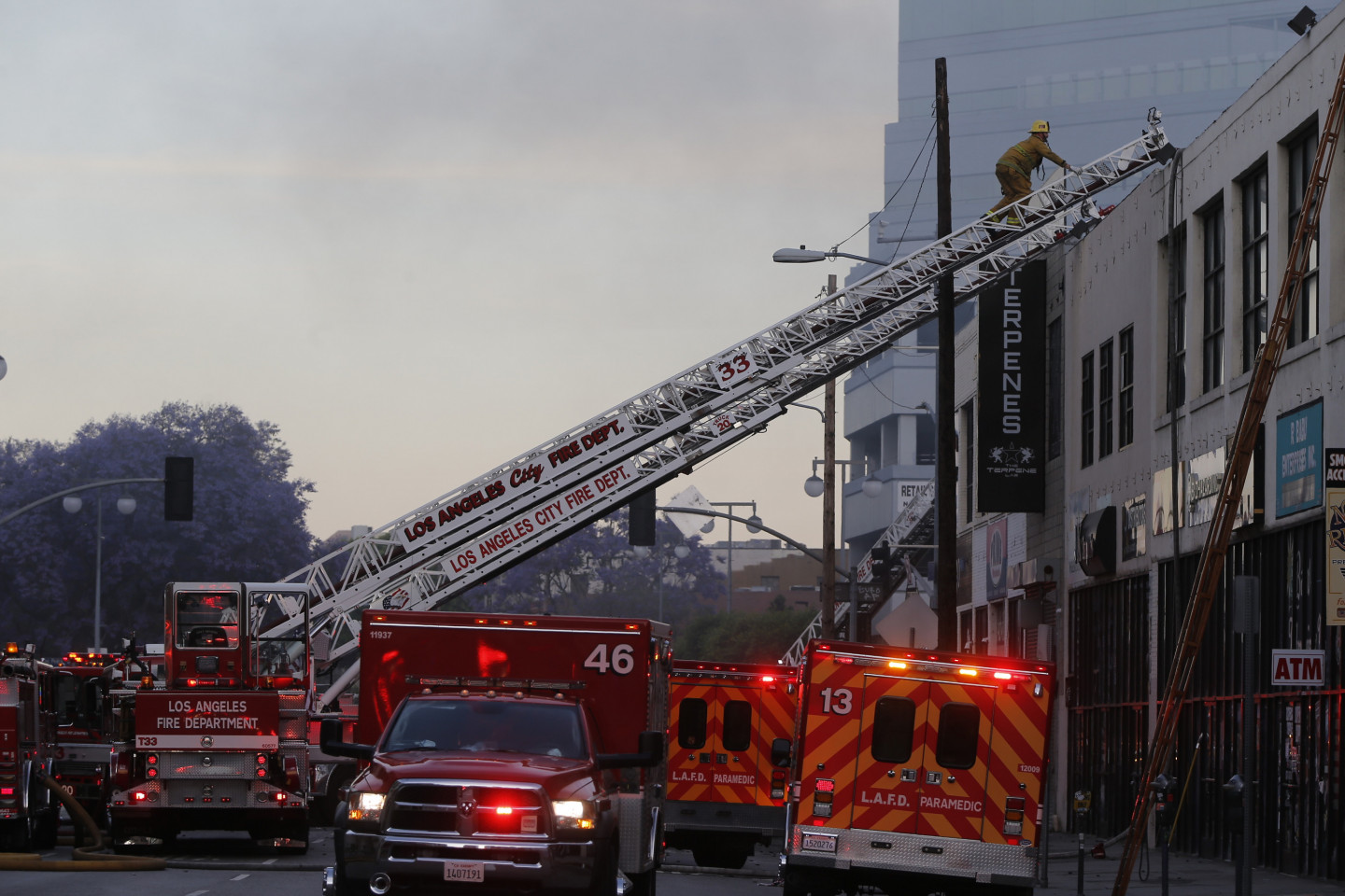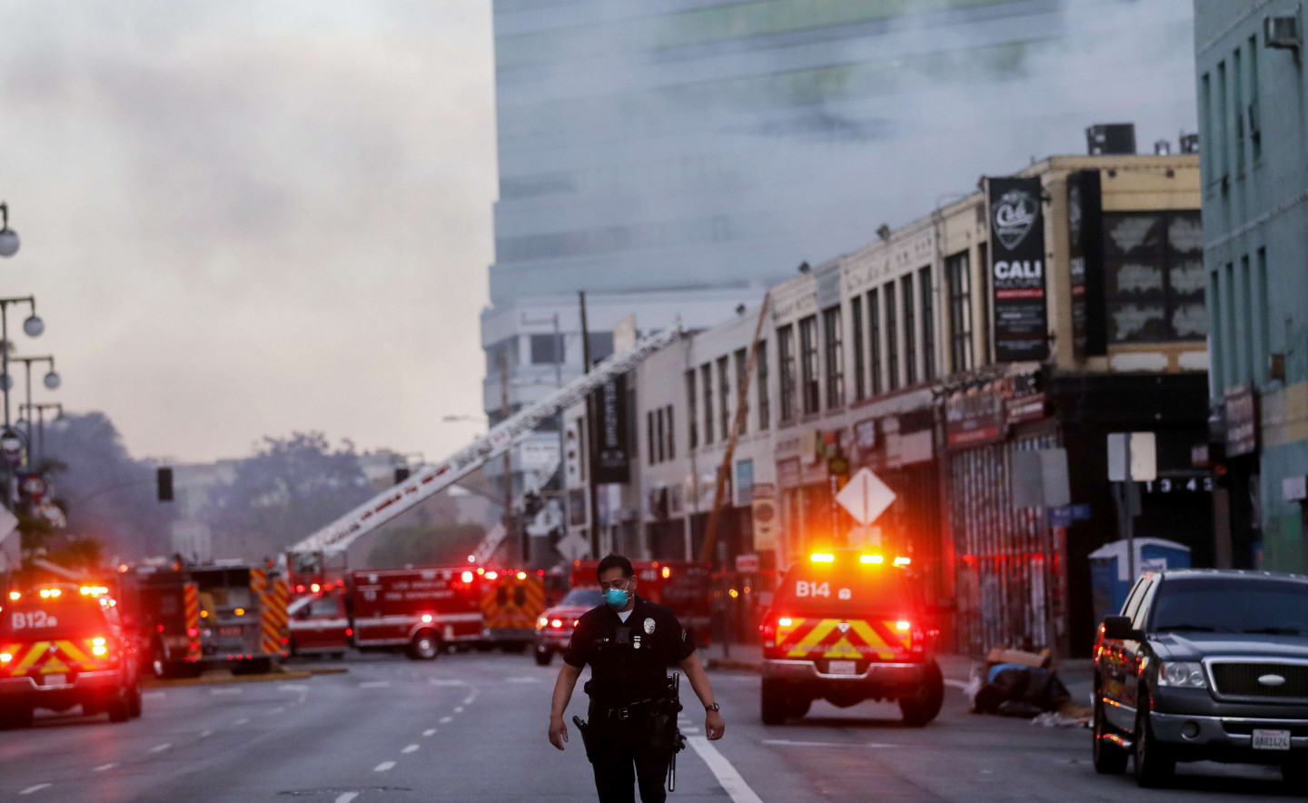 Ugunsgrēkā un tā izraisītā sprādzienā Losandželosas centrā sestdienas vakarā ievainoti 11 ugunsdzēsēji, tostarp trīs atrodas kritiskā stāvoklī, paziņojušas amatpersonas. Ugunsgrēks izcēlās ēkā, kurā atradās uzņēmums "Smoke Totes Wholesale Distribution", kas nodarbojās ar elektronisko cigarešu piederumu tirdzniecību un piegādi citiem uzņēmumiem. Uzņēmuma telpās atradās viegli uzliesmojošas vielas. Ugunsdzēsēji sākotnēji uzskatīja, ka viņiem darīšana ar nelielu ugunsgrēku, taču, sākot dzēšanu, secināja, ka situācija ir daudz nopietnāka. Sprādziens notika, kad ugunsdzēsēji evakuējās no jumta un pirmā stāva. Raidorganizācija BBC vēstīja, ka no ēkas izšāvusies uguns lode, kas aizdedzinājusi ugunsdzēsēju automašīnu ielas pretējā pusē. Vairākiem ugunsdzēsējiem nācās glābties, skrienot cauri deviņus metrus augstai un platai uguns sienai, ziņoja BBC. 11 ugunsdzēsēji guvuši dažādus apdegumus - no viegliem līdz smagiem. Trīs cietušo stāvoklis ir kritisks, bet tiek uzskatīts, ka viņi izdzīvos. Losandželosas Ugunsdzēsības departamenta vadītājs atklāja, ka ugunsdzēsēji redzējuši ēkā un laukā uz ielas butāna cisternas, bet pagaidām vēl nav skaidrs, kas tieši izraisīja ugunsgrēku. Liesmas izplatījās arī uz blakus ēkām un cīņa ar ugunsgrēku tika kopumā iesaistīti aptuveni 230 ugunsdzēsēji.