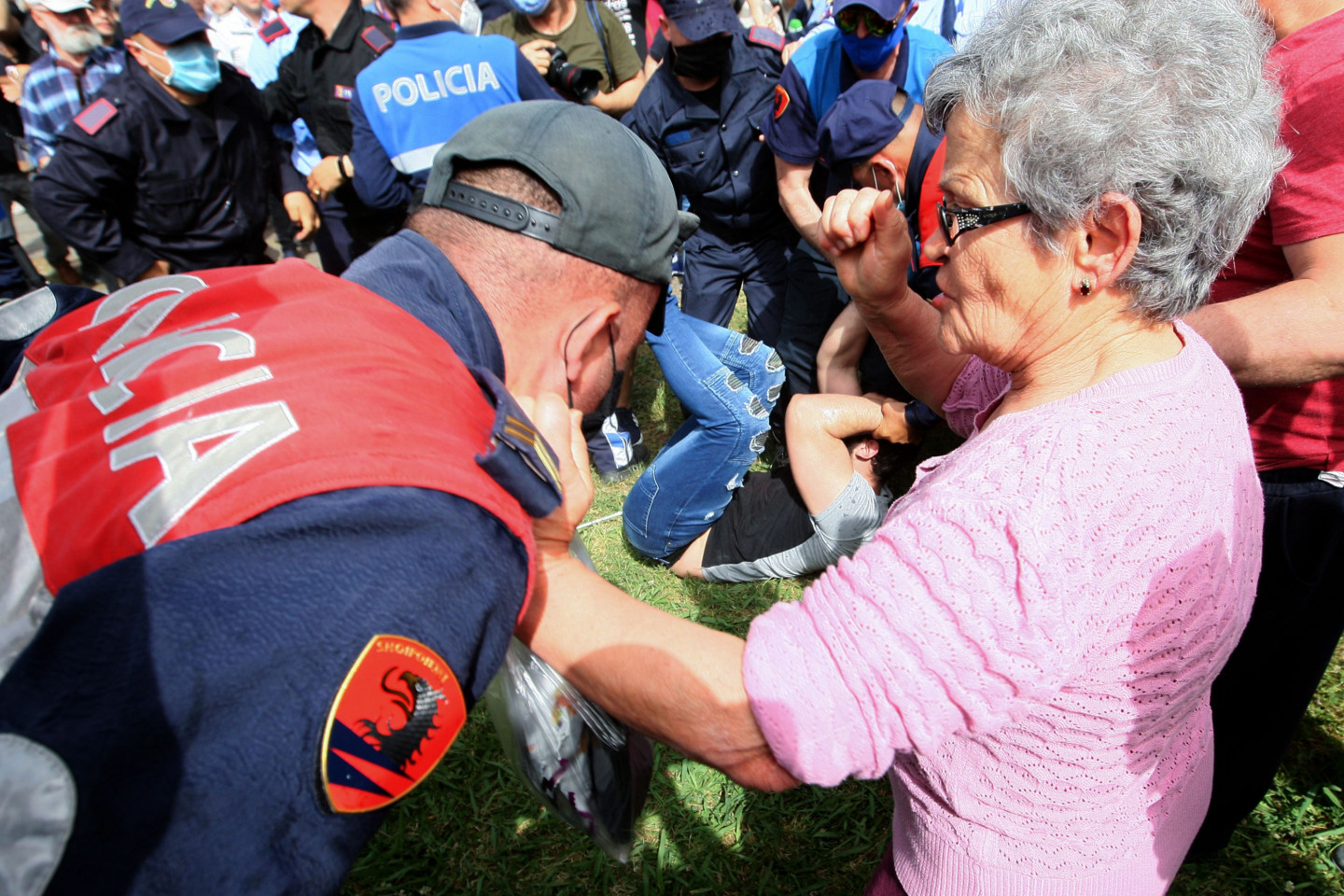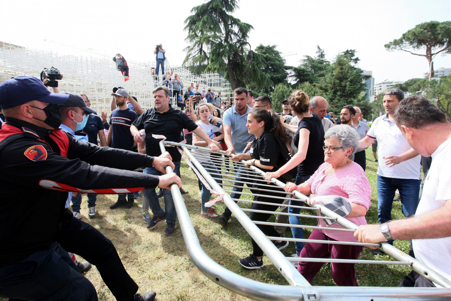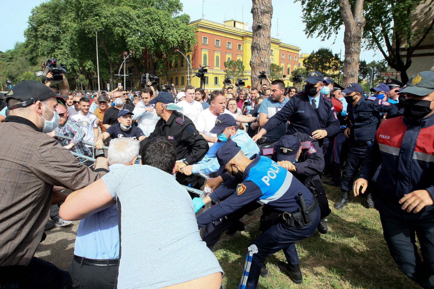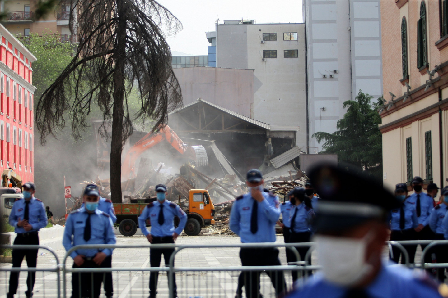 Albānijas galvaspilsētā Tirānā opozīcijas atbalstītāju protesti pret Nacionālā teātra ēkas nojaukšanu svētdienas rītā pārauguši sadursmēs ar policiju. Protestos piedalījās simtiem cilvēku. Policija ar spēku aizveda vairākus māksliniekus un opozīcijas līderus prom no ēkas, kuras nojaukšana pēc tam sākās, izmantojot smago tehniku. Mākslinieki un citi aktīvisti iebilda pret valdības lēmumu nojaukt ēku, kas tika uzcelta itāļu okupācijas laikā Otrajā pasaules karā. Mākslinieki vēlējās, lai Nacionālā teātra ēka tiek atjaunota. Kāds opozīcijas politiķis sacīja, ka policija aizturējusi aptuveni 30 cilvēkus, tostarp žurnālistus.