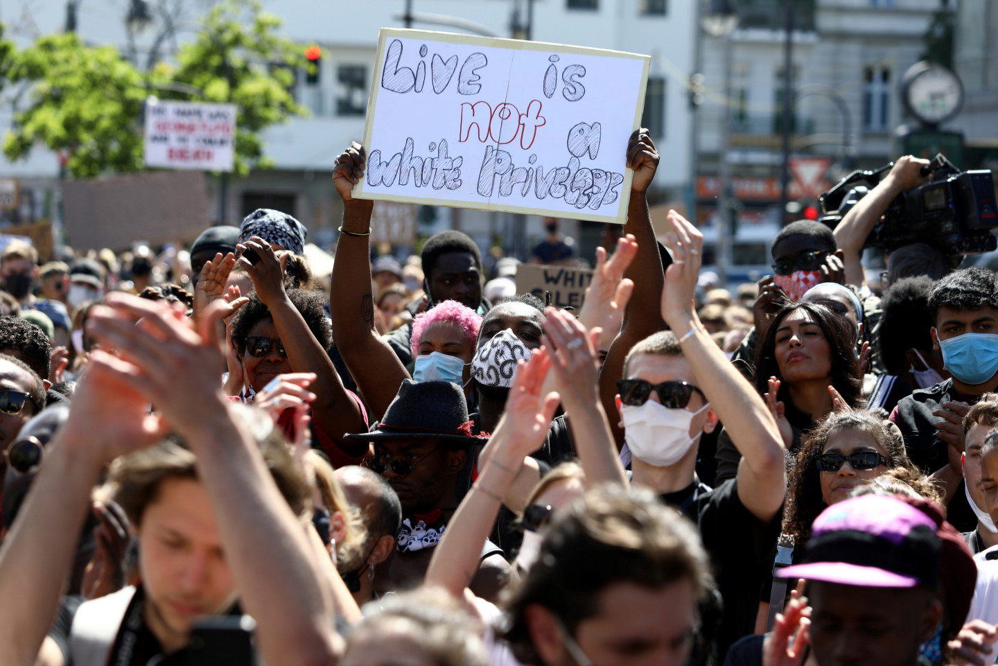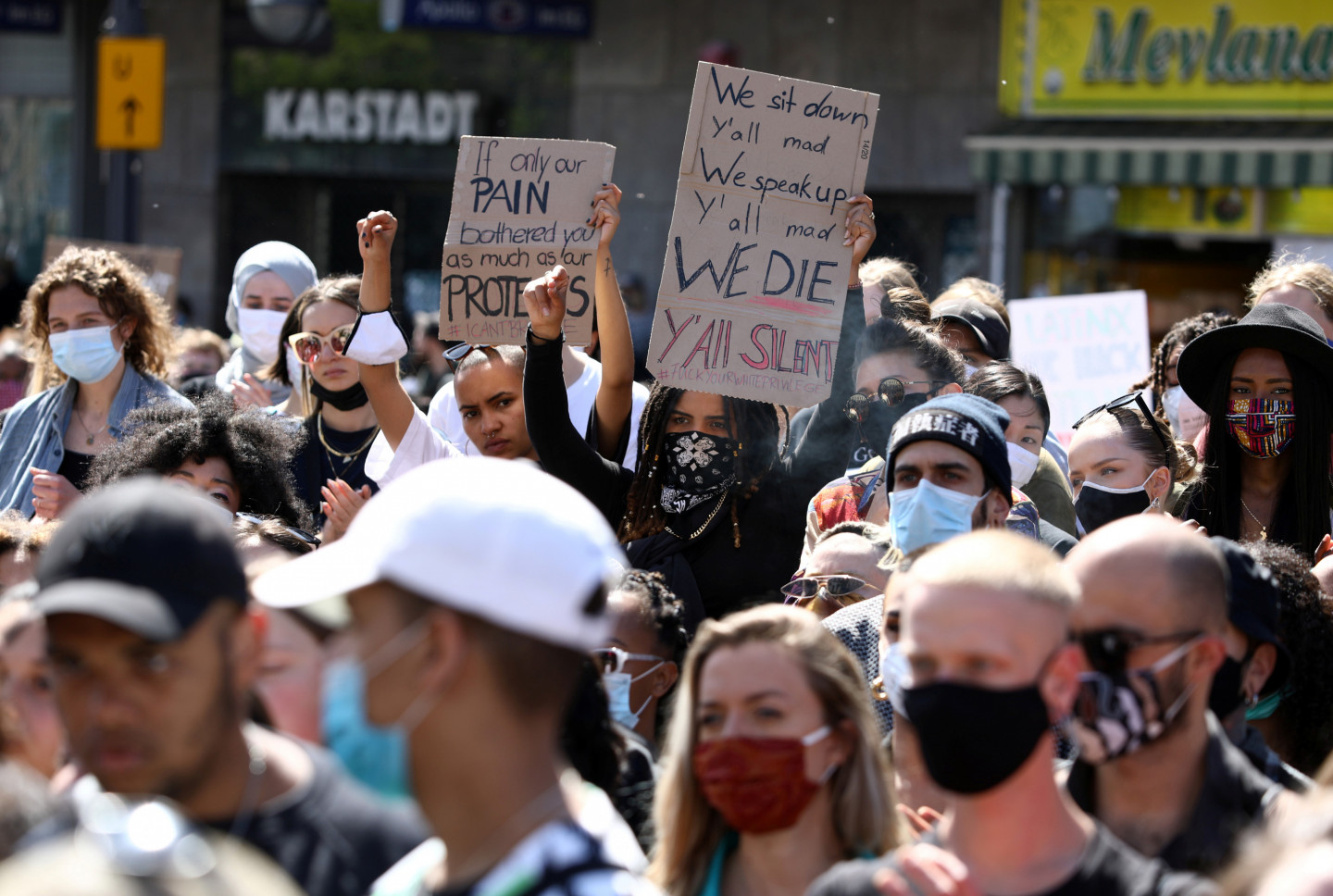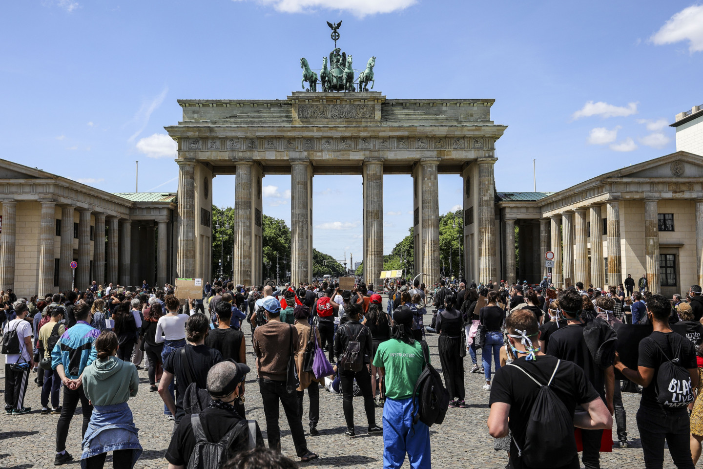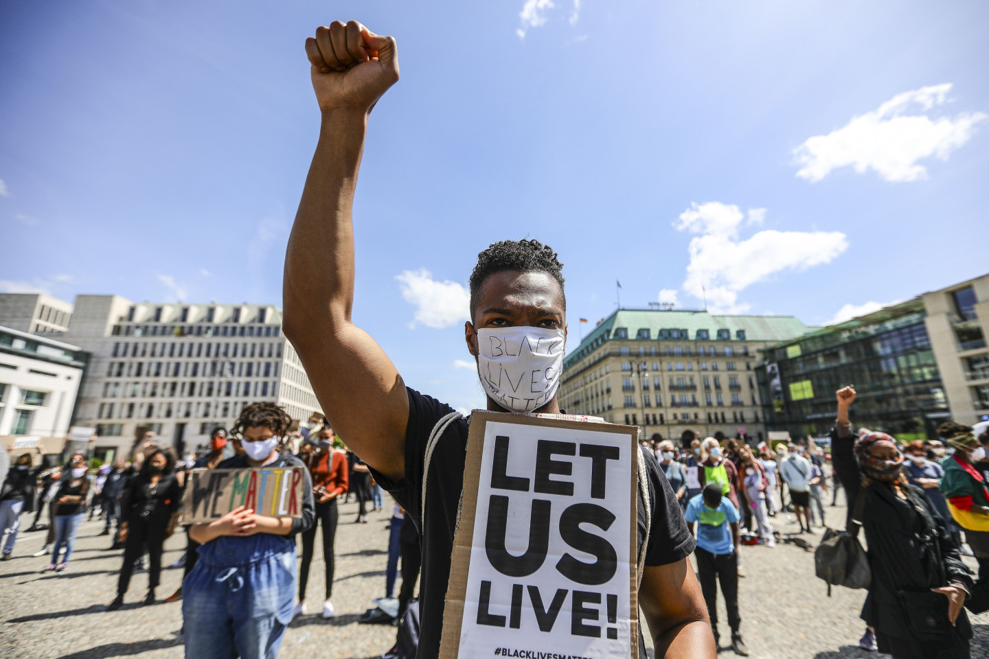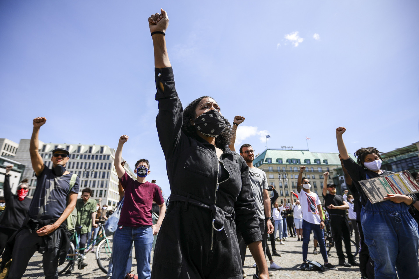 Solidarizējoties ar afroamerikāņiem, vairākās Vācijas pilsētās notikušas demonstrācijas pret policijas vardarbību Savienotajās Valstīs. Mītiņā Berlīnē šodien piedalījās aptuveni 1500 cilvēku. Aptuveni 350 cilvēku sestdien protestēja Minhenē. Policija šodien ziņoja, ka šī demonstrācija visumā noritējusi mierīgi. Protestos Berlīnē piedalījās arī ģimenes ar bērniem. Protestētāju plakāti vēstīja "Es nevaru paelpot, taisnīgumu Džordžam Floidam" un "Būt melnādainam nav noziegums". Iepriekš mītiņā pie Brandenburgas vārtiem piedalījās aptuveni 200 cilvēku, un aptuveni 2000 cilvēku protestēja pie ASV vēstniecības. Arī Vairāki Vācijas futbola Bundeslīgas spēlētāji izmantoja spēles nedēļas nogalē, lai izrādītu savu nostāju. Gelzenkirhenes vienības "Schalke 04" spēlētājs Vestons Makenijs bija aplicis ap roku apsēju ar uzrakstu "Taisnīgumu Džordžam Floidam", bet Dortmundes "Borussia" futbolisti Džeidons Sančo un Ahrafs Hakimi bija uzvilkuši vestes ar tādu pašu uzrakstu. Menhengladbahas "Borussia" spēlētājs Markuss Tirams notupās uz ceļa pēc vārtu gūšanas, atdarinot Kolina Kapernika protesta veidu 2016.gadā. Kā ziņots, ASV jau gandrīz nedēļu notiek protesti, ko izraisīja Džordža Floida nāve Mineapolisā un kas tagad pārauguši grautiņos un laupīšanās. 46 gadus vecais Floids pirmdien Mineapolē tika aizturēts, policijai izmeklējot apsūdzības par viltotas banknotes izmantošanu. Video redzams un dzirdams, kā roku dzelžos saslēgtais Floids ir nogāzts zemē un saka, ka nevar paelpot. Viens no policistiem tur celi uz Floida kakla. Notikuma vietā redzami arī citi policisti.