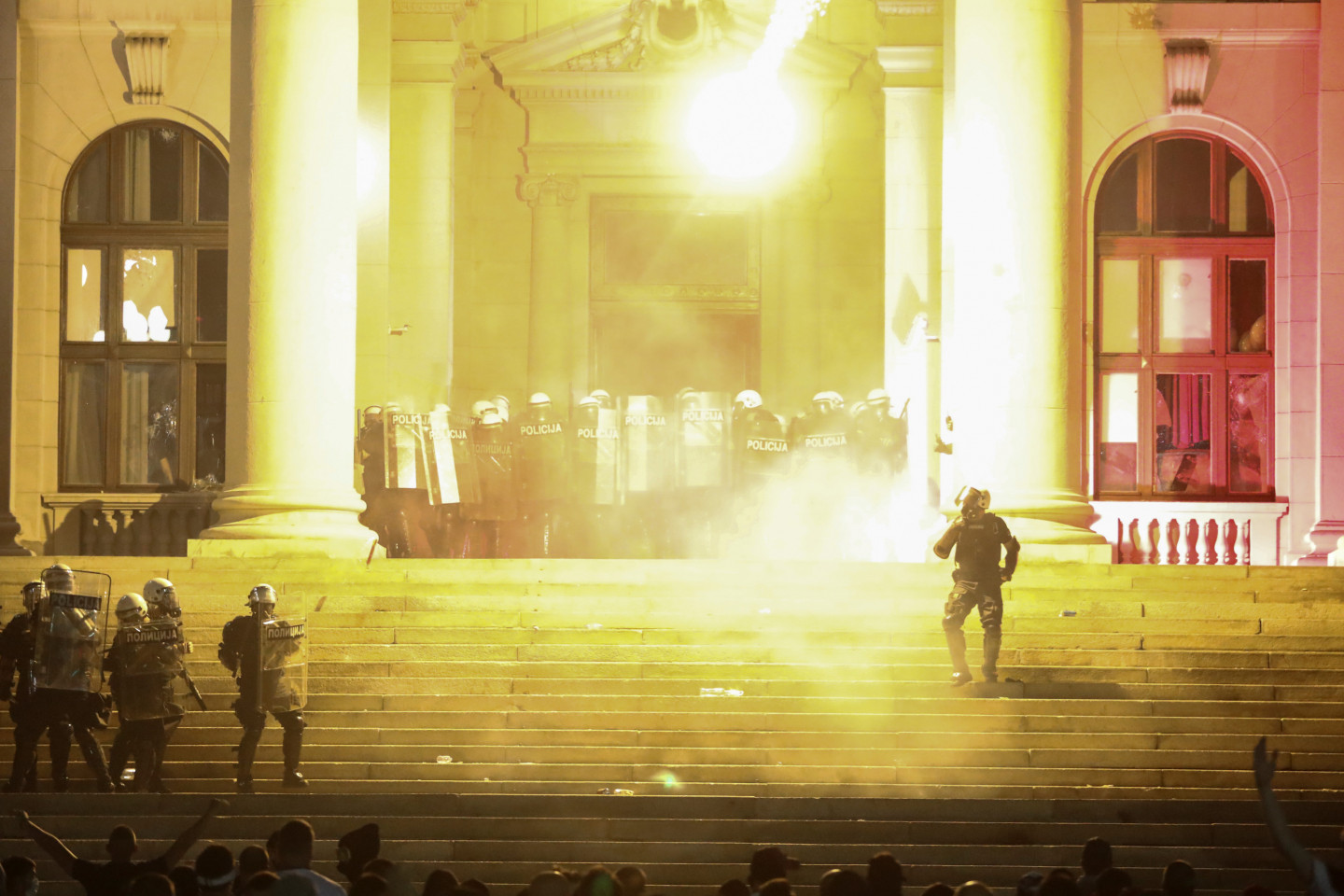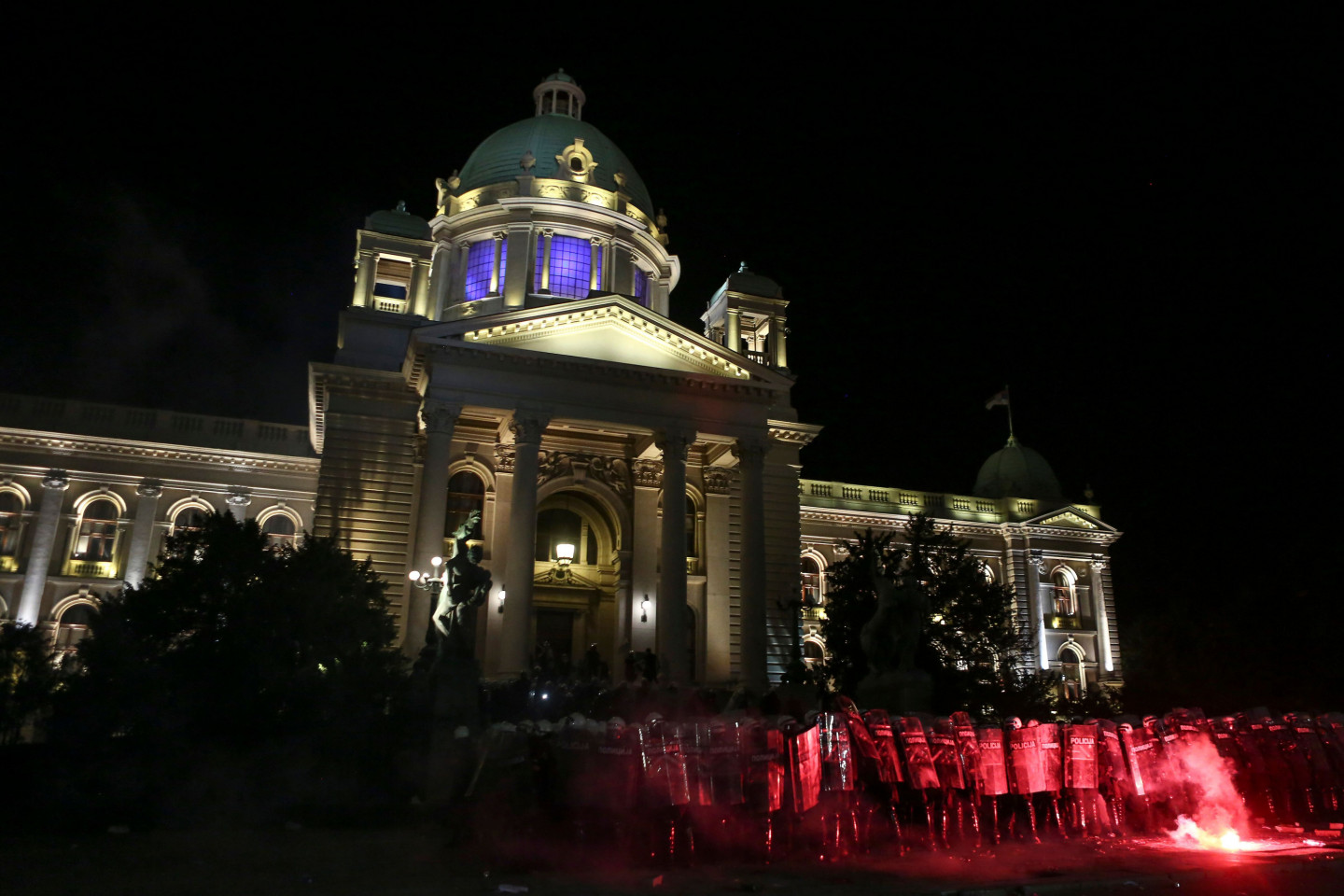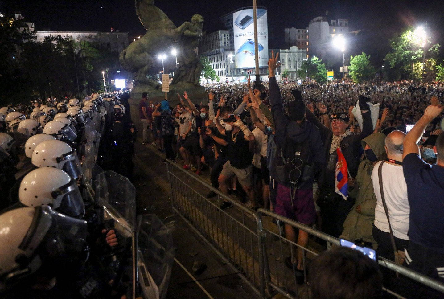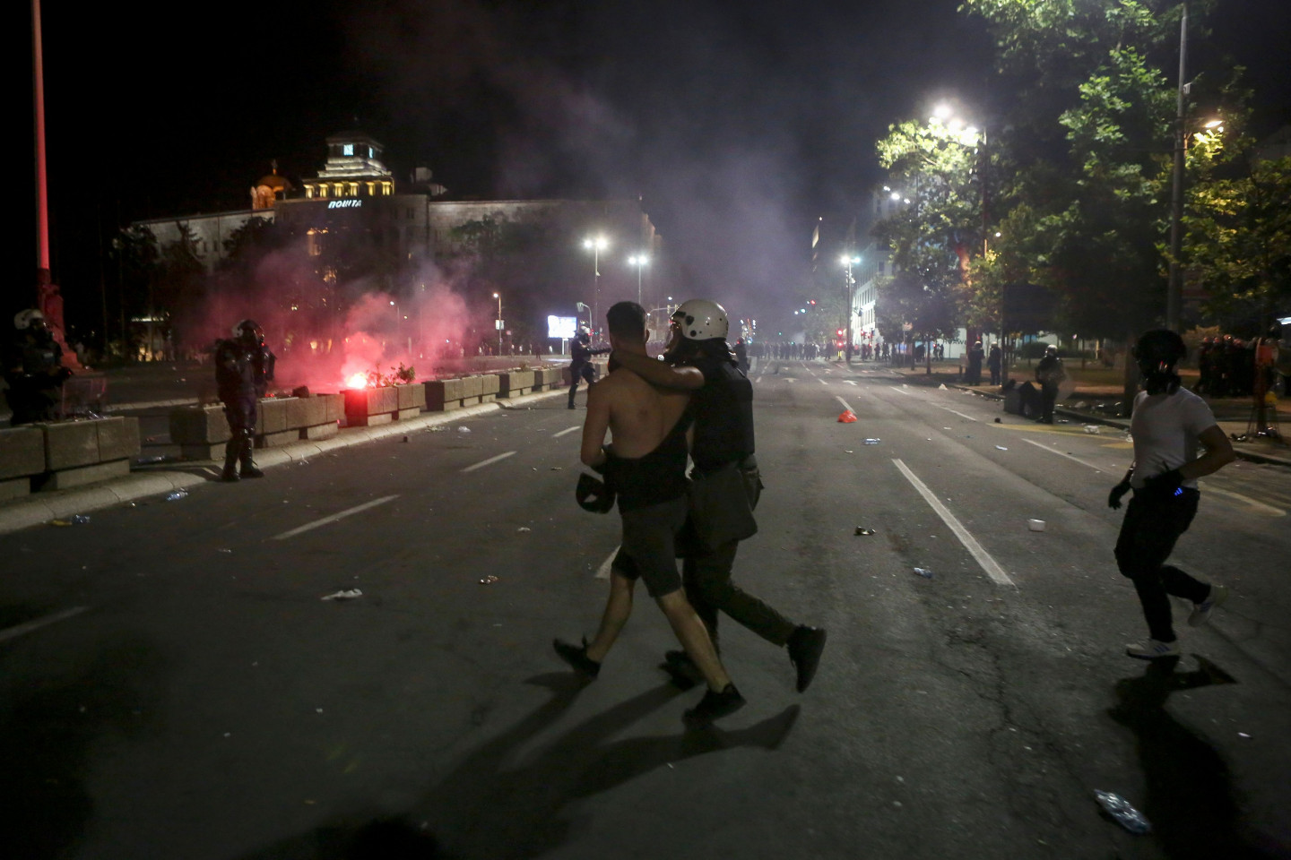 Serbijas policija sestdien paziņojusi, ka pēc sadursmēm, kas iepriekšējās dienas vakarā izcēlās Belgradā, aizturēts 71 cilvēks, tostarp kāds brits un kāds tunisietis. Kā ziņots, piektdien jau ceturto dienu pēc kārtas vairākās Serbijas pilsētās tūkstošiem cilvēku turpināja protestēt pret valdības lēmumu atjaunot iepriekš atceltos ierobežojumus, lai iegrožotu Covid-19 pandēmijas izplatību. Belgradā pie parlamenta ēkas protestētāji sāka ar akmeņiem apmētāt policistus, bet daļa no viņiem izmantoja pirotehniku un skandēja nacionālistiskus saukļus, no notikuma vietas ziņoja aģentūras AFP žurnālisti. "Starp aizturētajiem ir daudz ārvalstu pilsoņu no Bosnijas, Melnkalnes, kā arī no Lielbritānijas un Tunisijas," preses konferencē pavēstīja policijas priekšnieks Vladimirs Rebičs.