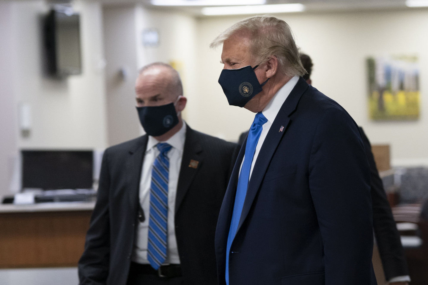 ASV prezidents Donalds Tramps, apmeklējot militāro medicīnas centru, iemūžināts sejas maskā.