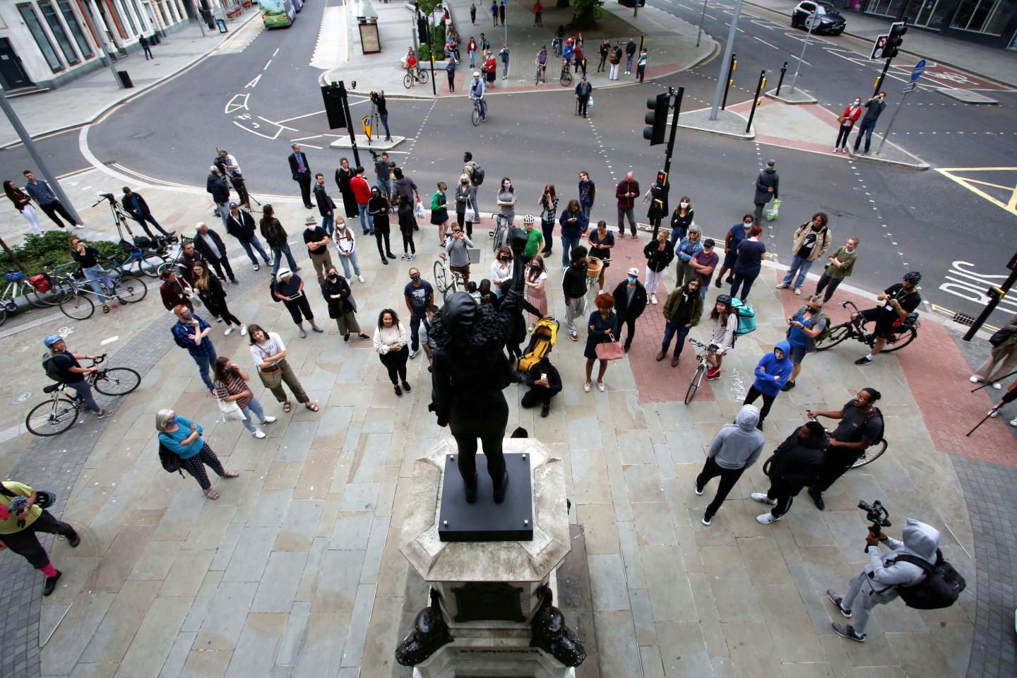 Bristolē vietā, kur pirms protestiem atradās pazīstamā XVII gadsimta vergu tirgotāja Edvarda Kolstona piemineklis, šorīt uzstādīta statuja, kas ataino protestu kustības "Melnādaino dzīvībām ir nozīme" aktīvisti. Statuja tika uzstādīta pirms rītausmas bez varasiestāžu atļaujas. Mākslinieks Marks Kvinns statujā atveidojis Dženu Rīdu, kas tika nofotografēta 7.jūnijā, stāvot uz postamenta pēc tam, kad protestētāji bija no tā nogāzuši Kolstona pieminekli un iemetušo to Eivonas upē. Solidarizējoties ar protestētājiem ASV, Lielbritānijā un citās Eiropas valstīs notikuši protesti pret rasismu. Līdzīgi kā ASV, arī Lielbritānijā izskanējuši aicinājumi aizvākt verdzības atbalstītāju pieminekļus.