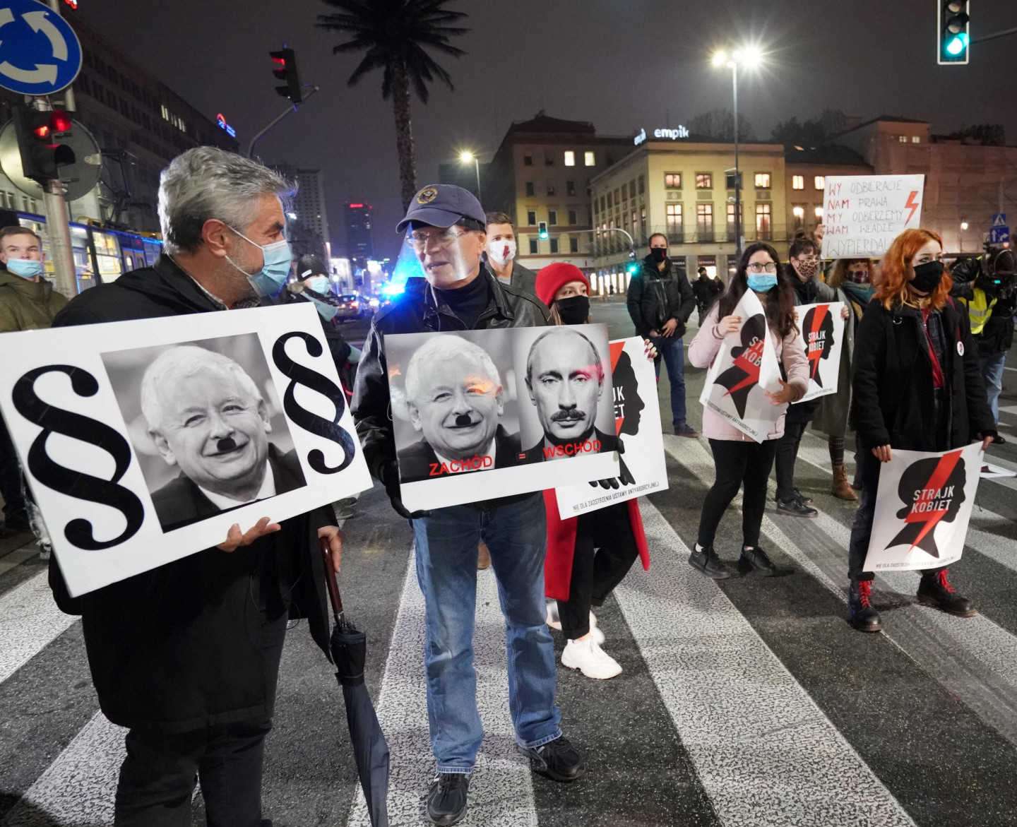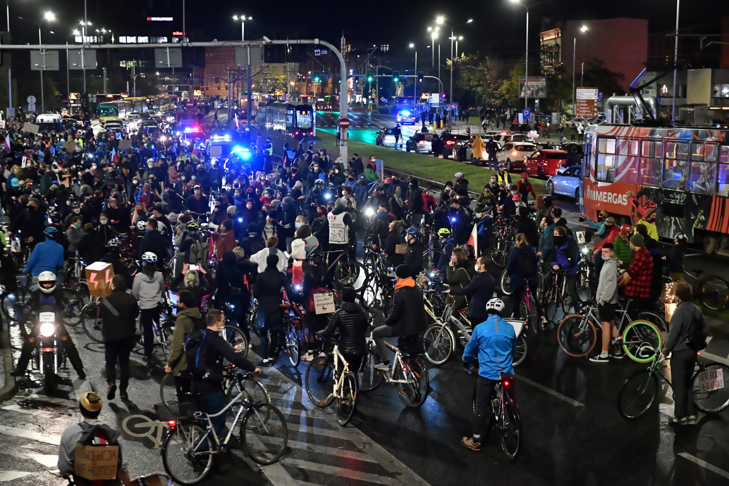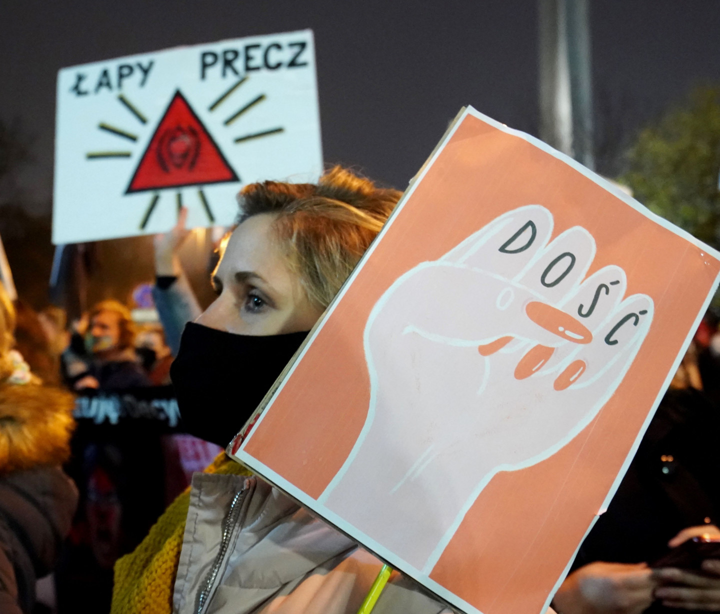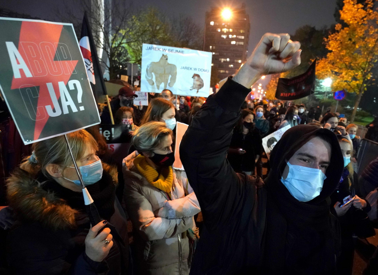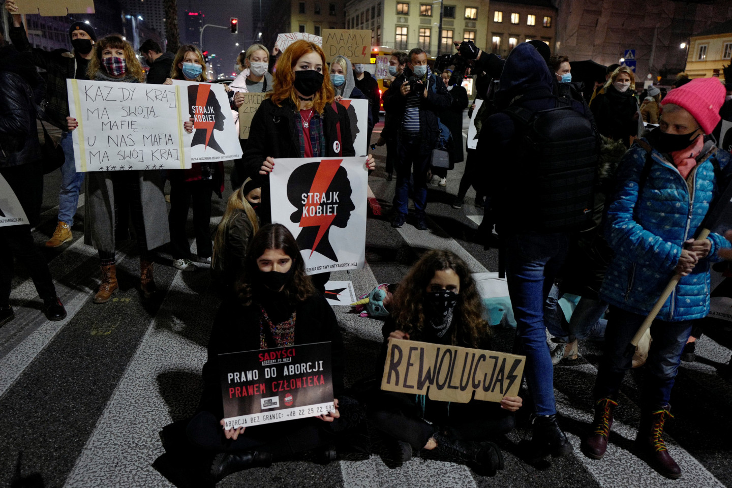 Polijā pirmdien turpinājušies protesti pret Polijas Konstitucionālās tiesas lēmumu, kas faktiski nozīmē abortu aizliegumu. Protestētāji nobloķēja vairākus ielu krustojumus Varšavā, un demonstrācijas notika arī citās Polijas pilsētās. Protesti Polijā notiek jau 12 dienas, neskatoties uz ierobežojumiem, kas noteikti cīņā pret jauno koronavīrusu. Polijas Konstitucionālā tiesa 22.oktobrī atzina, ka abortu veikšana nemaināmu, iedzimtu embrija defektu, arī Dauna sindroma un nāvējošu slimību, dēļ ir nelikumīga, jo konstitūcija aizsargā katra indivīda dzīvību. Tiesas lēmums ir faktisks abortu aizliegums, jo tiesas noraidītais nosacījums ir pamatojums gandrīz visiem legālajiem abortiem Polijā. Kopš tiesas lēmuma protesti pārauguši plašākās demonstrācijās pret valdību. Svētdien galvenie protestu organizatori izvirzīja savas prasības. Kustība Nacionālais sieviešu streiks pieprasīja atļaut sievietēm veikt abortus, ja viņas to vēlas, cienīt lesbiešu, geju, biseksuāļu un transpersonu (LGBT) tiesības, palielināt finansējumu veselības aprūpei, skaidrāk nošķirt baznīcu no valsts un palielināt atbalstu invalīdiem. Šodien atsevišķi protestēja arī kultūras sektorā strādājošie, tostarp, aktieri, kurus smagi skāruši cīņā ar Covid-19 ieviestie ierobežojumi. Tikmēr Polijas premjerministrs Mateušs Moraveckis atkārtoti aicināja pārtraukt protestus, lai novērstu jaunā koronavīrusa izplatīšanos. Viņš aicināja sēsties pie sarunu galda, nevis risināt konfliktus ielās.