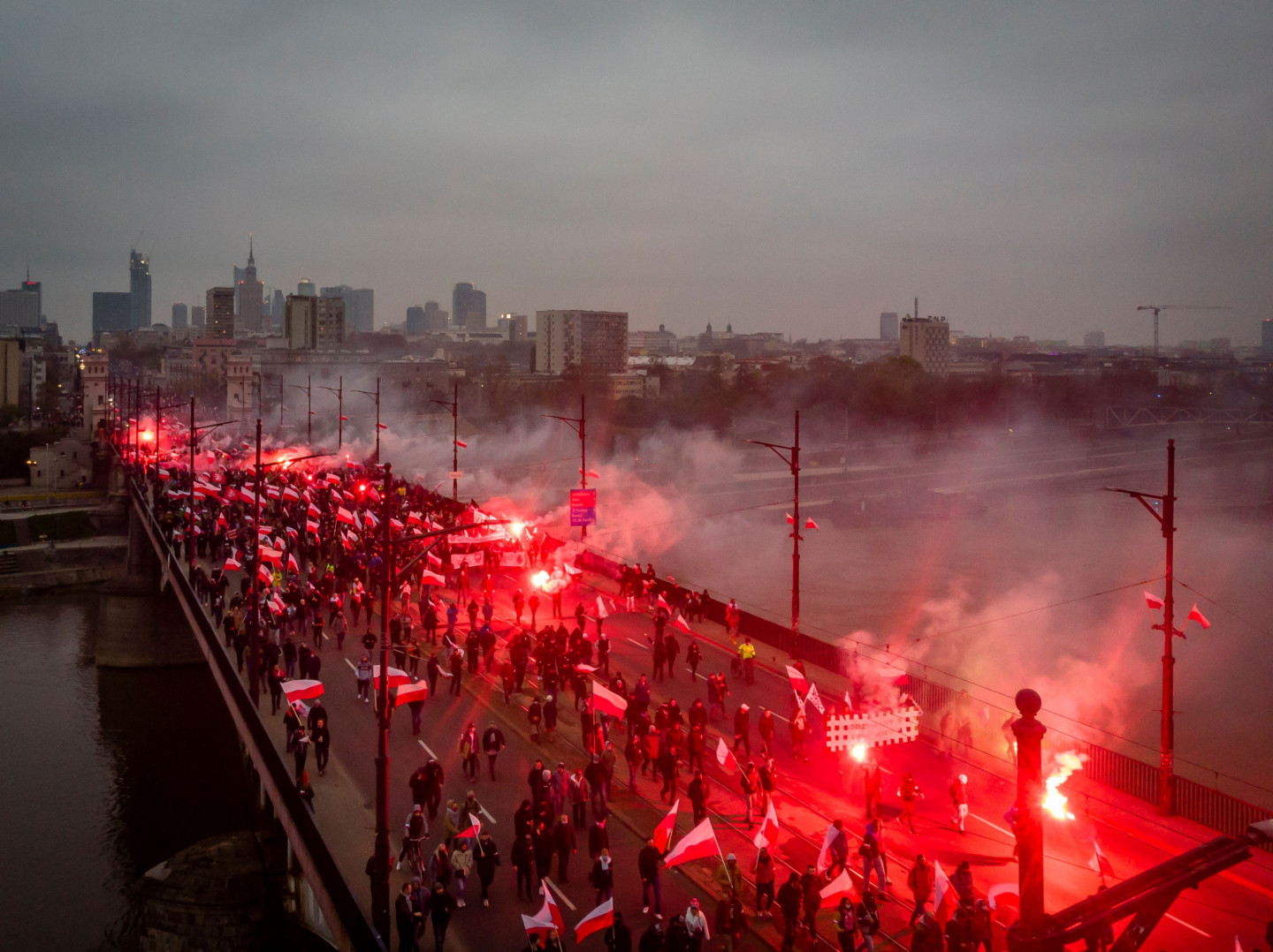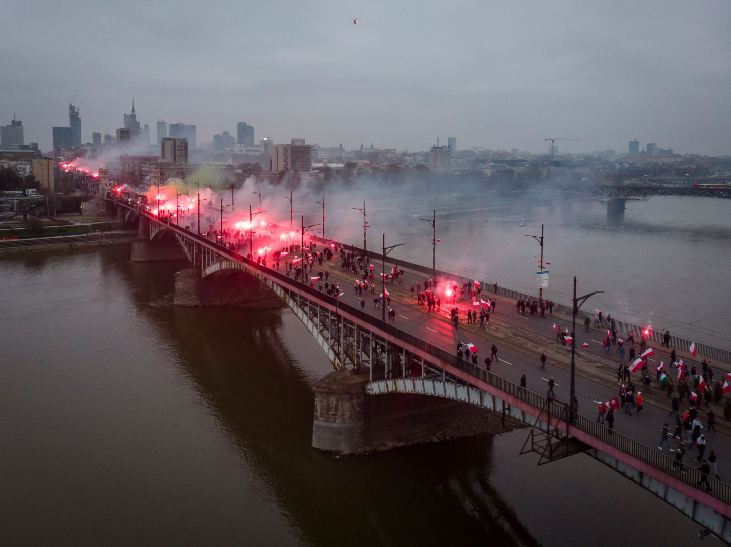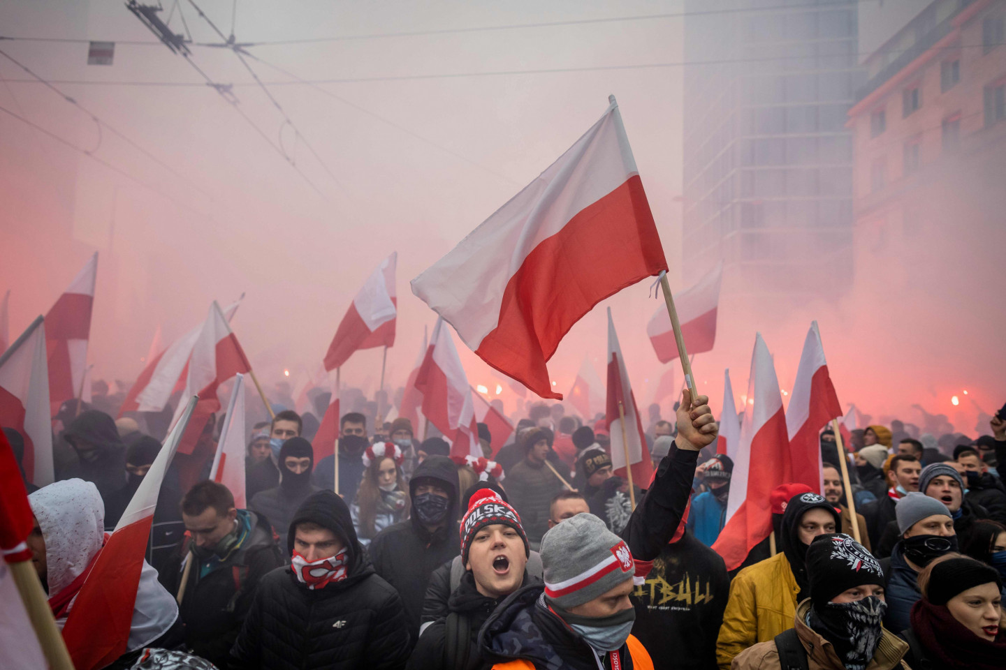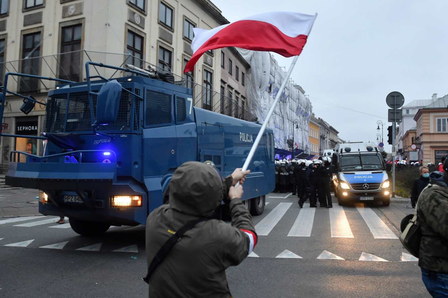 Varšavā trešdien izcēlušās sadursmes starp policiju un nacionālistiem, kuri devās nesankcionētā Neatkarības dienas gājienā. Sadursmēs ievainoti vairāki likumsargi, tviterī ziņo policija. Vietējā televīzijā demonstrētajos kadros redzams, ka policija izmanto asaru gāzi un gumijas lodes pret gājiena dalībniekiem, kas savukārt apmētā policistus ar akmeņiem un petardēm. Nesankcionētajā gājienā piedalījās vairāki tūkstoši cilvēku. Jaunā koronavīrusa pandēmijas dēļ varasiestādes šogad aizliedza nacionālistisko organizāciju rīkoto tradicionālo Neatkarības dienas gājienu Varšavā. Taču gājiena organizētāji nolēma tā vietā sarīkot braucienu ar automašīnām un motocikliem cauri Varšavas centram, bet daudzi dalībnieki atstāja savus transporta līdzekļus sānielās un devās uz priekšu kājām. Viņiem rokās bija sarkanbalti karogi un plakāti ar uzrakstu "Mēs aizstāvam savu civilizāciju". Šī gada gājiena moto bija "Mūsu civilizācija, mūsu noteikumi", un reklāmas plakātā attēlots šķēps, kas salauž zvaigzni sarkanā un varavīksnes krāsās, kas acīmredzot simbolizē komunismu un lesbiešu, geju, biseksuāļu un transpersonu (LGBT) kopienu.