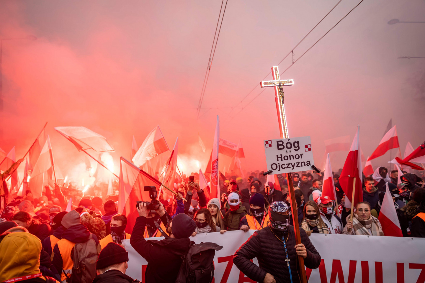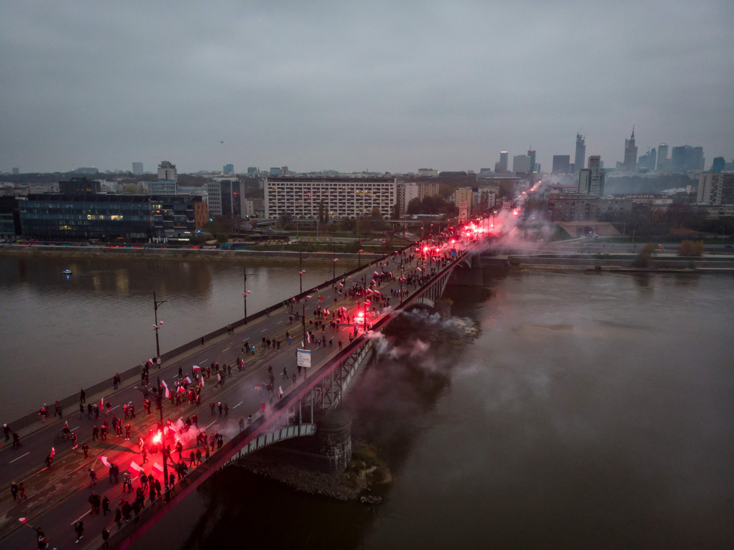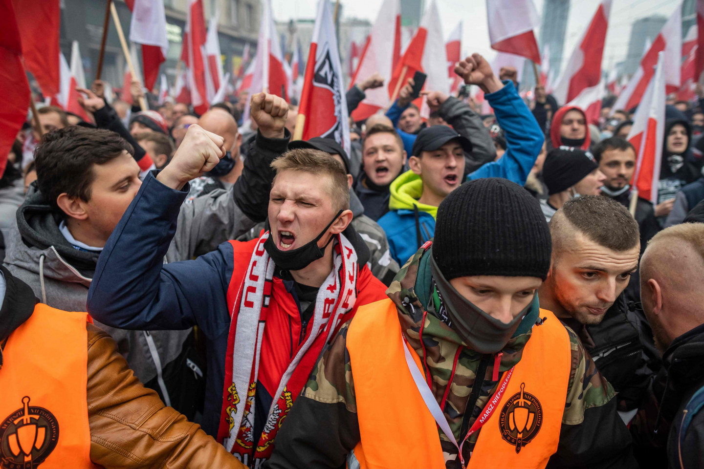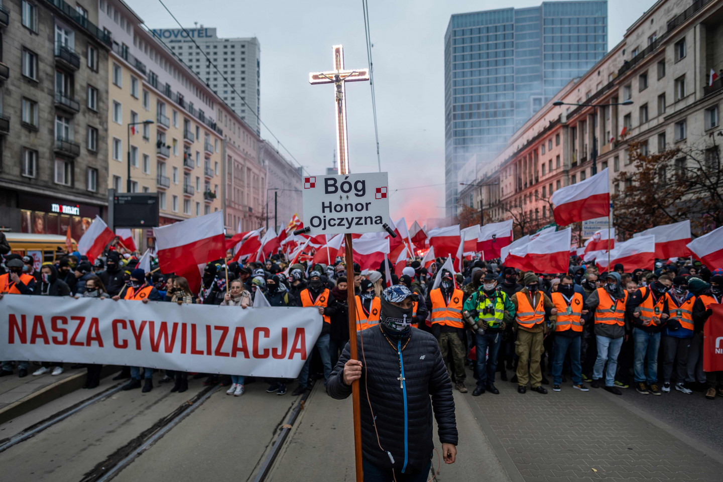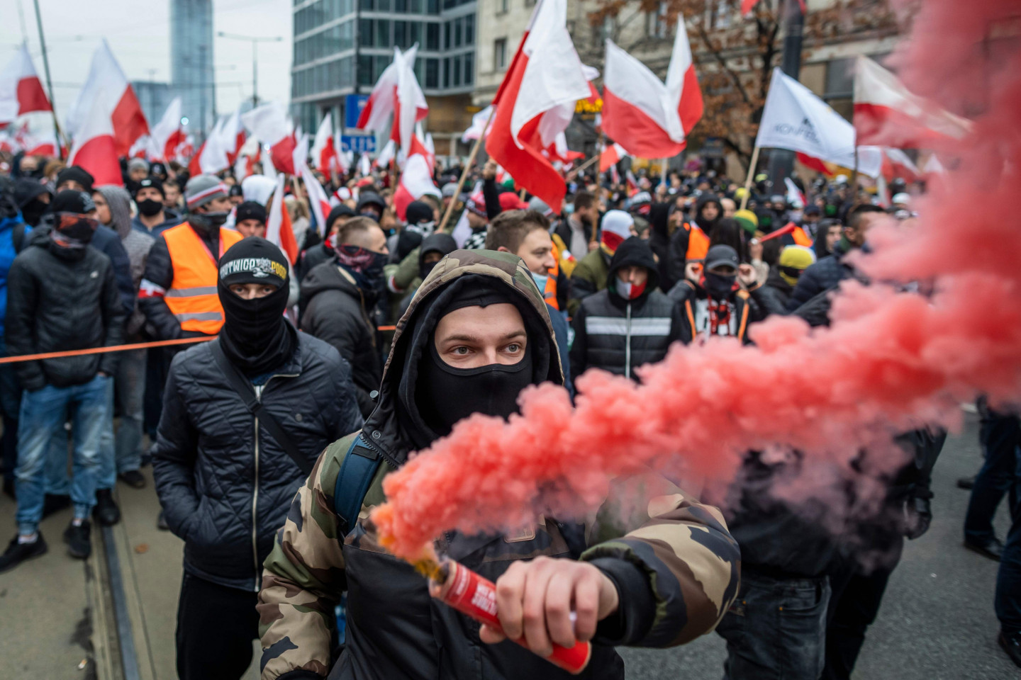 Varšavā trešdien izcēlušās sadursmes starp policiju un nacionālistiem, kuri devās nesankcionētā Neatkarības dienas gājienā. Sadursmēs ievainoti vairāki likumsargi, tviterī ziņo policija. Vietējā televīzijā demonstrētajos kadros redzams, ka policija izmanto asaru gāzi un gumijas lodes pret gājiena dalībniekiem, kas savukārt apmētā policistus ar akmeņiem un petardēm. Nesankcionētajā gājienā piedalījās vairāki tūkstoši cilvēku. Jaunā koronavīrusa pandēmijas dēļ varasiestādes šogad aizliedza nacionālistisko organizāciju rīkoto tradicionālo Neatkarības dienas gājienu Varšavā. Taču gājiena organizētāji nolēma tā vietā sarīkot braucienu ar automašīnām un motocikliem cauri Varšavas centram, bet daudzi dalībnieki atstāja savus transporta līdzekļus sānielās un devās uz priekšu kājām. Viņiem rokās bija sarkanbalti karogi un plakāti ar uzrakstu "Mēs aizstāvam savu civilizāciju". Šī gada gājiena moto bija "Mūsu civilizācija, mūsu noteikumi", un reklāmas plakātā attēlots šķēps, kas salauž zvaigzni sarkanā un varavīksnes krāsās, kas acīmredzot simbolizē komunismu un lesbiešu, geju, biseksuāļu un transpersonu (LGBT) kopienu.