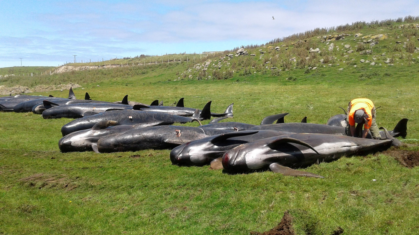 Četema salās, kas atrodas aptuveni 800 kilometru no Jaunzēlandes piekrastes, gājušas bojā aptuveni 100 pludmalē izmetušās grindas un pudeļdeguna delfīni, trešdien ziņoja amatpersonas. Vairums no dzīvniekiem pludmalē izmetās jau nedēļas nogalē, taču nomaļus esošajās salās glābšanas darbi bija apgrūtināti. Jaunzēlandes Dabas aizsardzības departaments (DOC) vēsta, ka kopumā gājušas bojā 97 grindas un trīs pudeļdeguna delfīni. Jūras zīdītāju masveida izmešanās Četema salu pludmalēs ir ierasta parādība, un tikai vienā šādā gadījumā, kas tika pieredzēts vēl 1918.gadā, gāja bojā aptuveni 1000 dzīvnieku. Ziņas par vaļu un delfīnu masveida pašnāvībām, izmetoties krastā, atrodamas visā rakstītās vēstures gaitā, taču šīs parādības iemesli joprojām ir noslēpums.