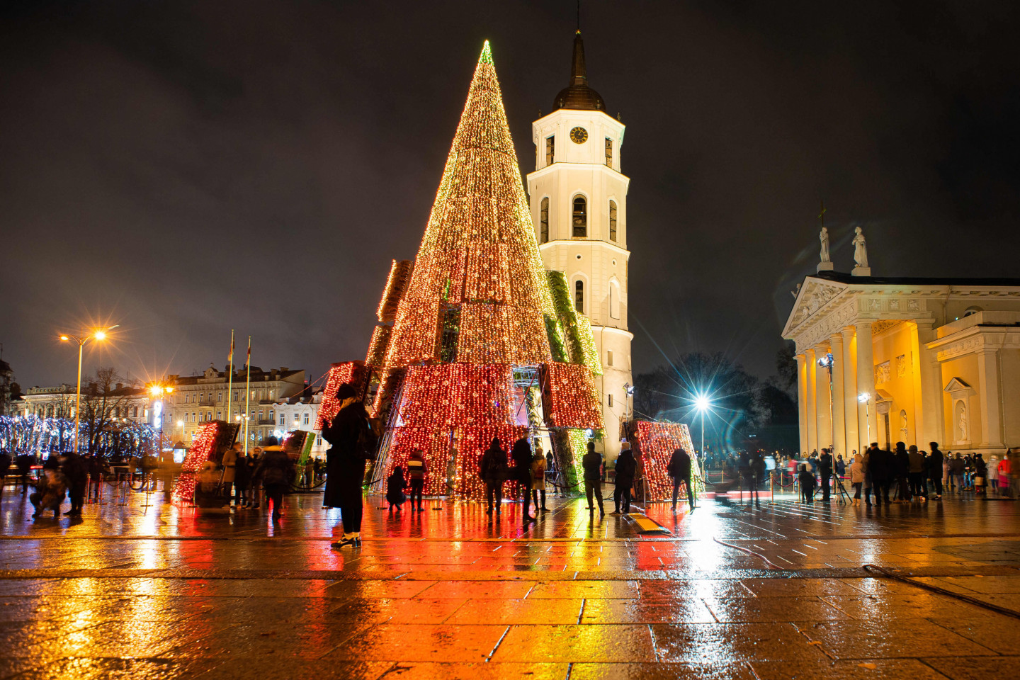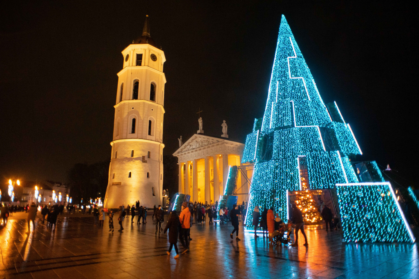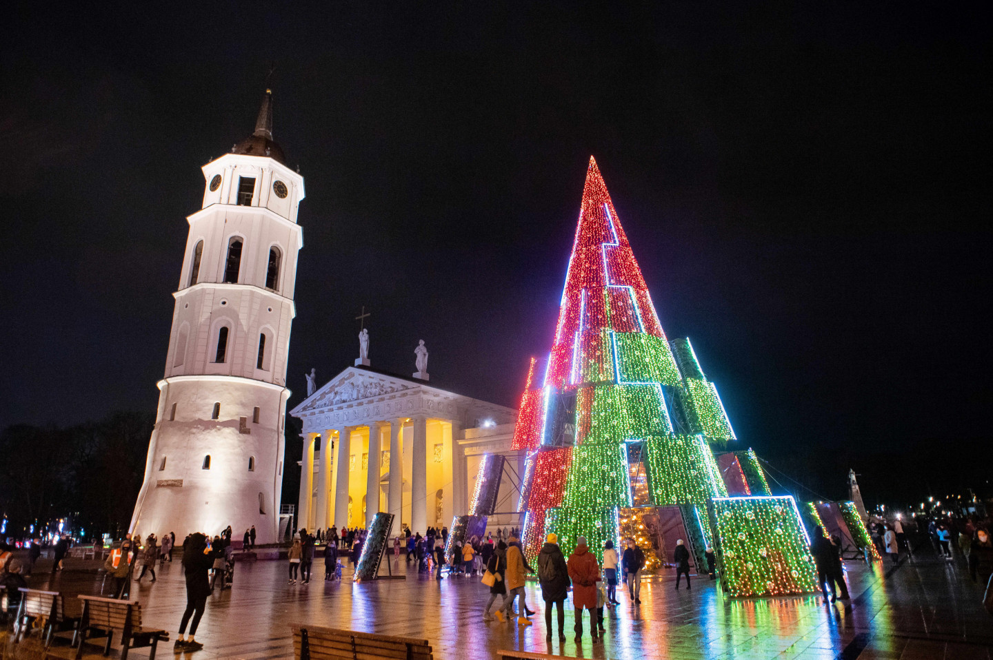 Lietuvas galvaspilsētā Viļņā iedegta krāšņa svētku egle. Jau zināms, ka pērn tieši lietuviešu egle tika atzīta par skaistāko Eiropā, bet arī šogad tā ir ievērības cienīga. Šī egle kā ierasts meklējama pie Viļņas katedrāles.