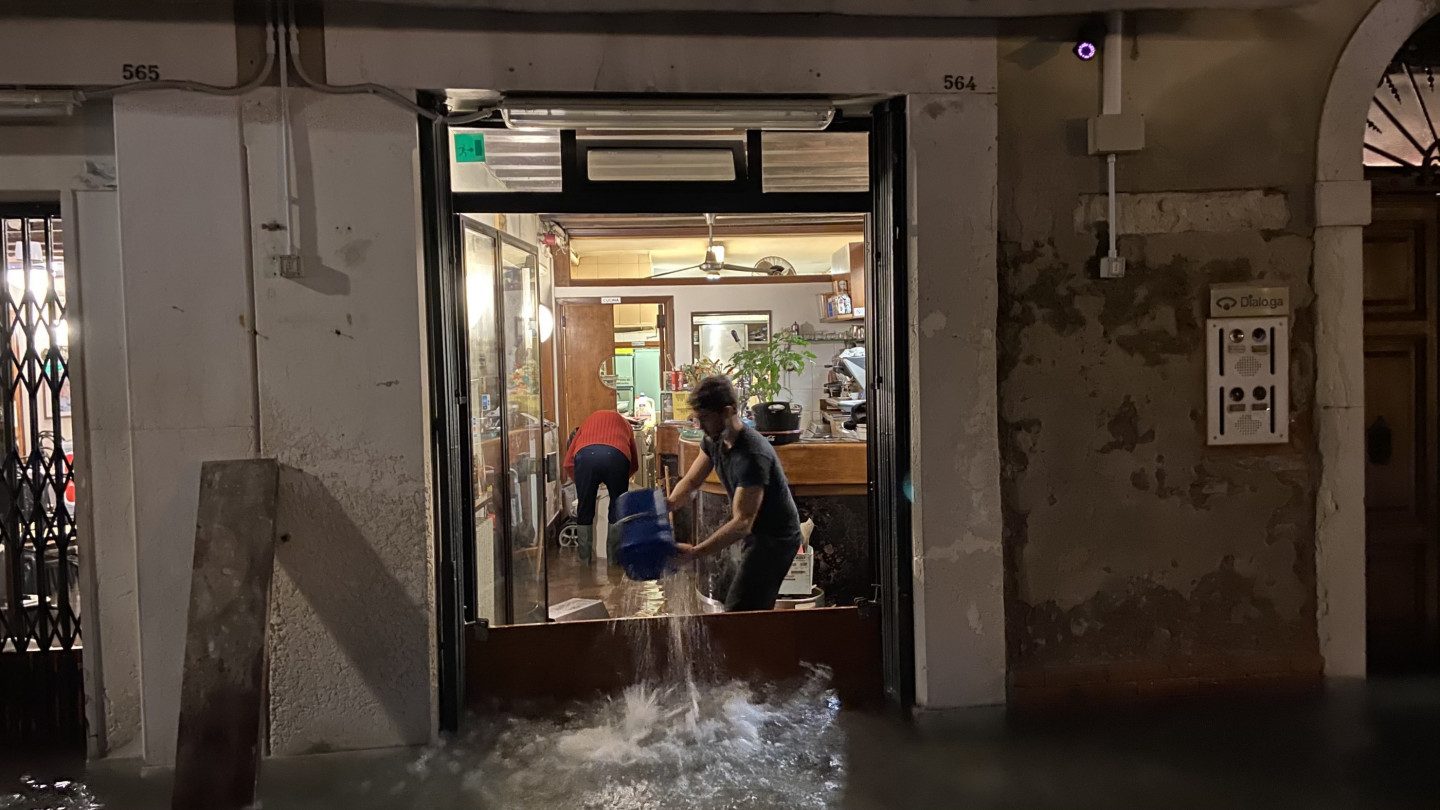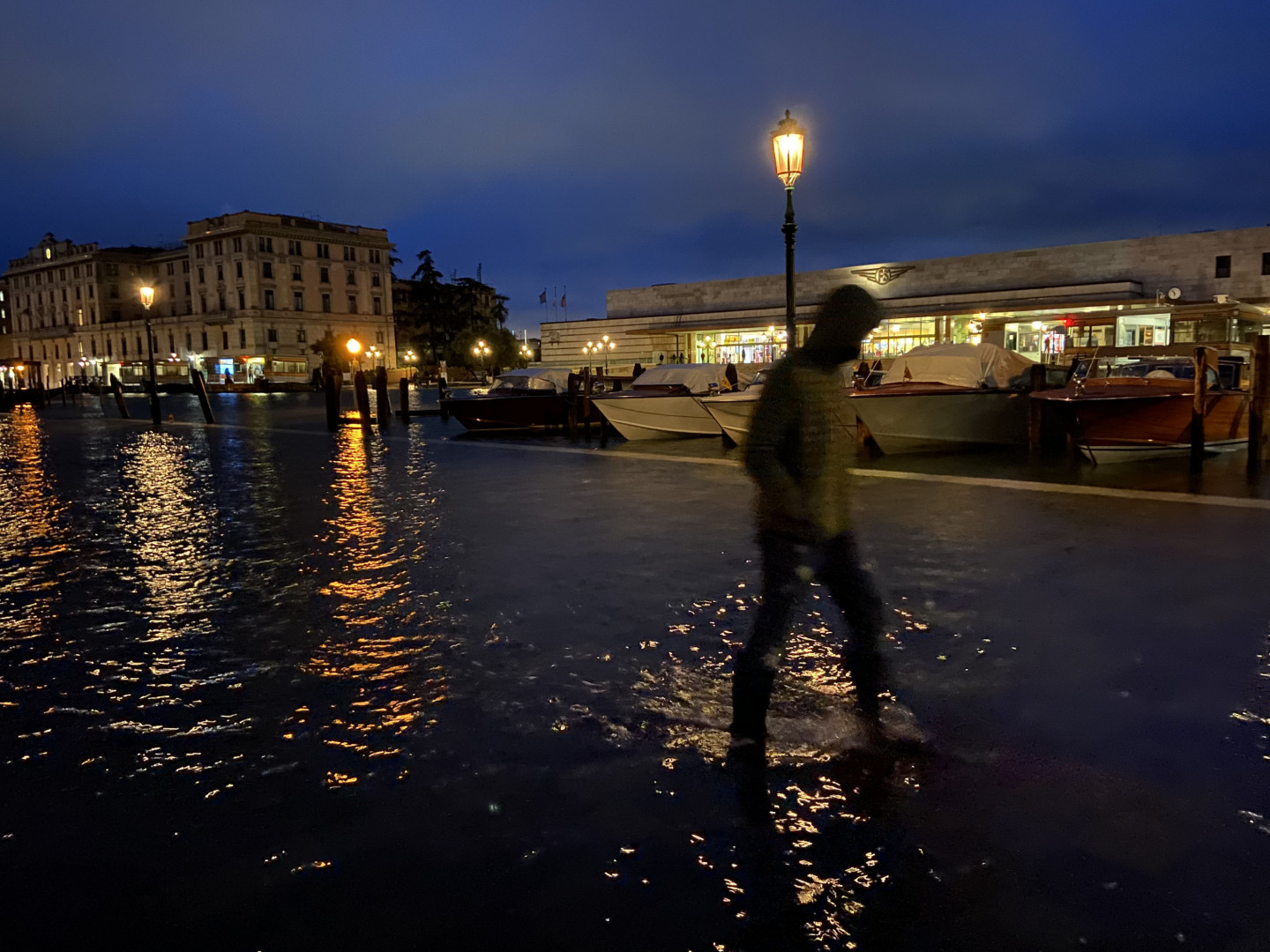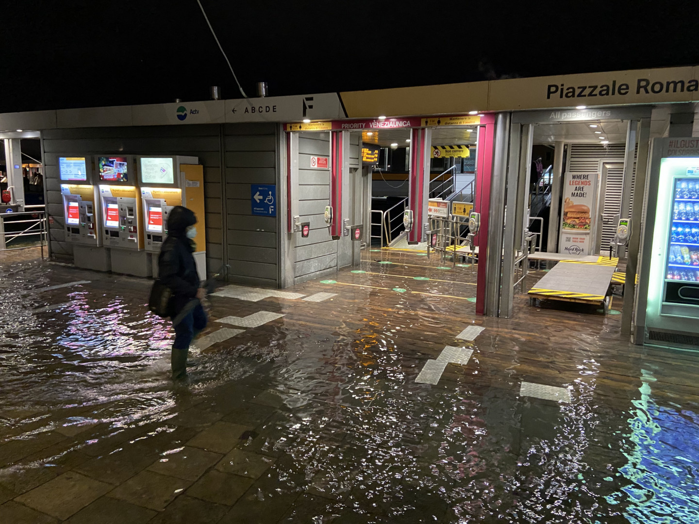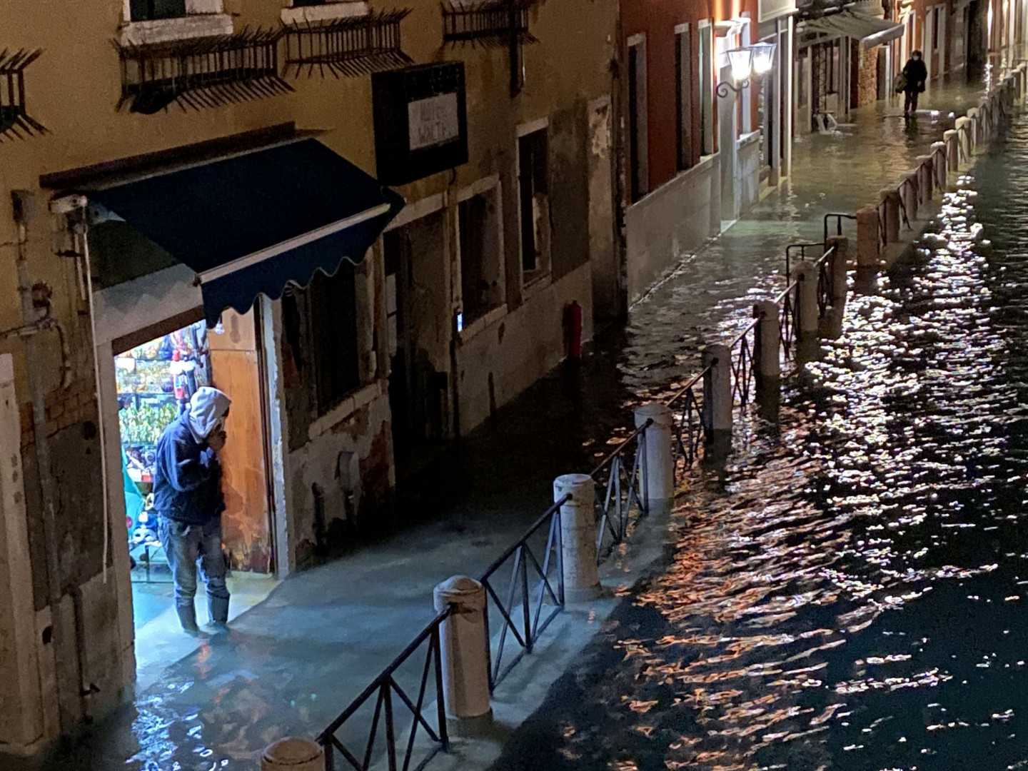 Itālijas pilsētu nesagatavotu pārsteidza spēcīgs vējš, kas "sadzina" ūdeni Venēcijas ielās un laukumos. Kraso laika apstākļu dēļ pašvaldība nepaguva iedarbināt plūdu aizsardzības sistēmu.