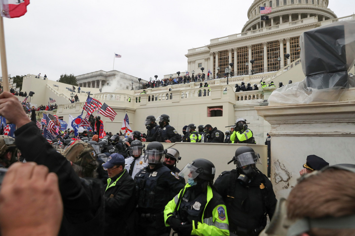 Trešdien ASV prezidenta Donalda Trampa atbalstītāju un policijas sadursmju dēļ tika slēgta Kapitolija ēka Vašingtonā, kur kongresmeņiem paredzēts apstiprināt Džo Baidena uzvaru prezidenta vēlēšanās. Sadursmju gaitā Kapitolija ēkā tika sašauts viens cilvēks, kas tika aizvests uz slimnīcu. Policija pavēstīja, ka ir sašauta kāda baltā sieviete, kurai iešauts plecā, un telekanāls CNN ziņoja, ka viņa kritiskā stāvoklī atrodas vietējā slimnīcā. Baltais nams paziņojis, ka nekārtību dēļ tiek aktivizēta Nacionālā gvarde un "federālie aizsardzības dienesti". Laikā, kad notika abu palātu kongresmeņu sesija, atskanēja paziņojums, ka "ārēju draudu" dēļ neviens nevar ne ieiet, ne pamest Kapitolija kompleksu. Dažiem protestētājiem izdevās ielauzties Kapitolijā, pēc kā tika apturēta Kongresa sesija. Pēc protestētāju ielaušanās ēkā no turienes tika evakuēts ASV viceprezidents Maiks Penss, kurš vadīja abu Kongresa palātu sesiju. Penss pēc tam tviterī paziņoja, ka "vardarbība un postījumi, kas notiek ASV Kapitolijā, ir jāizbeidz". "Visiem iesaistītajiem vajag respektēt policistus un nekavējoties atstāt ēku. Mierīgs protests ir katra amerikāņa tiesības, bet šis uzbrukums mūsu Kapitolijam netiks paciests un iesaistītie tiks tiesāti pēc pilnas likuma bardzības," tvītoja Penss. Daži kongresmeņi un mediji notiekošo nodēvēja par apvērsuma mēģinājumu. Demokrātu kongresmeņi aicināja Trampu pieprasīt visiem viņa atbalstītājiem nekavējoties atstāt Kapitolija ēku un teritoriju. Baidens nosodīja iebrukumu Kapitolijā kā "sacelšanos" un "bezprecedenta uzbrukumu" ASV demokrātijai un pieprasīja, lai Tramps televīzijā aicinātu izbeigt šo vardarbīgo "aplenkumu". Vienā no Kapitolija telpām izpūsta asaru gāze, pēc kā sēžu zālē palikušajiem kongresmeņiem izdalītas gāzmaskas. Telekanāls CNN arī publicēja attēlu, kurā redzams, kā apsargi zāles iekšienē izvilkuši šaujamieročus un tēmē uz zāles durvīm. Tikmēr Tramps tviterī aicināja protestētājus būt "mierīgiem", paziņojot, ka policija ir "mūsu valsts pusē". Vēlāk Tramps vienu minūti garā videoierakstā tviterī aicināja savus piekritējus "tagad doties mājās". "Es zinu jūsu sāpes. Mums bija vēlēšanas, kas mums tika nozagtas. Tomēr jums tagad jādodas mājās. (..) Mums ir vajadzīgs miers. Mums ir vajadzīgs likums un kārtība," tvītoja Tramps videoierakstā, kas publicēts vairāk nekā divas stundas pēc protestētāju iebrukuma Kapitolijā sākuma. Tika pastiprināta Baltā nama apsardze, pie kura patrulē sargi ar automātiem rokās. Sadursmes Vašingtonā starp protestētājiem un policiju sākās vietā, kur pēc divām nedēļām paredzēta Baidena inaugurācijas ceremonija. Protestētāji sagāza metāla barjeras pie Kapitolija kāpnēm, kur viņus sagaidīja policisti. Kapitolija policija lūgusi tiesībsargājošo iestāžu, arī federālo, palīdzību. Saistībā ar nekārtībām Kolumbijas apgabala mērs Mjūriela Bouzere no trešdienas plkst.18 līdz ceturtdienas plkst.6 izsludinājusi komandantstundu. Sadursmes sākušās īsi pēc tam, kad Tramps aicināja viceprezidentu Maiku Pensu neapstiprināt Džo Baidena uzvaru prezidenta vēlēšanās. Reaģējot uz Trampa sacīto, Penss paziņoja, ka neiejauksies, lai apturētu Baidena uzvaras apstiprināšanu Kongresā. Kongresa abām palātām trešdien formāli jāapstiprina Elektoru kolēģijas balsojums, ar kuru tika apstiprināta Baidena uzvara ASV prezidenta vēlēšanās, kuras notika 3.novembrī.