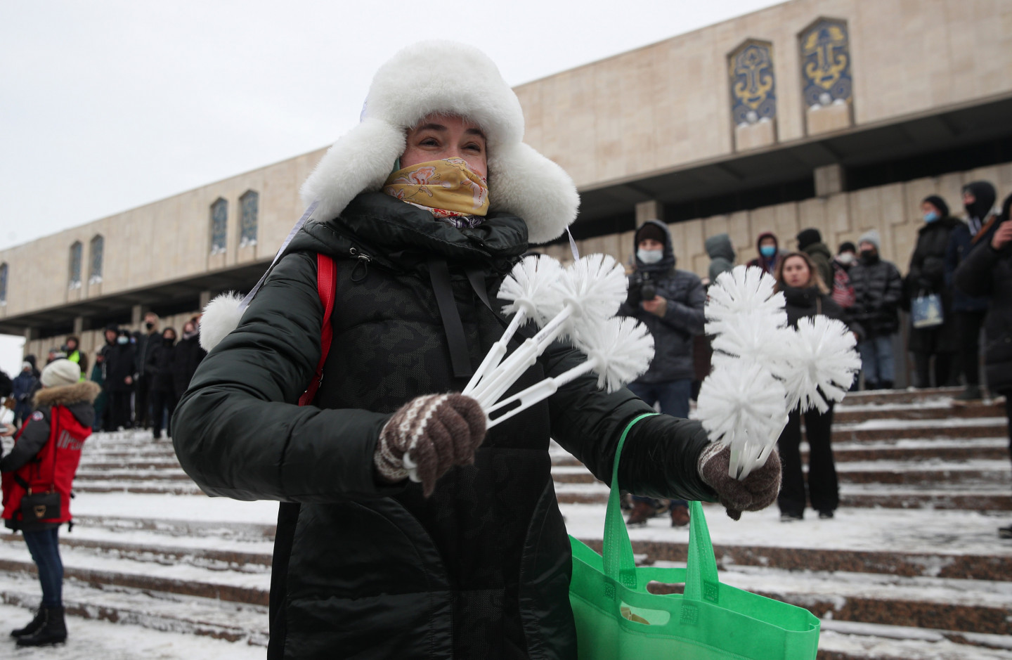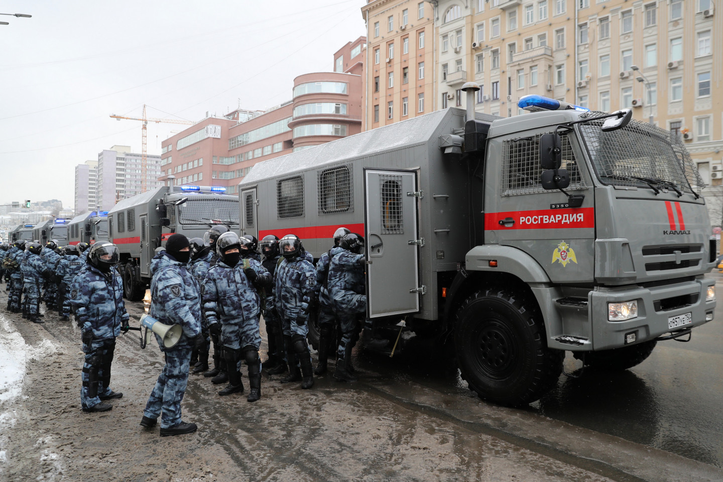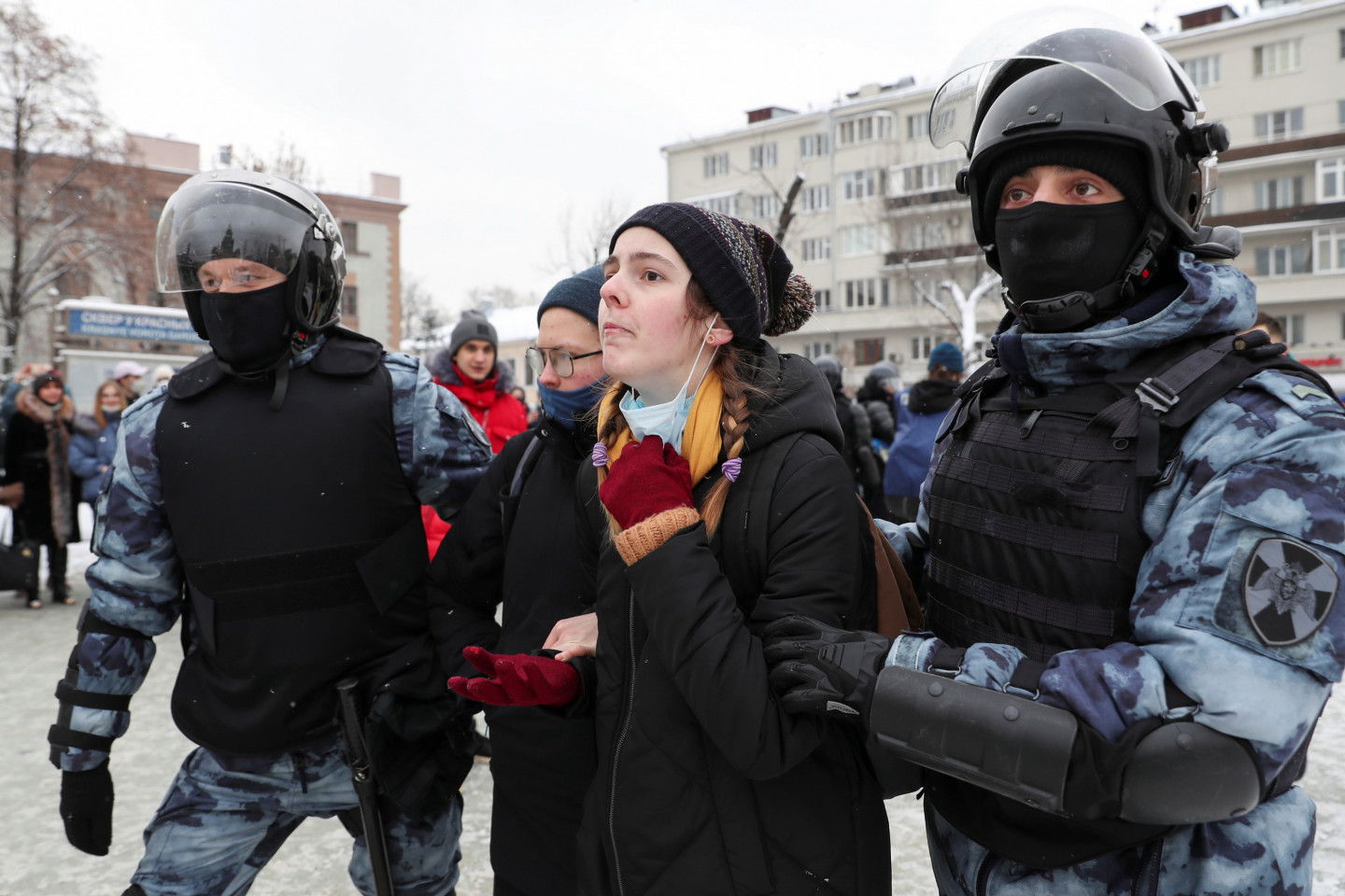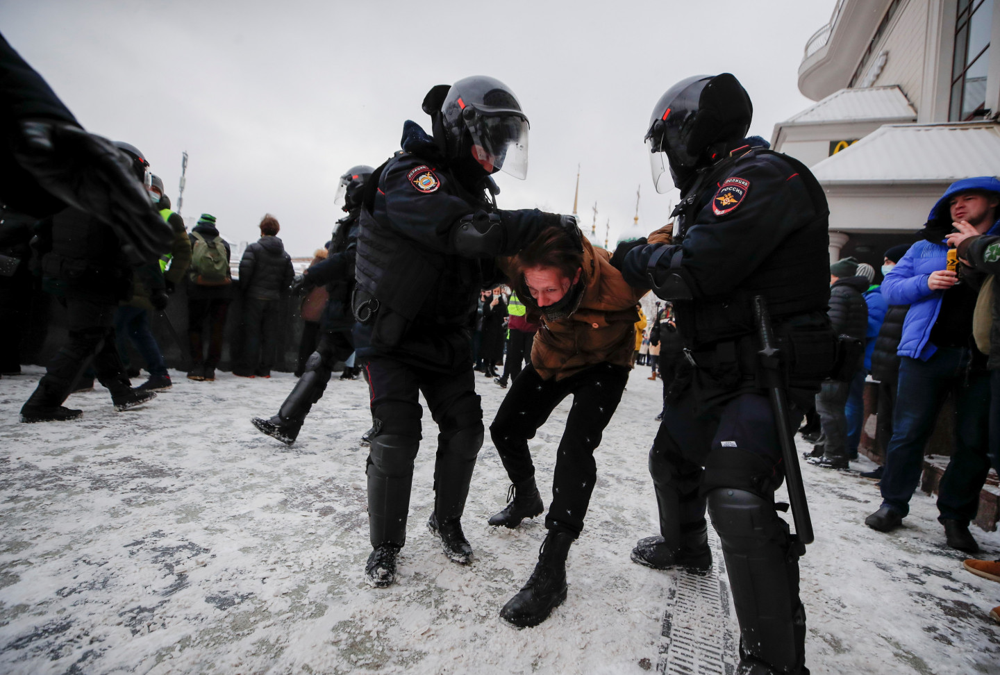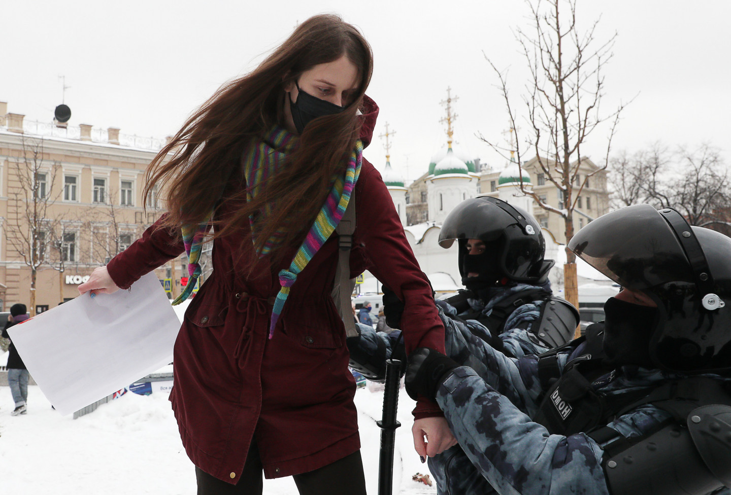 Krievijā notiekošajās protesta akcijās pret opozīcijas līdera Alekseja Navaļnija apcietināšanu aizturēto skaits svētdien sasniedzis vismaz 5021, ziņo nevalstiskā organizācija "OVD-Info", kas Krievijā veic politieslodzīto uzskaiti. Tas ir lielākais aizturēto skaits vienas protesta akcijas laikā, kāds jebkad reģistrēts mūsdienu Krievijā. Vladivostokā, kur protesta akcijas svētdien sākās pirmās, policija aizturējusi vismaz 129 cilvēkus. Daudz aizturēto ir arī Sibīrijas pilsētās. Piemēram, Krasnojarskā aizturēti 194 demonstranti. Īpaši liela demonstrācija notikusi Novosibirskā, kur ielās izgājuši vairāki tūkstoši cilvēku, kas skandēja "Putins zaglis". Arī te aizturēti 103 cilvēki. 180 cilvēki aizturēti Ņižņijnovgorodā, Tverā - 124, Voroņežā 122. Permā aizturēti 40, bet Novokuzņeckā 36 protestētāji. Starp aizturētajiem ir arī radiostacijas "Eho Moskvi" Samāras redakcijas galvenais redaktors. Kopumā saņemtas ziņas par aizturēšanām 87 pilsētās. Maskavā, kur akcijas sākums bija paredzēts plkst.12 (plkst.11 pēc Latvijas laika), intensīvas aizturēšanas sākās vēl pirms tam, un to varēja vērot neatkarīgā televīzijas kanāla "Doždj" tiešajā ēterā. Sākotnēji Navaļnija līdzgaitnieki aicināja ļaudis pulcēties pie Federālā drošības dienesta (FSB) galvenās mītnes, taču Maskavas centrs svētdien tika slēgts. Varasiestādes slēdza gājējiem Sarkano laukumu un galvenās ielas galvaspilsētas centrā, kā arī septiņas metro stacijas. Mainīti tika arī sabiedriskā virszemes transporta maršruti. "Pilsētas centrs pārvērties nepieejamā cietoksnī," ziņoja radiostacijas "Eho Moskvi" korespondents, piebilstot, ka visur redzami policisti, metāla barjeras un policijas autotransports aizturēto pārvietošanai. FSB galvenās mītnes apkārtnē bija slēgti vairāki veikali un kafejnīcas. Tāpēc protesta akcijas rīkotāji mainīja pulcēšanās vietas, un protestēji, izmantojot nelielas šķērsielas un pagalmus, devās gājienā uz cietumu "Motroskaja tišina", kur atrodas apcietinātais Navaļnijs. "Doždj" ziņo, ka arī tur notikusi cilvēku aizturēšana. Kopumā Maskavā aizturēti vairāk nekā 1600 cilvēki. Starp aizturētajiem bija arī Navaļnija dzīvesbiedre Jūlija. Aizturēts arī vēsturnieks, publicists un Cilvēktiesību padomes loceklis Nikolajs Svanidze. Jūlija Navaļnija pēc protokola sastādīšanas par mītiņu rīkošanas noteikumu pārkāpumu vakarā tikusi atbrīvota, taču pirmdien plkst.10 (plkst.9 pēc Latvijas laika) viņai jāierodas tiesā. "Doždj" vēsta, ka pie metro stacijas "Tverskaja" kāds vīrietis esot aplējies ar benzīnu un aizdedzinājies. Vīrietis ar stipriem apdegumiem nogādāts slimnīcā, un šobrīd atrodas reanimācijas nodaļā. Par viņa rīcības motīviem ziņu pagaidām nav. Lai gan Navaļnija štābs jau paziņojis, ka protesta akcija ir beigusies, ne visi ļaudis vēlējušies izklīst, un tiek ziņots, ka Maskavā un Sanktpēterburgā turpinās aizturēšanas. Arī Sanktpēterburgā dienas gaitā pilsētas centrs bija slēgts. Otrajā lielākajā Krievijas pilsētā notikušas arī nelielas sadursmes starp protestētājiem un policiju. Cita starpā Sanktpēterburgā uz neilgu laiku aizturēts Krievijā pazīstamais reperis "Oxxxymiron", bet kopumā aizturēti vismaz 1116 protestētāji. Saskaņā ar "OVD-Info" datiem starp aizturētajiem ir vismaz 93 žurnālisti. Cilvēktiesību aizstāvji ziņo, ka policisti vismaz 51 cilvēku aizturēšanas laikā piekāvuši. Atšķirībā no pagājušās nedēļas nogales policija svētdien lietojusi ne tikai stekus, bet arī elektrošoka ierīces. Solidaritātes akcijas ar Krievijas opozīciju notikušas arī citviet pasaulē. Piemēram, Parīzē ielās izgājuši aptuveni 200 cilvēku, vēsta laikraksts "Novaja Gazeta". Solidaritātes mītiņš noticis arī Amsterdamā. Tikmēr ASV nosodījušas vēršanos pret miermīlīgajiem demonstrantiem un pieprasījušas Navaļnija atbrīvošanu. "ASV nosoda pastāvīgu skarbas taktikas pielietošanu no Krievijas varasiestāžu puses pret miermīlīgiem protestētājiem un žurnālistiem, kas turpinās divas nedēļas pēc kārtas," tviterī paziņojis valsts sekretārs Entonijs Blinkens. Kā ziņots, iepriekšējā nedēļas nogalē notikušajās protesta akcijās visā Krievijā kopumā aizturēti 4002 cilvēki. Savukārt Maskava, reaģējot uz Blinkena paziņojumu, apsūdzējusi Vašingtonu par iejaukšanos Krievijas iekšējās lietās. Neskatoties uz aso varasiestāžu reakciju uz nesankcionētajām protesta akcijām, vietējie mediji lēš, ka svētdien vairākās pilsētās ielās izgājis lielāks skaits protestētāju nekā 23.janvārī. Kā vēsta vietējie izdevumi, vairāk cilvēku piedalījušies protestos Novosibirskā un Jekaterinburgā. Tur, pēc mediju apsēm, ielās izgājuši vairāk nekā 12 tūkstoši demonstrantu. Tīmekļa izdevums "Otkritije Media" raksta, ka 40 lielākajās Krievijas pilsētās protestos piedalījušies 60 līdz 100 tūkstoši cilvēku. Tikai Maskavā akcijas apogeja brīdī tās dalībnieku skaits varētu būt sasniedzis 15 000. Tajā pašā laikā Maskavas policija apgalvo, ka protesta akcijā galvaspilsētā piedalījušies tikai 2000 cilvēku.