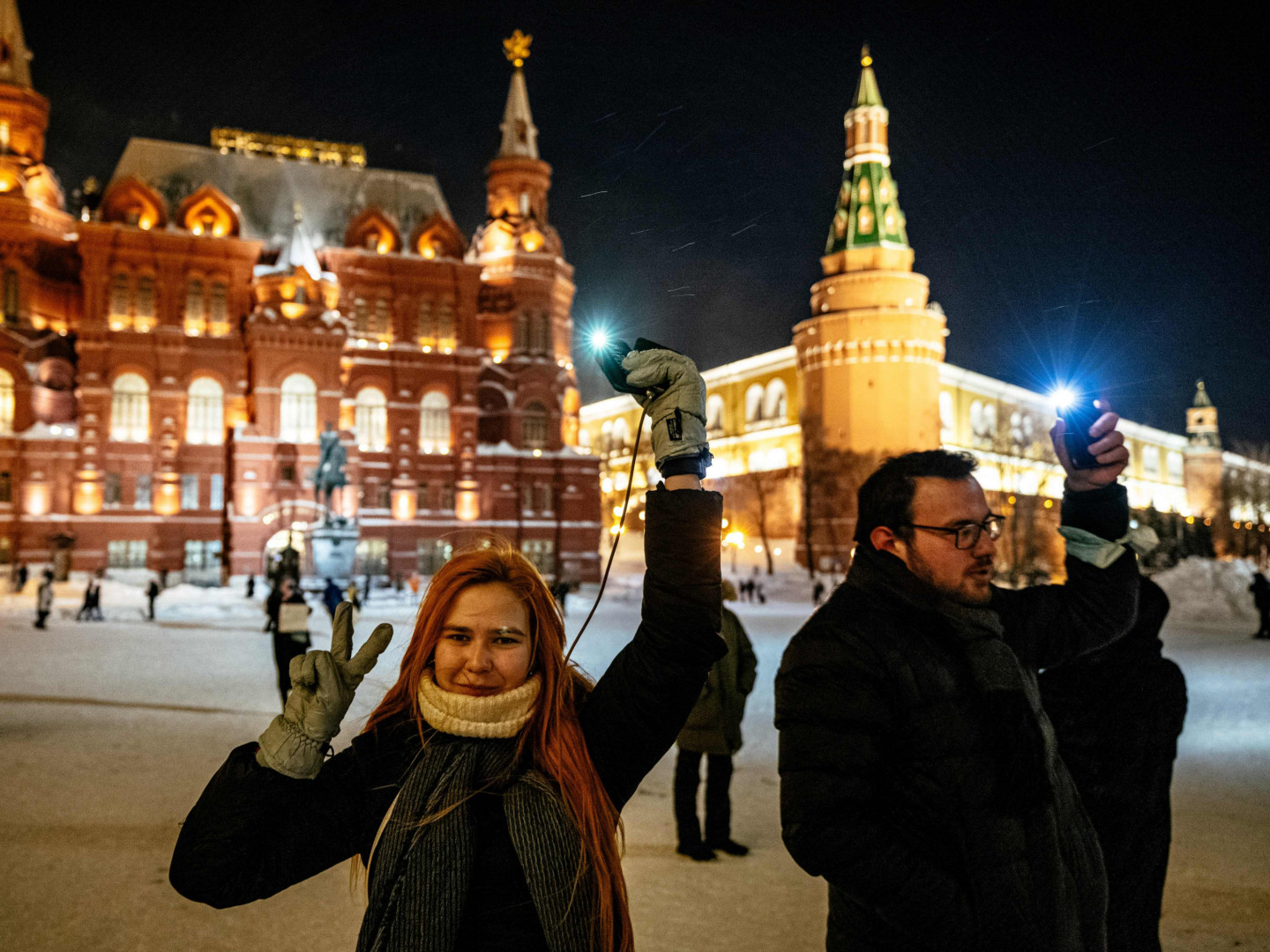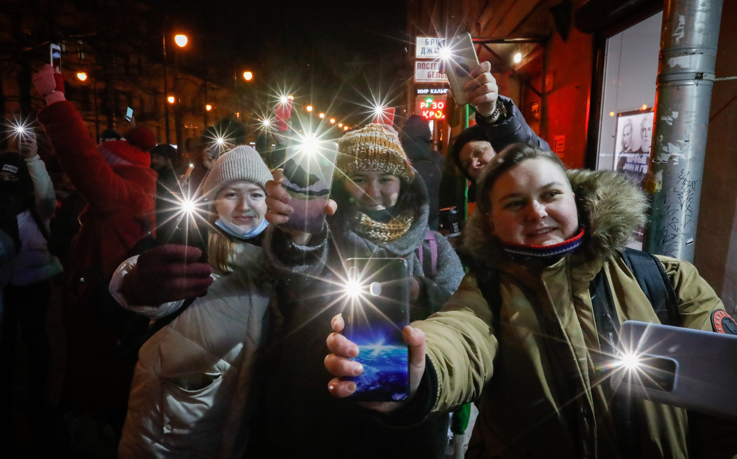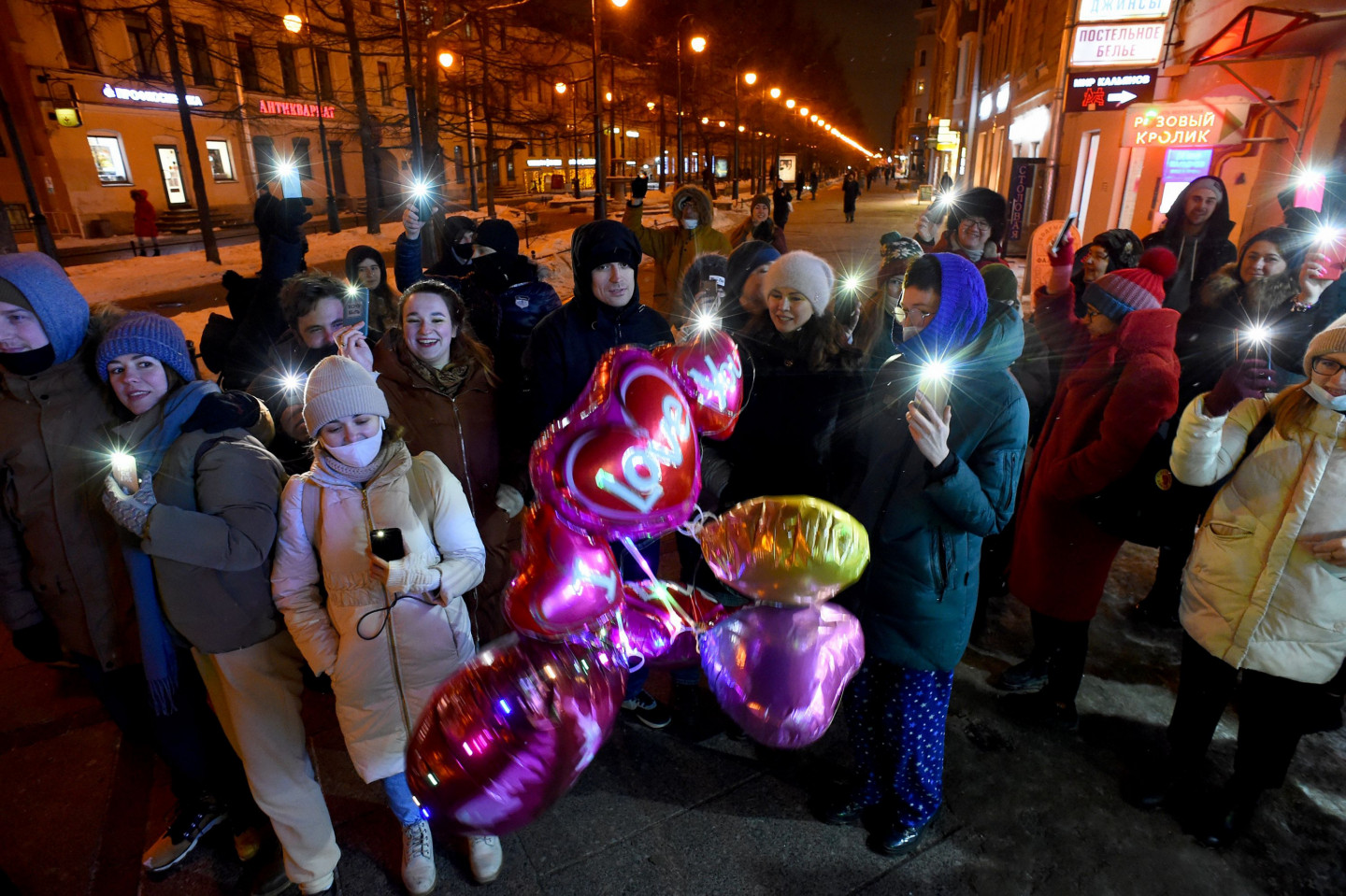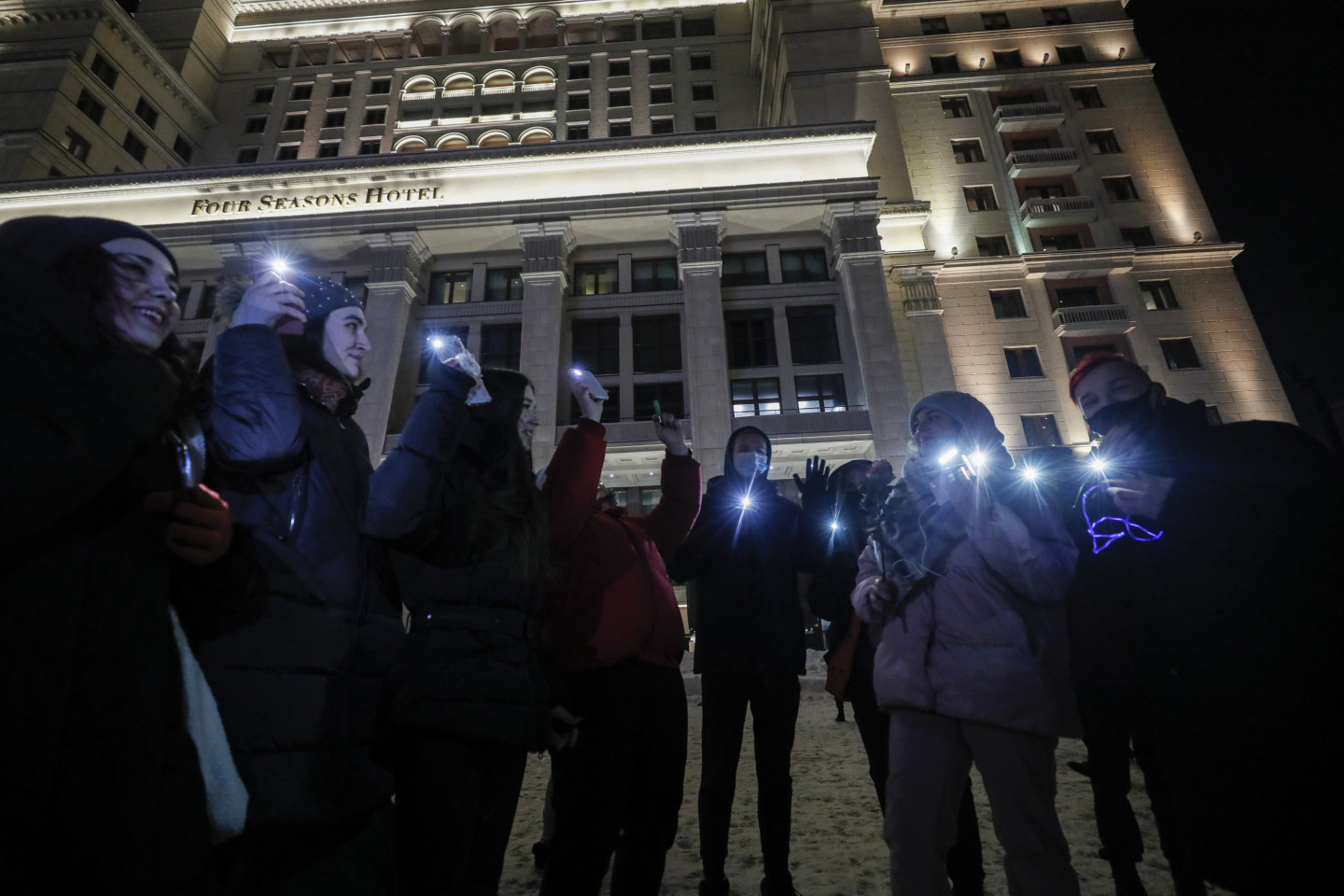 Visā Krievijā tūkstošiem cilvēku svētdienas vakarā devās ārā, lai iedegtu mobilo tālruņu lukturīšus un sveces ieslodzītā opozicionāra Alekseja Navaļnija atbalstam.
