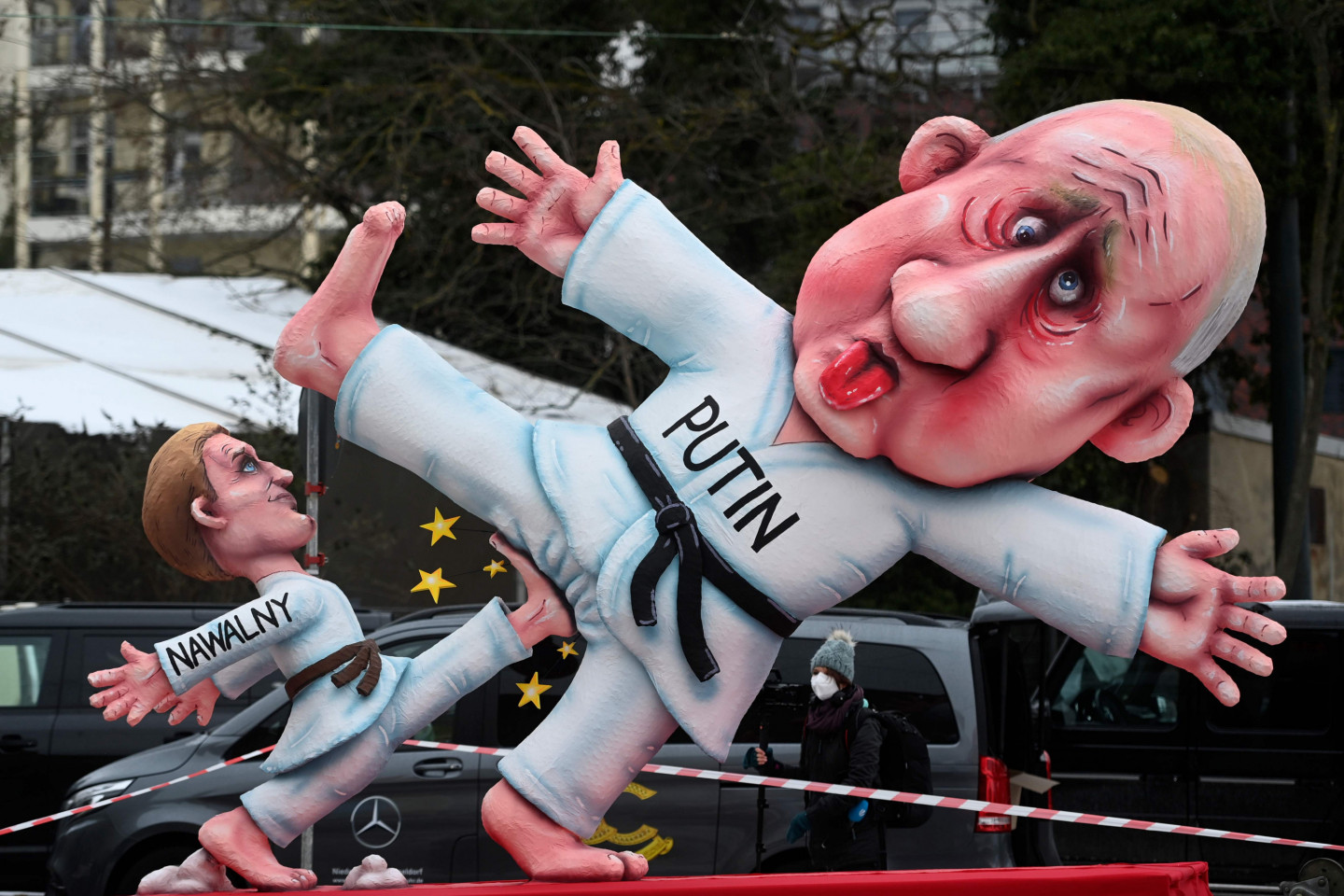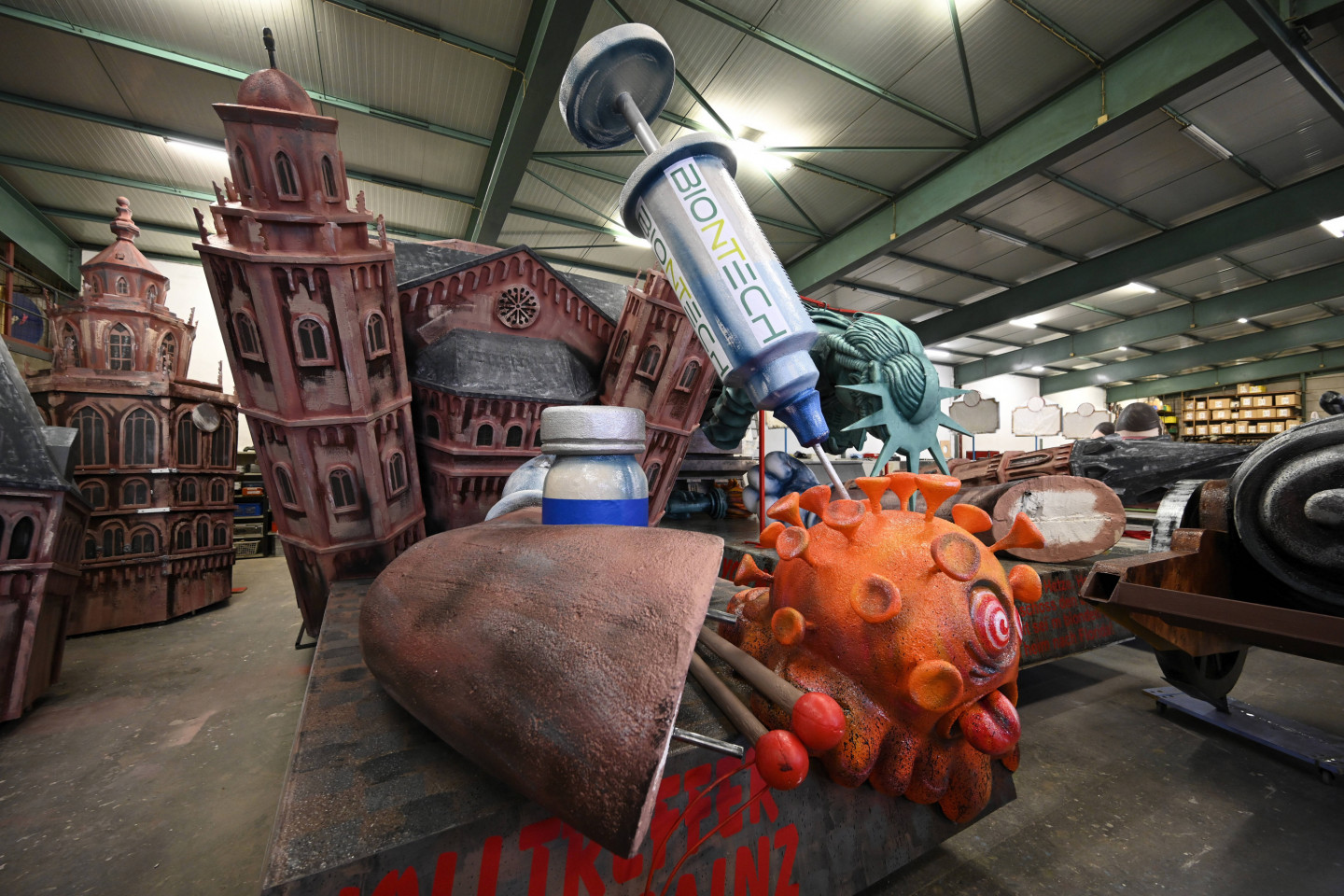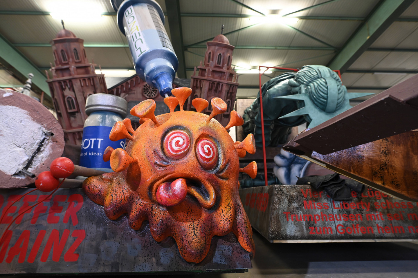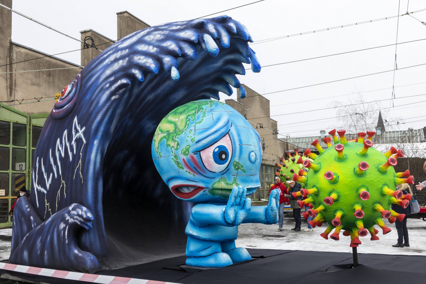 Vācijā, Diseldorfā norisinās ikgadējais karnevāls. Lai Covid-19 pandēmijas laikā droši varētu norisināties pasākums, varas iestādes lēma, ka karnevāls tiks sadalīts astoņās daļās, tādējādi cenšoties ierobežot pulcēšanos. Karnevāla tēma bija pandēmija. Karnevāla laikā skatītājiem bija iespēja vērot dažādus objektus, kas atspoguļo pandēmiju, gan dažadas politiskas ainiņas.