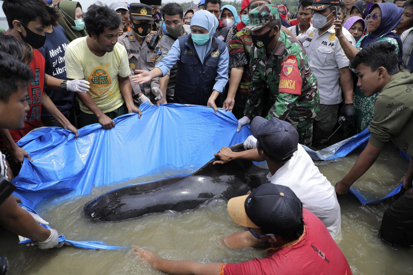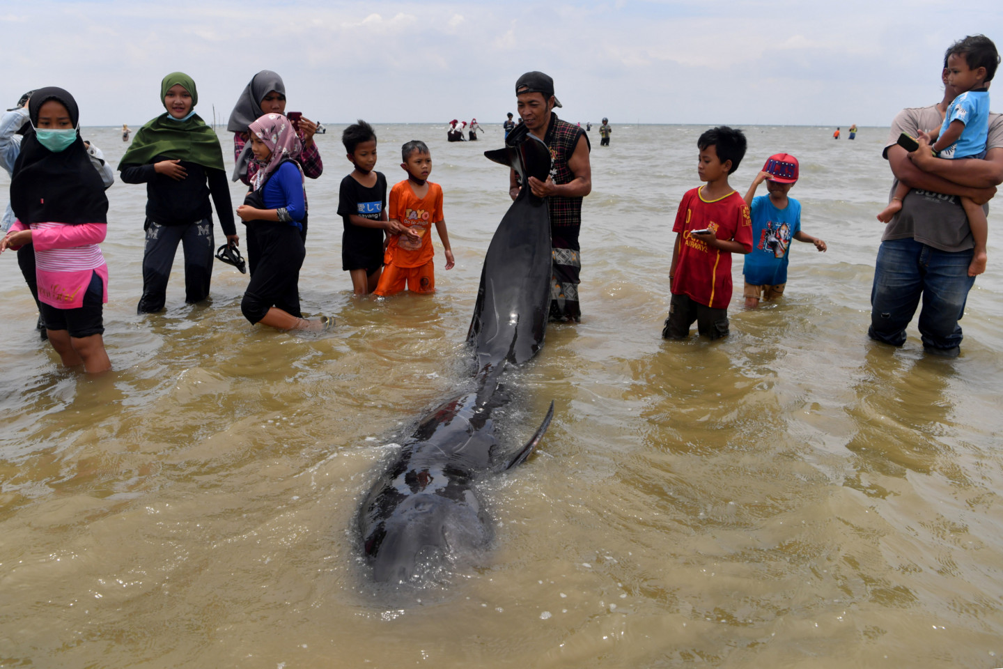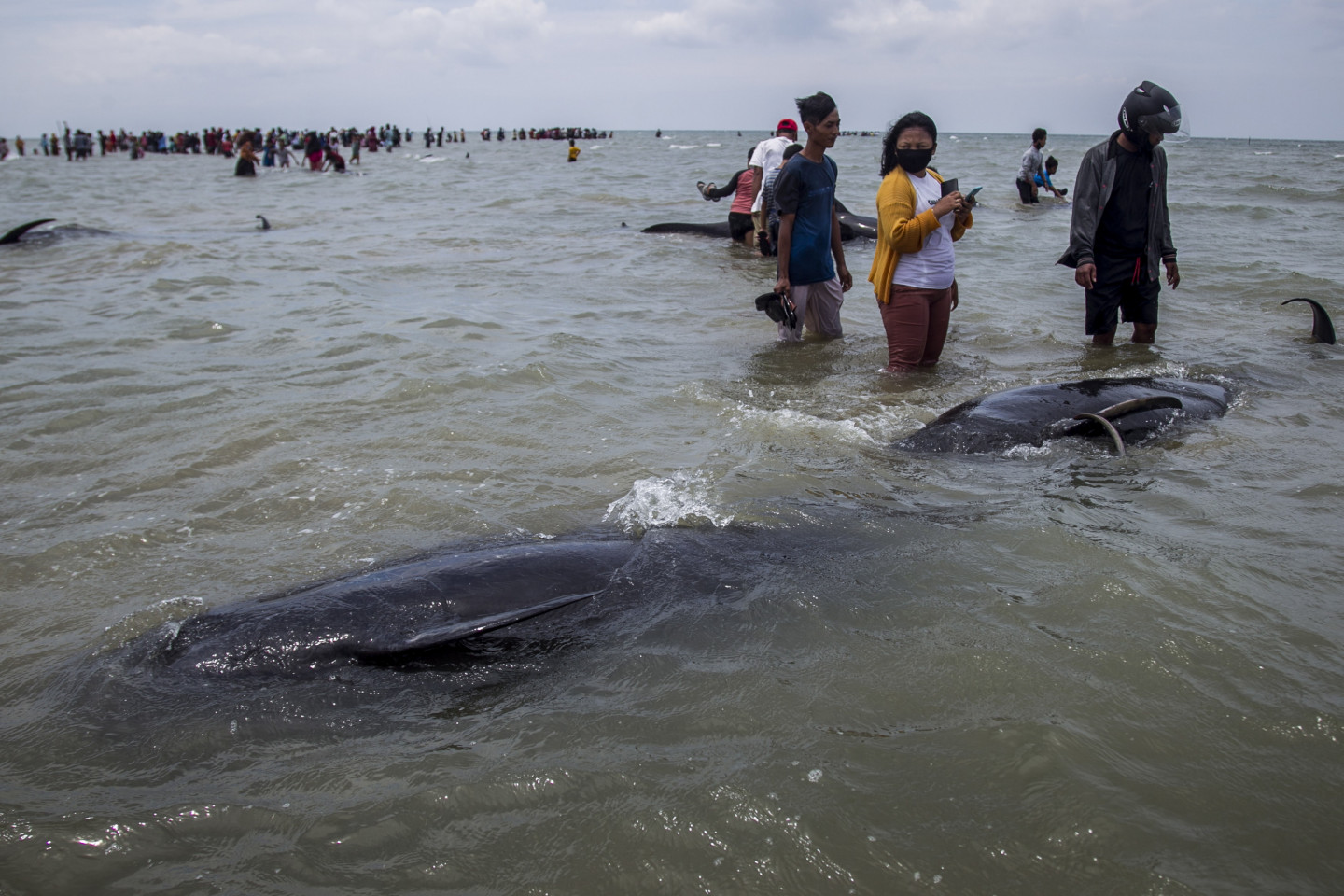 Indonēzijas Maduras salā gājušas bojā vismaz 46 pludmalē izmetušās grindas, piektdien paziņojušas amatpersonas. Kopš ceturtdienas izdzīvojušas tikai dažas grindas, kas palaistas atpakaļ jūrā, paziņoja Austrumjavas gubernatore Khofifaha Indara Paravansa. "Mēs esam centušies tās izglābt kopš ceturtdienas, bet to milzīgais svars apgrūtina to iestumšanu atpakaļ jūrā," sacīja gubernatore. Grindas pieder delfīnu dzimtai. Ziņas par vaļu un delfīnu masveida pašnāvībām, izmetoties krastā, atrodamas visā rakstītās vēstures gaitā, taču šīs parādības iemesli joprojām ir noslēpums, vēsta LETA.