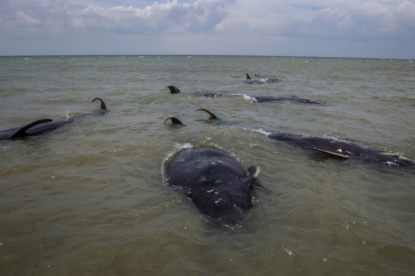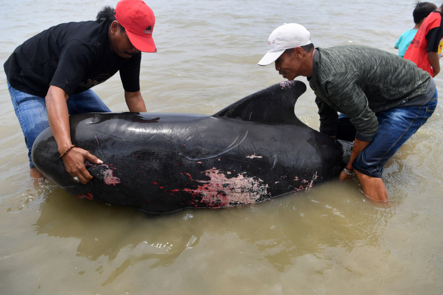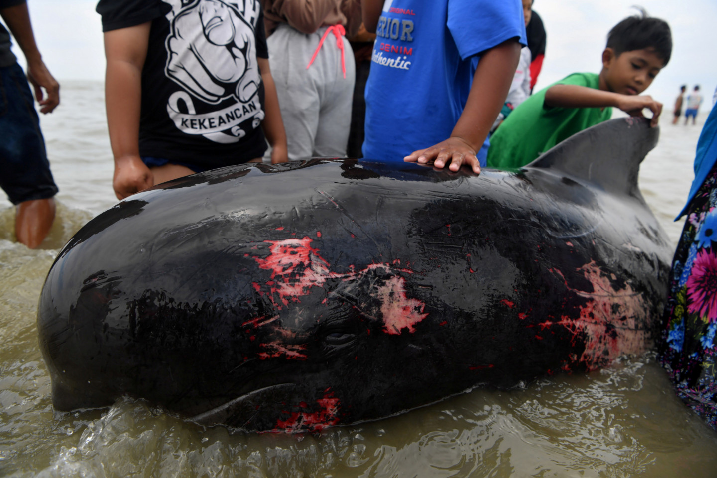Indonēzijas Maduras salā gājušas bojā vismaz 46 pludmalē izmetušās grindas, piektdien paziņojušas amatpersonas. Kopš ceturtdienas izdzīvojušas tikai dažas grindas, kas palaistas atpakaļ jūrā, paziņoja Austrumjavas gubernatore Khofifaha Indara Paravansa. "Mēs esam centušies tās izglābt kopš ceturtdienas, bet to milzīgais svars apgrūtina to iestumšanu atpakaļ jūrā," sacīja gubernatore. Grindas pieder delfīnu dzimtai. Ziņas par vaļu un delfīnu masveida pašnāvībām, izmetoties krastā, atrodamas visā rakstītās vēstures gaitā, taču šīs parādības iemesli joprojām ir noslēpums, vēsta LETA.