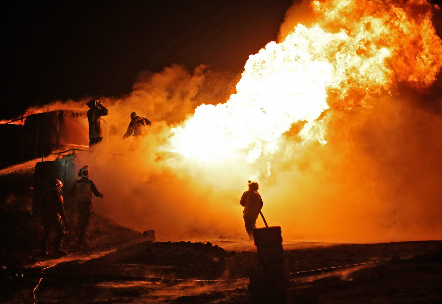 Sīrijas ziemeļos piektdienas vakarā ar raķetēm tika apšaudītas naftas pārstrādes rūpnīcas, nogalinot vismaz četrus cilvēkus un vairākus ievainojot, paziņoja Lielbritānijā bāzētā nevalstiskā organizācija "Syrian Observatory for Human Rights" (SOHR). Trīs raķetes tika palaistas no Krievijas karakuģiem, kas noenkurojušies pie Sīrijas piekrastes, un tās trāpīja tirgum un naftas pārstrādes rūpnīcām pie Hamaranas rajona Džarābulusas pilsētas apkaimē Alepo provinces ziemeļaustrumos. Vairākas raķetes palaida Sīrijas valdības spēki uz naftas pārstrādes rūpnīcām Tarhīnā, uz austrumiem no Alepo, izraisot milzu ugunsgrēkus šajā rajonā. SOHR paziņoja, ka šajos raķešu triecienos ievainoti 24 cilvēki. Raķetes tika izšautas uz rajoniem, kurus kontrolē Turcijas bruņotie spēki un Turcijas atbalstīti kaujinieki. Turcija ir Sīrijas opozīcijas kaujinieku svarīga sabiedrotā, savukārt Krievija un Irāna atbalsta Sīrijas prezidentu Bašaru al Asadu. Avots: LETA