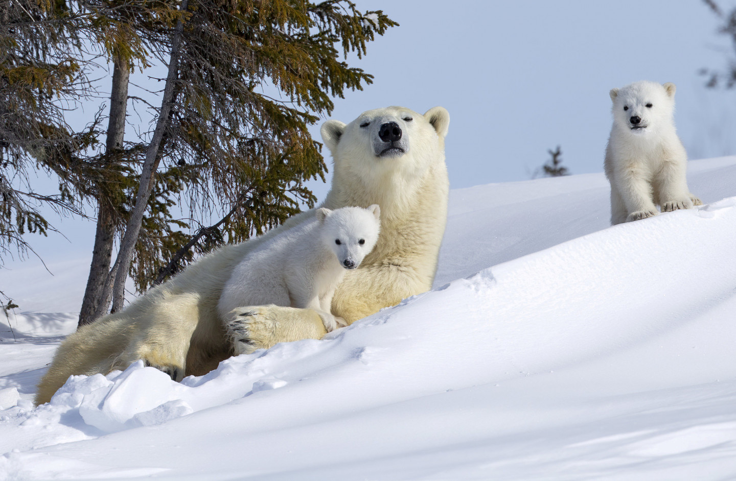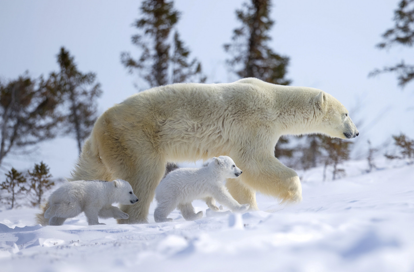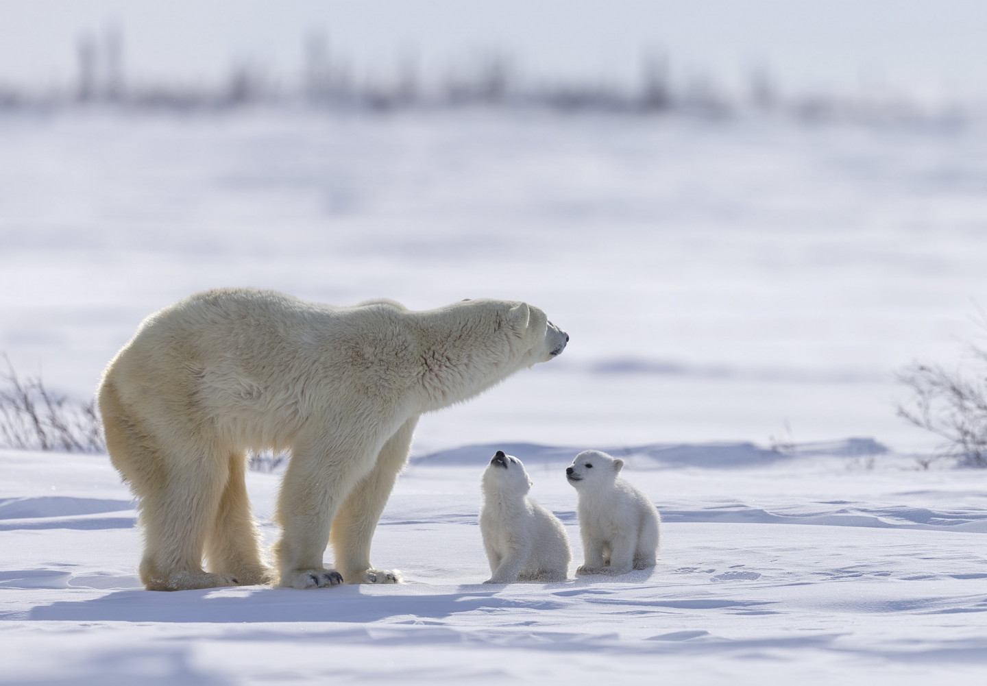 Polārlāču mazuļi kopā ar mammu pirmo reizi devušies ārpus savas migas. Fotogrāfs iemūžināja, kā lāči zinātkāri priecājās par apkārt valdošo sniegu. Mazie lācēni spēlējās sniegā, kamē viņu mamma laiski gulēja un atpūtās. Mazie lācēni ir vien pāris mēnešu veci. Viņi nav lielāki par Jorkšīras terjeriem. Lācēni pēc sešu mēnešu ilgas uzturēšanās savā migā, pirmo reizi spēra soļus ārpus tās.
