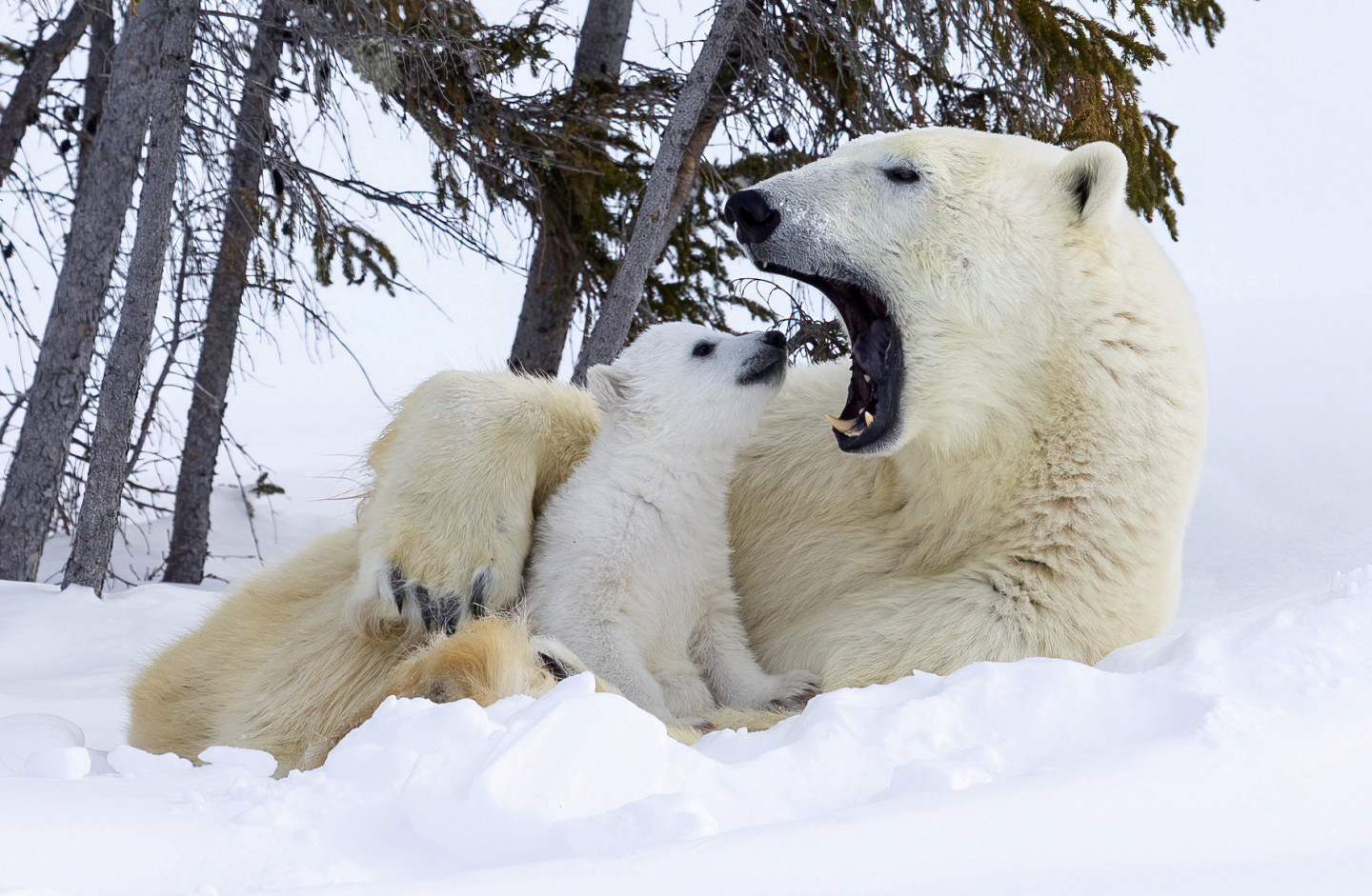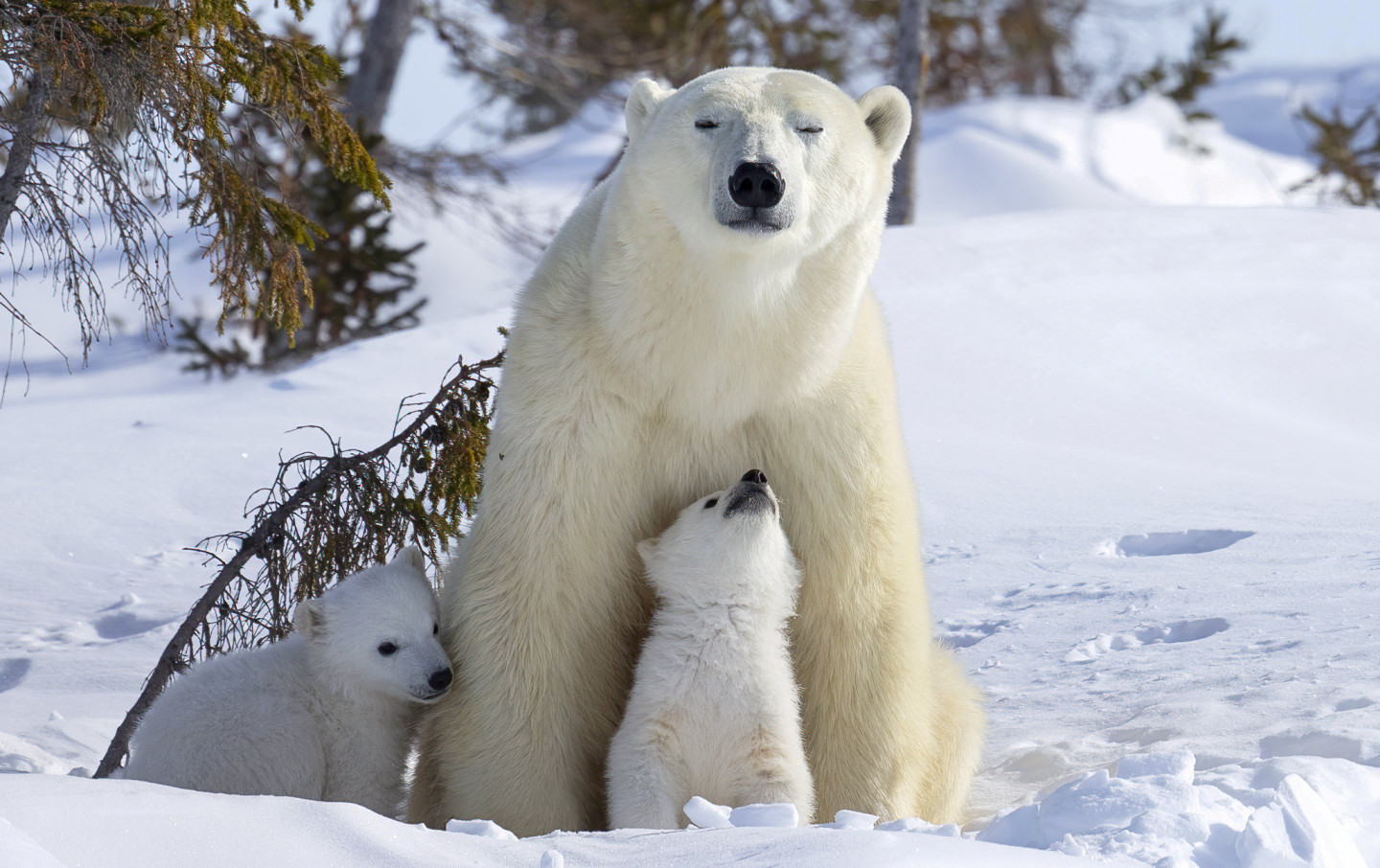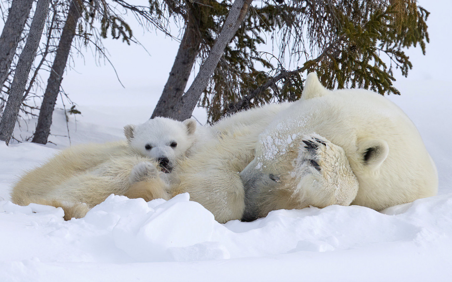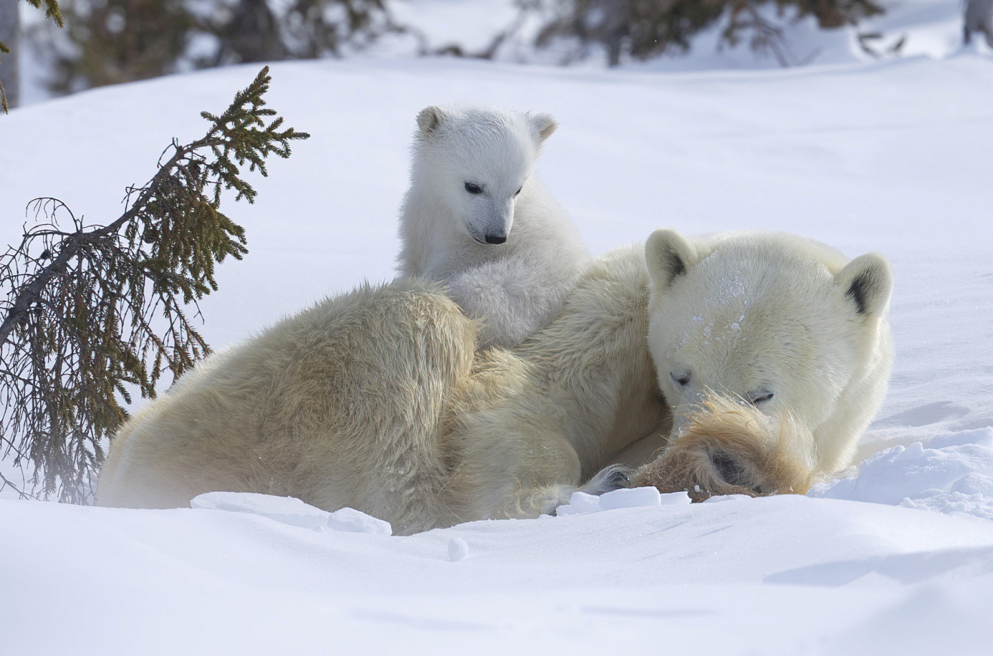 Polārlāču mazuļi kopā ar mammu pirmo reizi devušies ārpus savas migas. Fotogrāfs iemūžināja, kā lāči zinātkāri priecājās par apkārt valdošo sniegu. Mazie lācēni spēlējās sniegā, kamē viņu mamma laiski gulēja un atpūtās. Mazie lācēni ir vien pāris mēnešu veci. Viņi nav lielāki par Jorkšīras terjeriem. Lācēni pēc sešu mēnešu ilgas uzturēšanās savā migā, pirmo reizi spēra soļus ārpus tās.