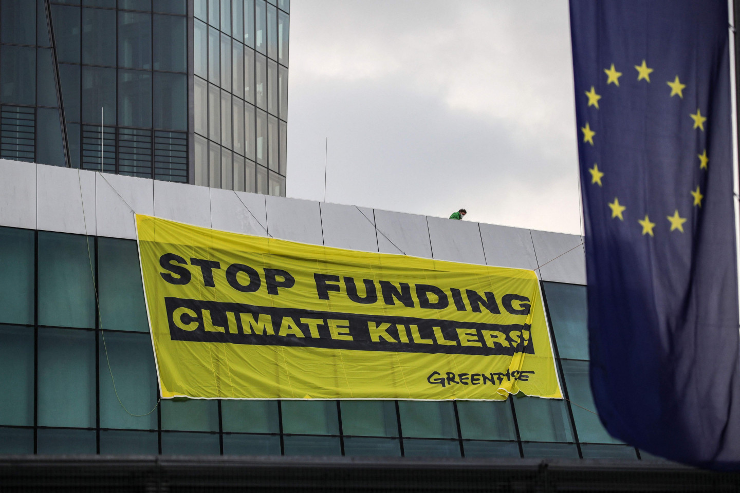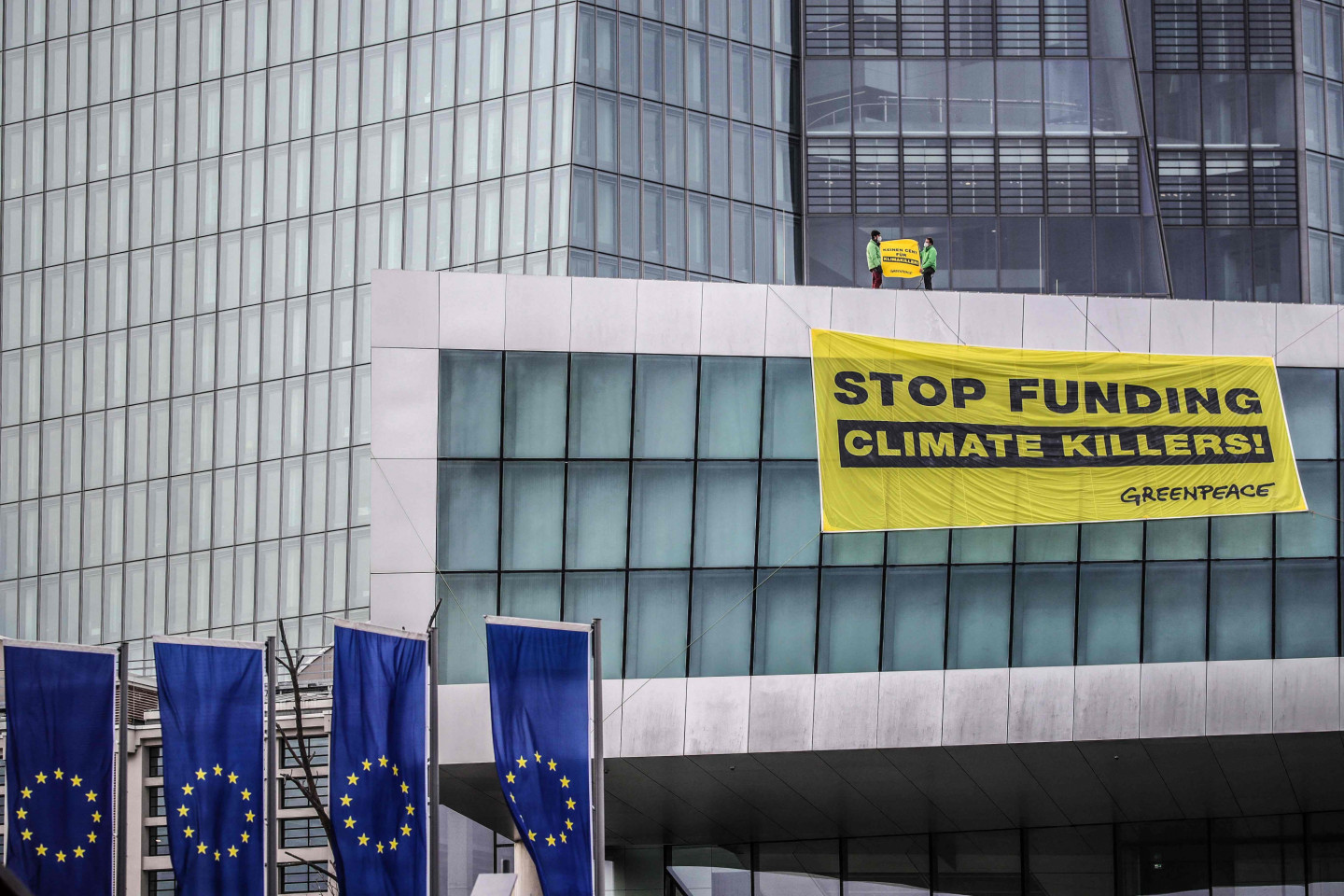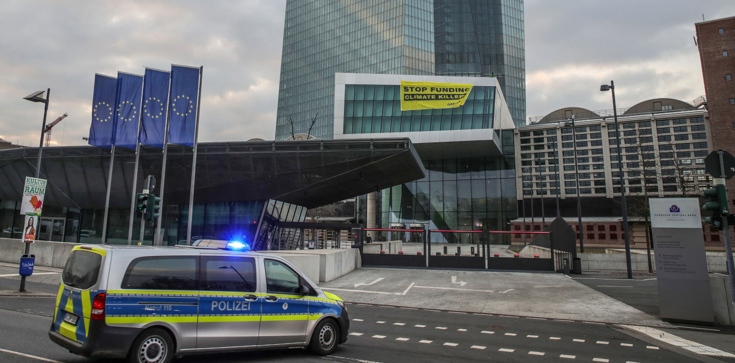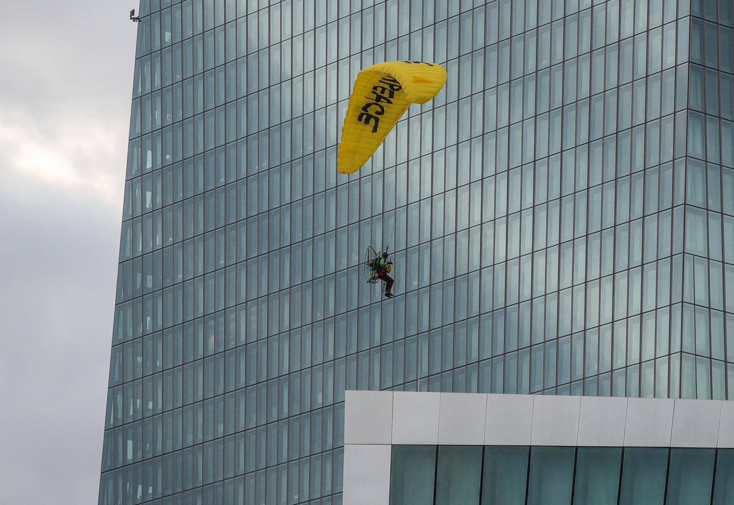 Vides aizstāvju organizācijas "Greenpeace" aktīvisti, izmantojot motorizētu paraplanieri, trešdien nolaidušies uz Eiropas Centrālās bankas (ECB) ēkas jumta, lai tādējādi protestētu pret ECB monetāro politiku, kas, viņuprāt, dod priekšroku nozarēm, kuras stipri piesārņo vidi. Pēc nosēšanās uz ECB galvenās mītnes pieņemšanas ēkas jumta aktīvisti atritināja 12 metru garu plakātu, uz kura lasāms: "Apturiet klimata slepkavu finansēšanu". Otrs paraplanieris, kas riņķoja ap ēku, vilka plakātu, uz kura bija aicinājums "rīkoties klimata glābšanai nekavējoties". "Greenpeace" norāda, ka saskaņā ar nesen veiktu pētījumu ECB augstākus riska reitingus piešķir tādiem uzņēmumiem kā "Shell", "Total", "Eni", OMV un "Repsol", kuri ražo lielu daudzumu tā dēvēto siltumnīcefekta gāzu izmešu. Tikmēr videi draudzīgāku nozaru uzņēmumu novērtējums, ko sniedz ECB, daudz lielākā mērā atšķiras no to tirgus vērtības. Vides aizstāvji ECB apsūdz "sistemātiskā klimata aizsardzības graušanā". ECB, reaģējot uz šo akciju, izsaukusi policiju. "Klimata pārmaiņas ir viena no lielākajām problēmām, ar kurām cilvēcei jāsastopas šajā gadsimtā," paziņojusi banka. "ECB kā centrālā banka savu pilnvaru robežās sniedz savu ieguldījumu [problēmas] novēršanā, rīkojoties kopsolī ar tiem, kas atbildīgi par klimata politiku." ECB norādījusi, ka tā "veic savas stratēģijas pārskatīšanu, kas ietver padziļinātu analīzi, lai konstatētu, kā reaģēt uz klimata krīzi visās ECB politikas jomās". Banka gada sākumā jau paziņojusi, ka veido īpašu nodaļu, kurai jākoordinē pasākumi klimata pārmaiņu ierobežošanai visās bankas darbības jomās. Avots: LETA
