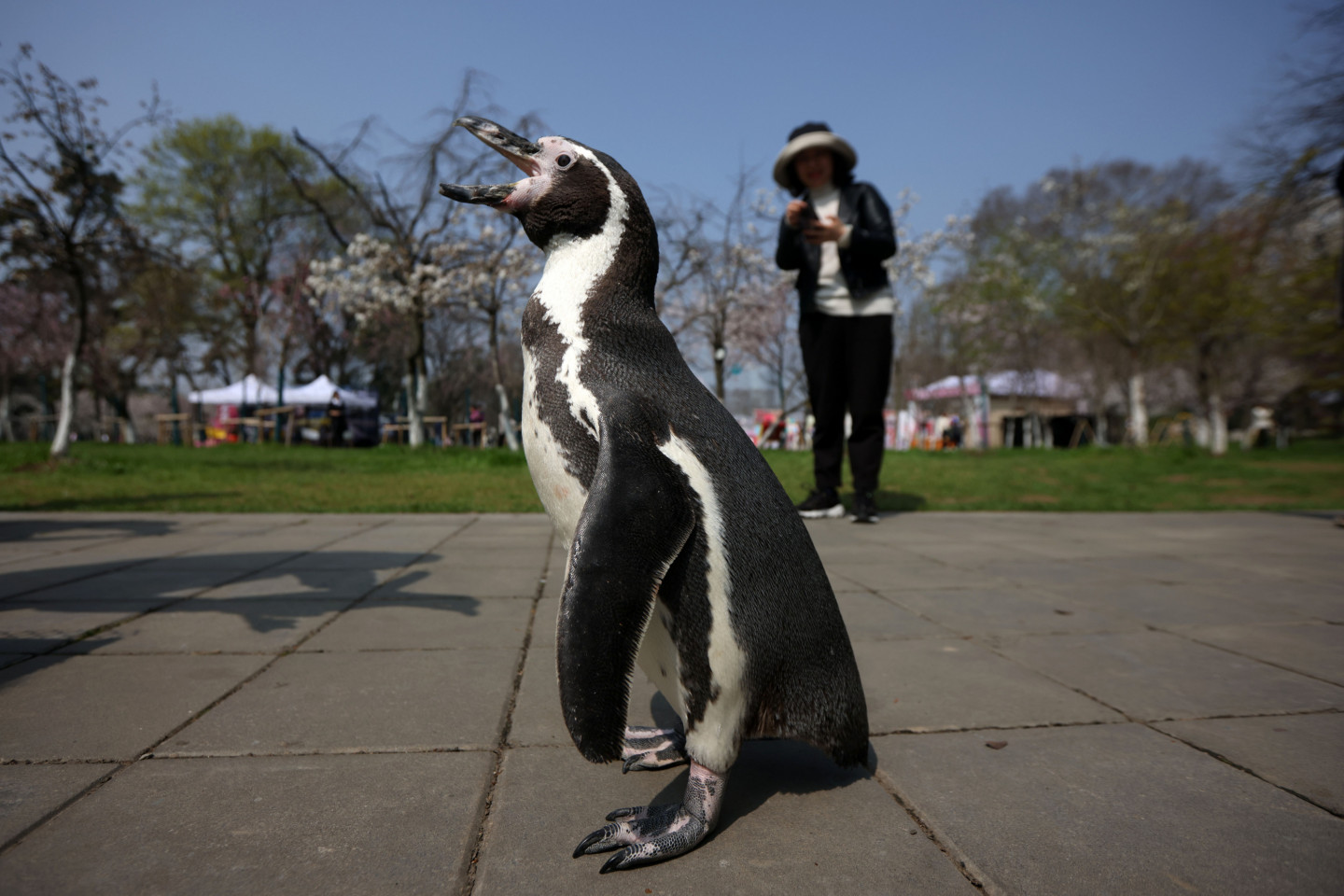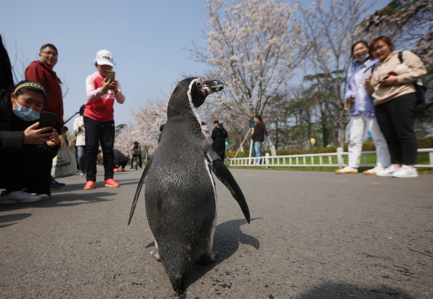 Ķīnā Naņdzjina pilsētā uzplaukuši skaisties ķiršu koku ziedi. Plaukstošos kokus dodas aplūkot cilvēki no tuvākām un tālākām vietām. Tomēr ķiršu ziedi piesaista ne tikai cilvēku uzmanību. Divi pingvīni, līdzīgi kā cilvēki, devušies pastaigā pa pilsētas parku, aplūkojot krāšņos ziedus.