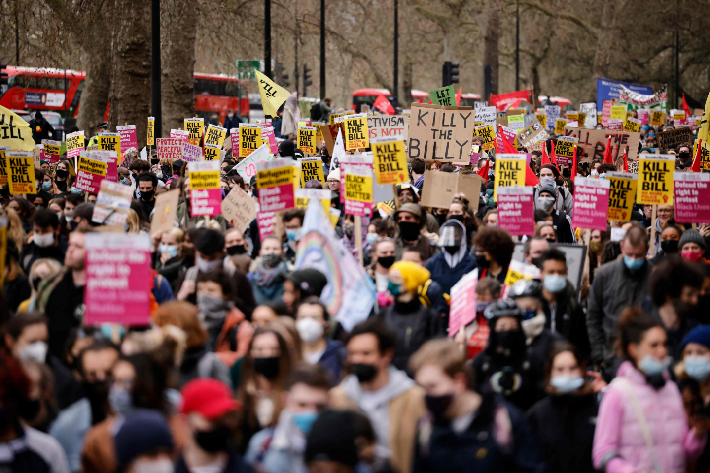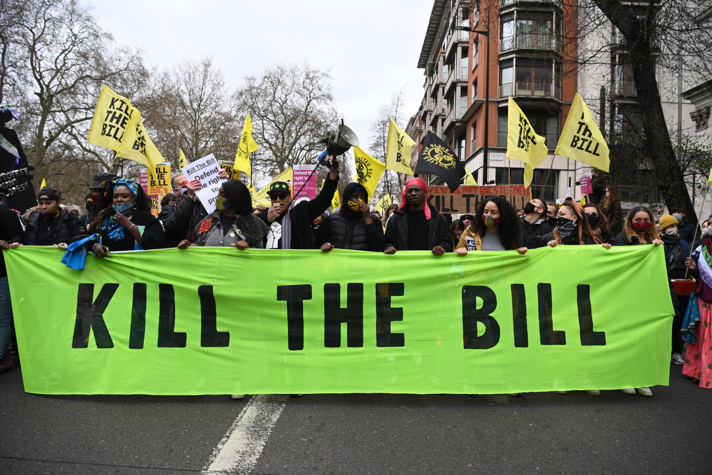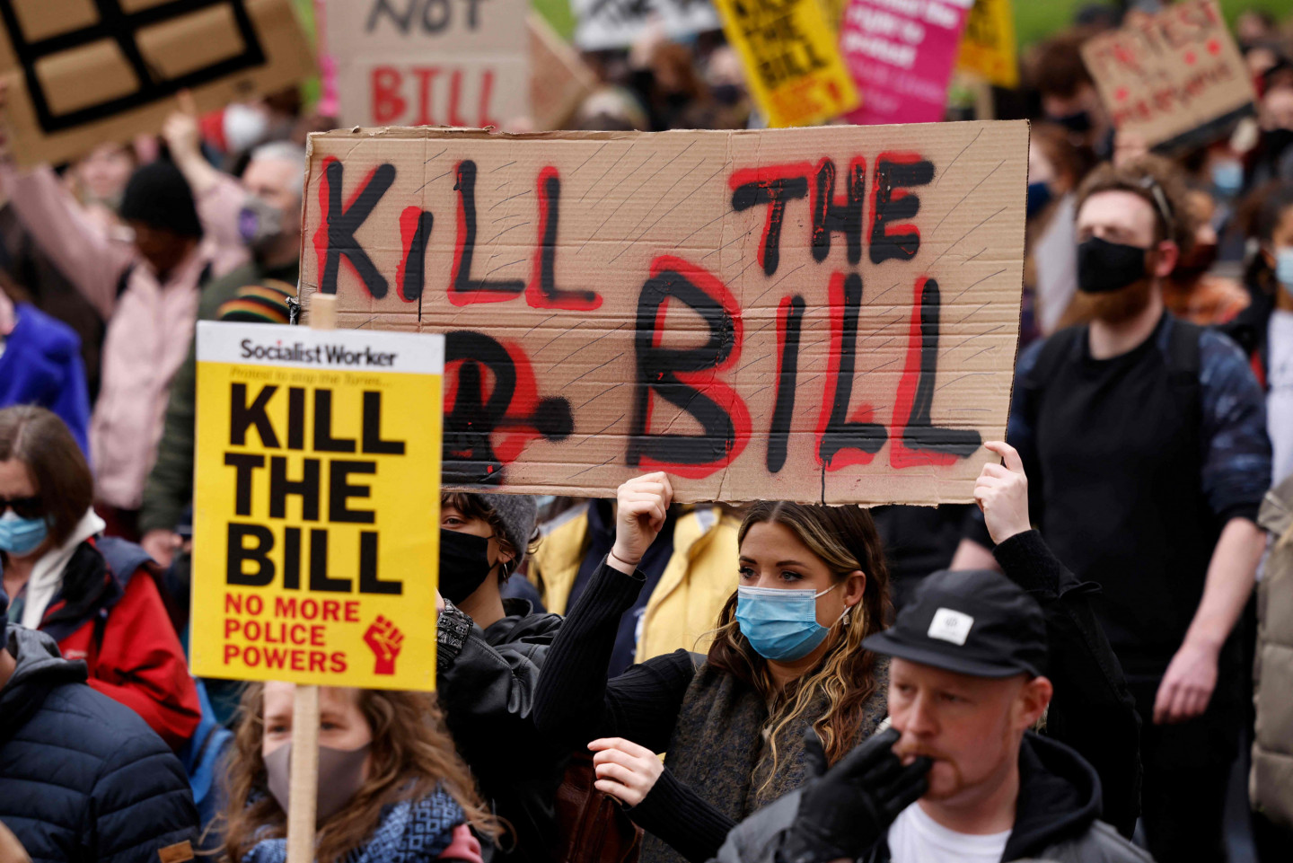Sestdien, 3. aprīlī, visā Anglijā un arī Velsā notiek protesta akcijas "Kill the bill". Plašās demonstrācijas noris kopumā 25 pilsētās, vēsta medijs The Guardian. Protestētāji sestdien iestājās pret valdības izstrādāto likumprojektu, kas, pēc kritiķu domām, ierobežos tiesības rīkot demonstrācijas. Policijas, noziedzības, sodu un tiesas likumprojekts, kas pagājušajā mēnesī parlamentā izturēja otro lasījumu, grozīs spēkā esošos sabiedriskās kārtības tiesību aktus, lai policijai būtu vieglāk aizliegt vai slēgt mierīgus protestus, ja tos uzskata par pārāk traucējošiem. Likumprojekta pretinieki to nodēvējuši par uzbrukumu protestēt un soli uz autoritārismu. Londonas policija ir brīdinājusi cilvēkus nepievienoties mītiņiem.