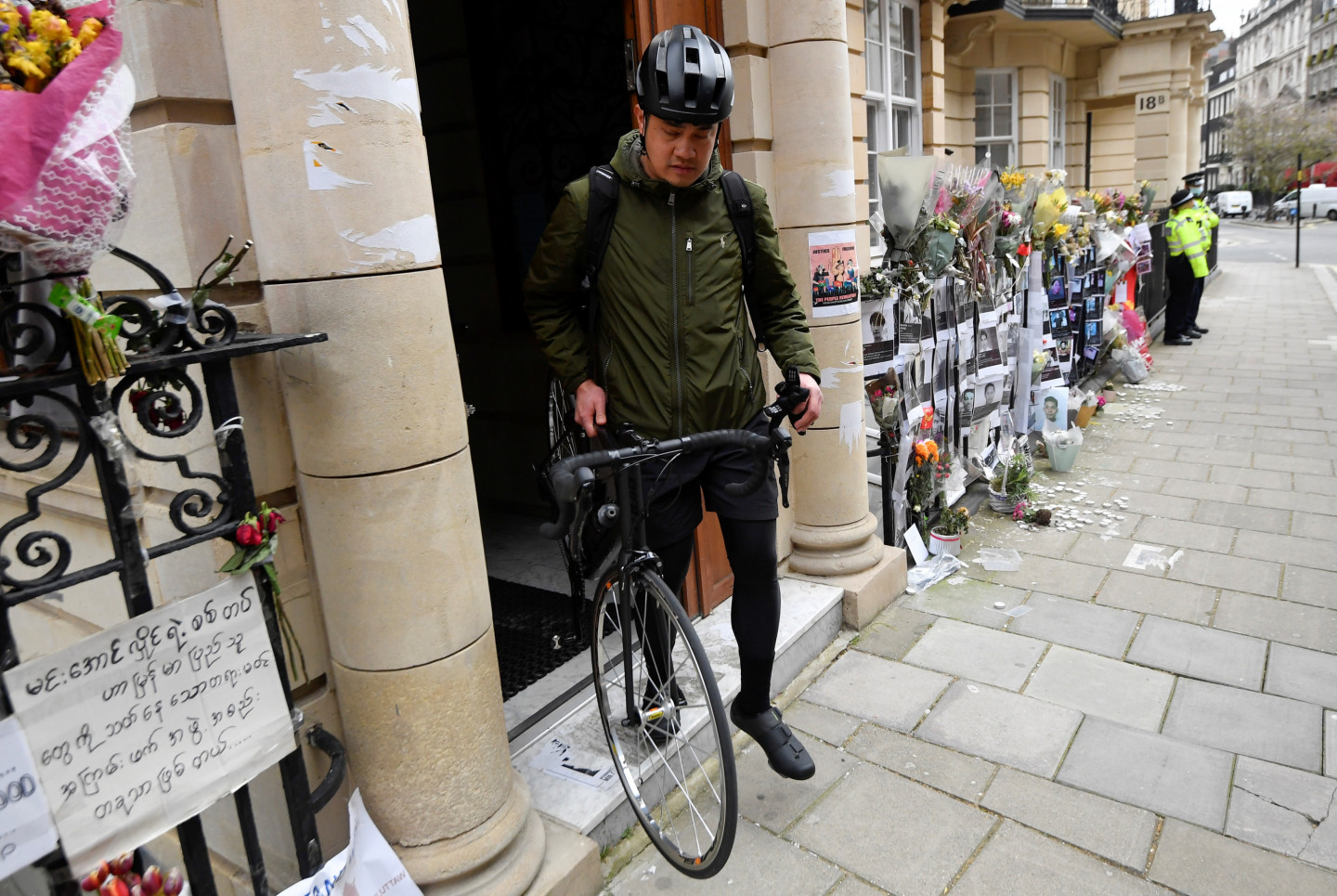 Mjanmas huntai lojālie diplomāti pārņēmuši kontroli pār Mjanmas vēstniecību Londonā, liedzot misijas ēkā iekļūt vēstniekam Kjavam Zvaram Minnam, kas pieprasījis pučā gāztās valdības vadītājas Aunas Sanas Su Či atbrīvošanu. Kontroli pār vēstniecību, īstenojot "puča paveidu", sagrābis militārais atašejs, trešdien sacīja vēstnieks. Hunta pagājušajā mēnesī atsauca Kjavu Zvaru Minnu pēc tam, kad viņš pučistus bija aicinājis atbrīvot Aunu Sanu Su Či un prezidentu Vinu Mjintu. Kad vēstnieks pametis diplomātisko misiju, tajā iekļuvuši huntas atbalstītāji. "Viņi ir saņēmuši instrukcijas no galvaspilsētas, tāpēc viņi man neļaus iekļūt ēkā," laikrakstam "Daily Telegraph" sacīja diplomāts, aicinot Lielbritānijas valdību iejaukties. Vaicāts, kas pārņēmis kontroli pār vēstniecību, diplomāts sacīja: "Aizsardzības atašejs. Viņi okupē manu vēstniecību." Lielbritānija ceturtdien apstiprināja, ka vairs nevar atzīt Kjavu Zvaru Minnu par Mjanmas vēstnieku, jo Mjanmas hunta iesniegusi oficiālu paziņojumu. Lielbritānijas valdībai atbilstoši diplomātiskajai politikai bija jāpiekāpjas huntas lēmumam vēstnieka jautājumā, apliecināja vairāki avoti. Lielbritānijas ārlietu ministrs Dominiks Rābs iepriekš tviterī pauda atbalstu līdzšinējam vēstniekam. "Mēs nosodām iebiedēšanas soļus, ko Mjanmas militārais režīms vakar īstenoja Londonā, un es apliecinu cieņu Kjavam Zvaram Minnam par viņa drosmi," norādīja ministrs. "Apvienotā Karaliste turpina aicināt, lai tiktu izbeigts apvērsums un šausminošā vardarbība, un ātri atjaunota demokrātija." Kopš militārā hunta februāra sākumā sagrāba varu Mjanmā, karavīri un policisti, apspiežot protestus, nogalinājuši simtiem cilvēku. Atbilstoši Politieslodzīto atbalsta apvienības aplēsēm nogalināti vismaz 598 civilisti un teju 2900 apcietināti. Tikai trešdien vien nogalināti 12 cilvēki. Avots: LETA