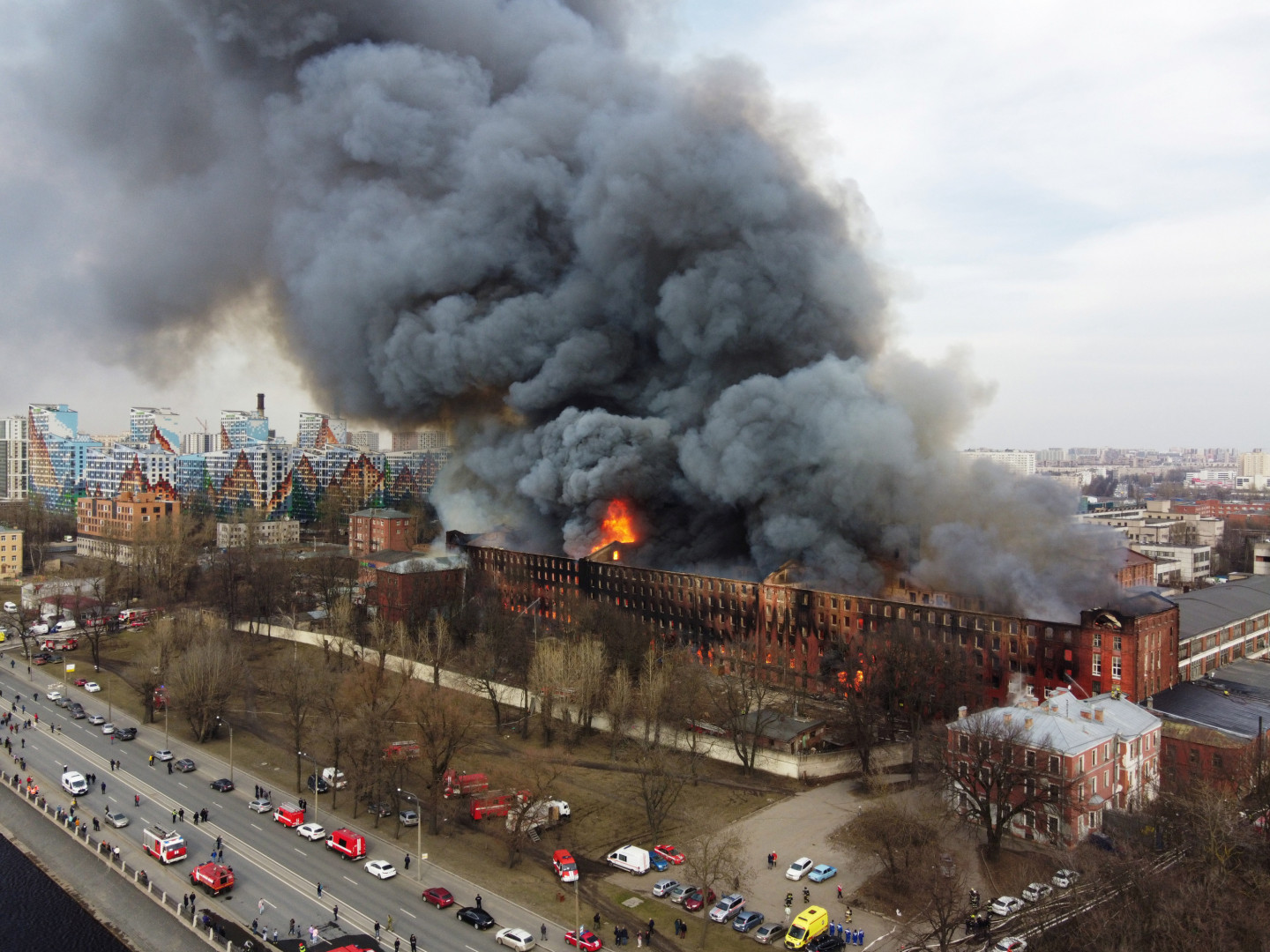 Krievijas pilsētā Sanktpēterburgā pirmdien vēsturiskas fabrikas ēkā izcēlās plašs ugunsgrēks, kurā gājis bojā viens cilvēks un cietuši vēl pieci, pavēstīja Ārkārtas situāciju ministrija. Četri no cietušajiem tika hospitalizēti, teikts ministrijas paziņojumā. Divi no viņiem bija smagā stāvokli, bet divo guvuši vieglus ievainojumus. Vēl vienam cietušajam tika sniegta ambulatorā palīdzība. Fabrikas "Ņevskaja Manufaktura" ēkā, kas atrodas līdzās Ņevas upei Oktobra krastmalā, liesmas pārņēmušas vairākus stāvus. 40 cilvēki tika evakuēti. Dzēšot ugunsgrēku, ir cietuši trīs ugunsdzēsēji, no kuriem divi guvuši smagas traumas, bet viens - vieglas, paziņoja Ārkārtas situāciju ministrija. Bojāgājušais cilvēks vēl nav atpazīts. Ugunsgrēka dzēšana ilgusi vairāk nekā 11 stundas, bet ugunsgrēks tagad ir lokalizēts. Ugunsgrēka laikā uguns pārsviedās arī uz kaimiņos esošā hosteļa "Meribeļ" jumtu. Hosteļa iemītnieki tika evakuēti, un viņiem ir sagādātas pagaidu mītnes. Milzīgā fabrika dibināta 1841.gadā kā auduma manufaktūra. Padomju varas gados fabrika tika nacionalizēta un darbojās kā valsts uzņēmums, bet 1992.gadā tā tika privatizēta. Pēdējo gadu laikā daļā ēkas turpinājās auduma ražošana, daļa tika izīrēta birojiem, bet daļa pamesta novārtā.