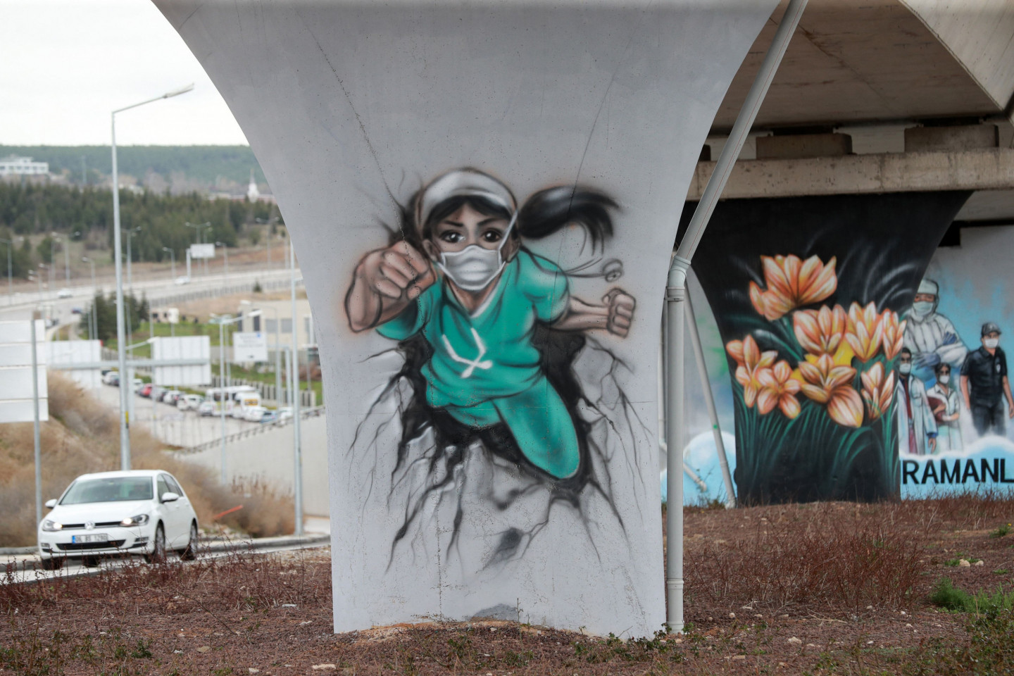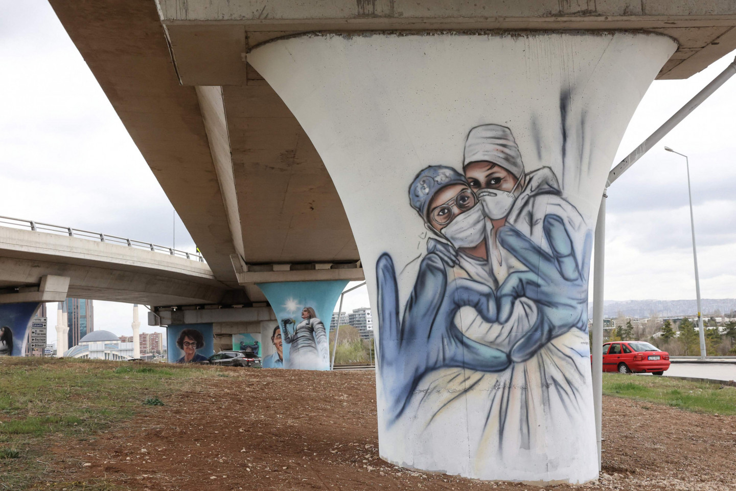 Turcijā, Ankaras pilsētas pašvaldība, lai godinātu veselības aprūpes darbinieku neizsīkstošo spēku Covid-19 pandēmijas laikā, izlēmusi mediķu darbu pieminēt ar grafiti izveidošanu. Ar grafiti palīdzību tiek godināti Ankaras pilsētas reģionālās slimnīcas darbinieki. Grafiti tika izveidoti 19. aprīlī un tajos ir redzami ne tikai medicīnas darbinieki, mediķi, bet arī turku izcelsmes vācieši Ozlemams Tureci un Ungurs Sahinams. Viņi darbojajas "BioNTech" firmā, kurā tika izstrādāta vakcīna pret Covid-19.