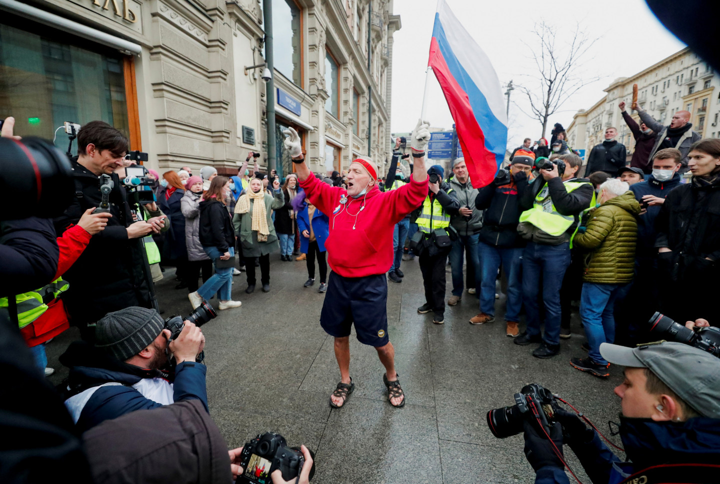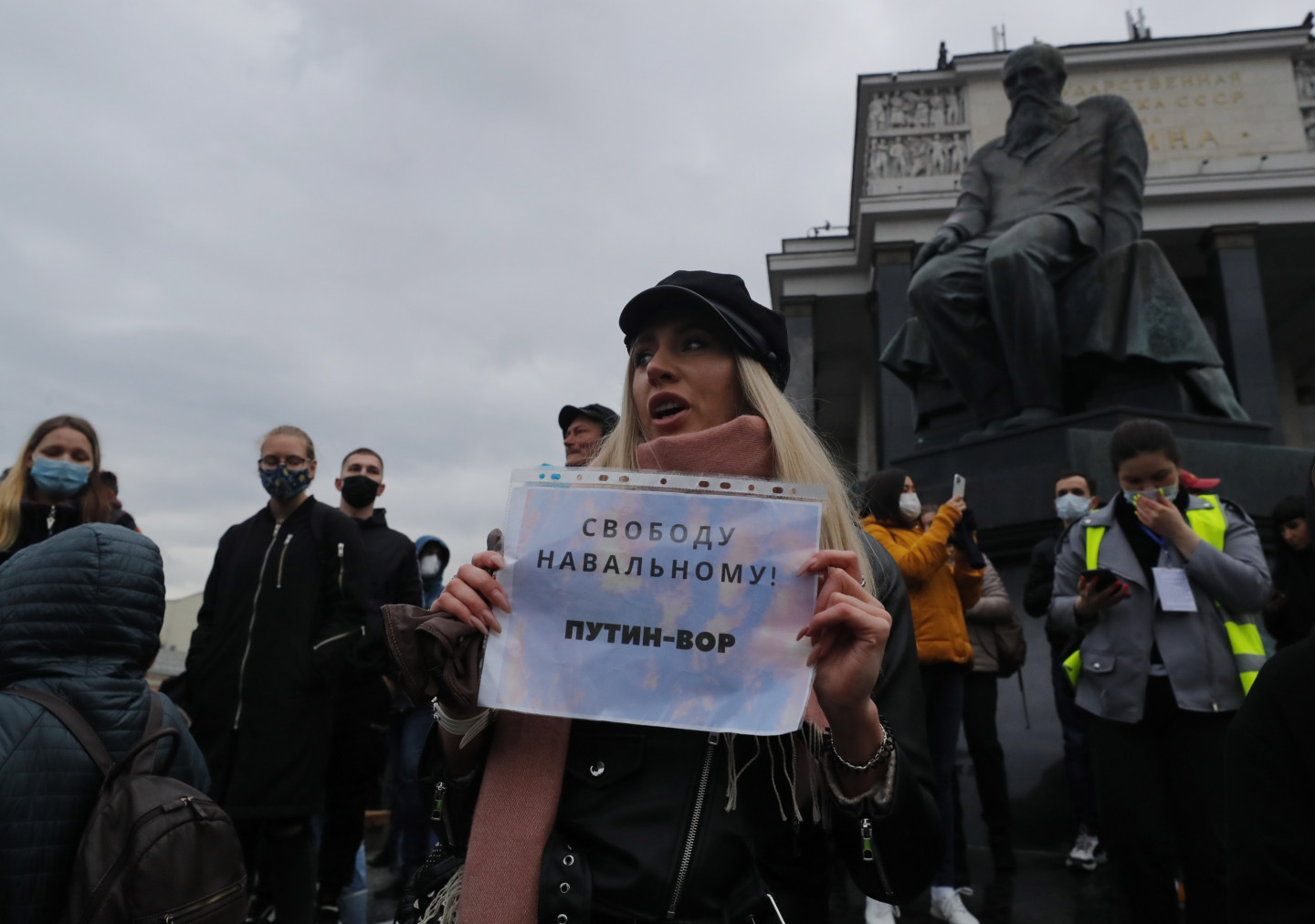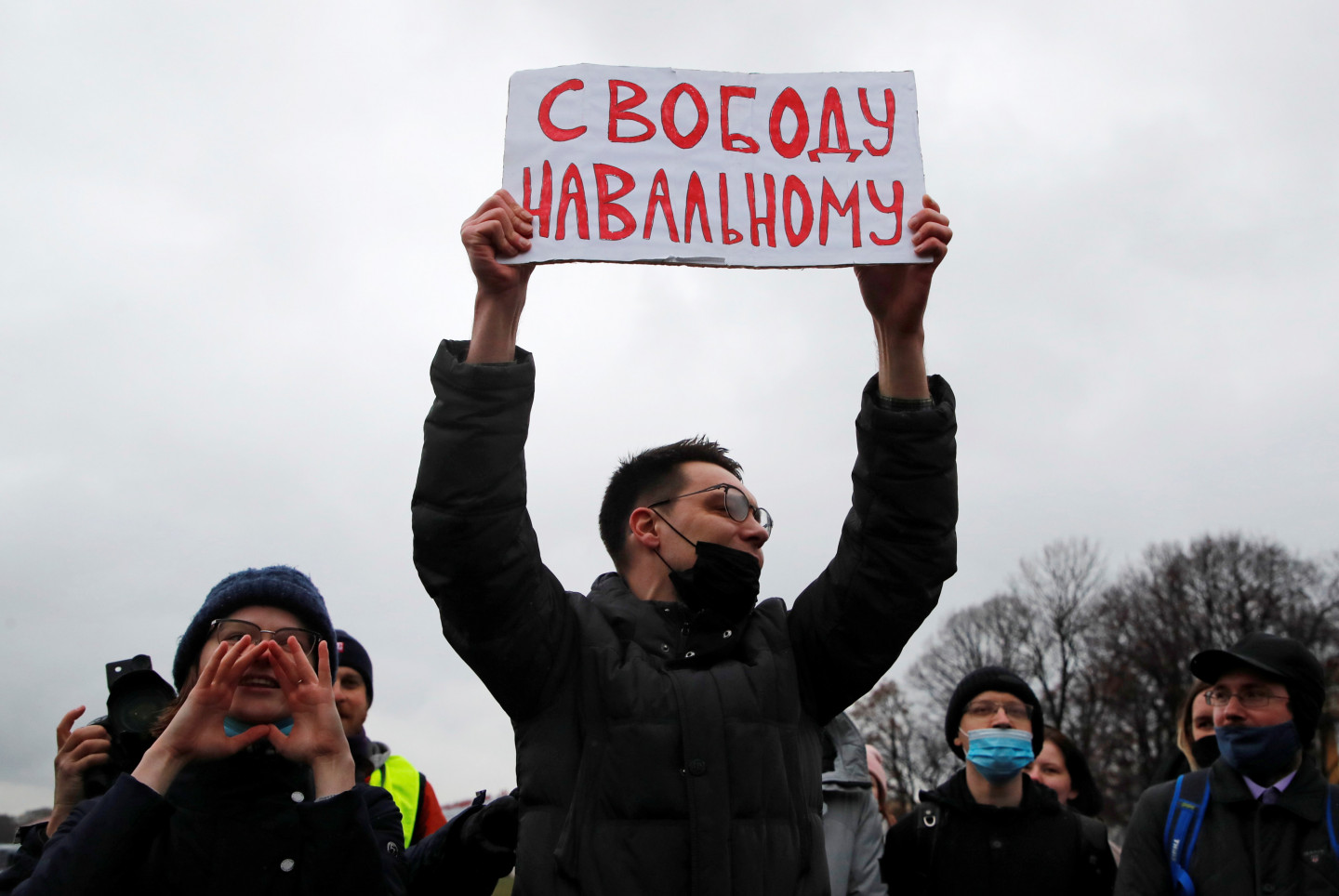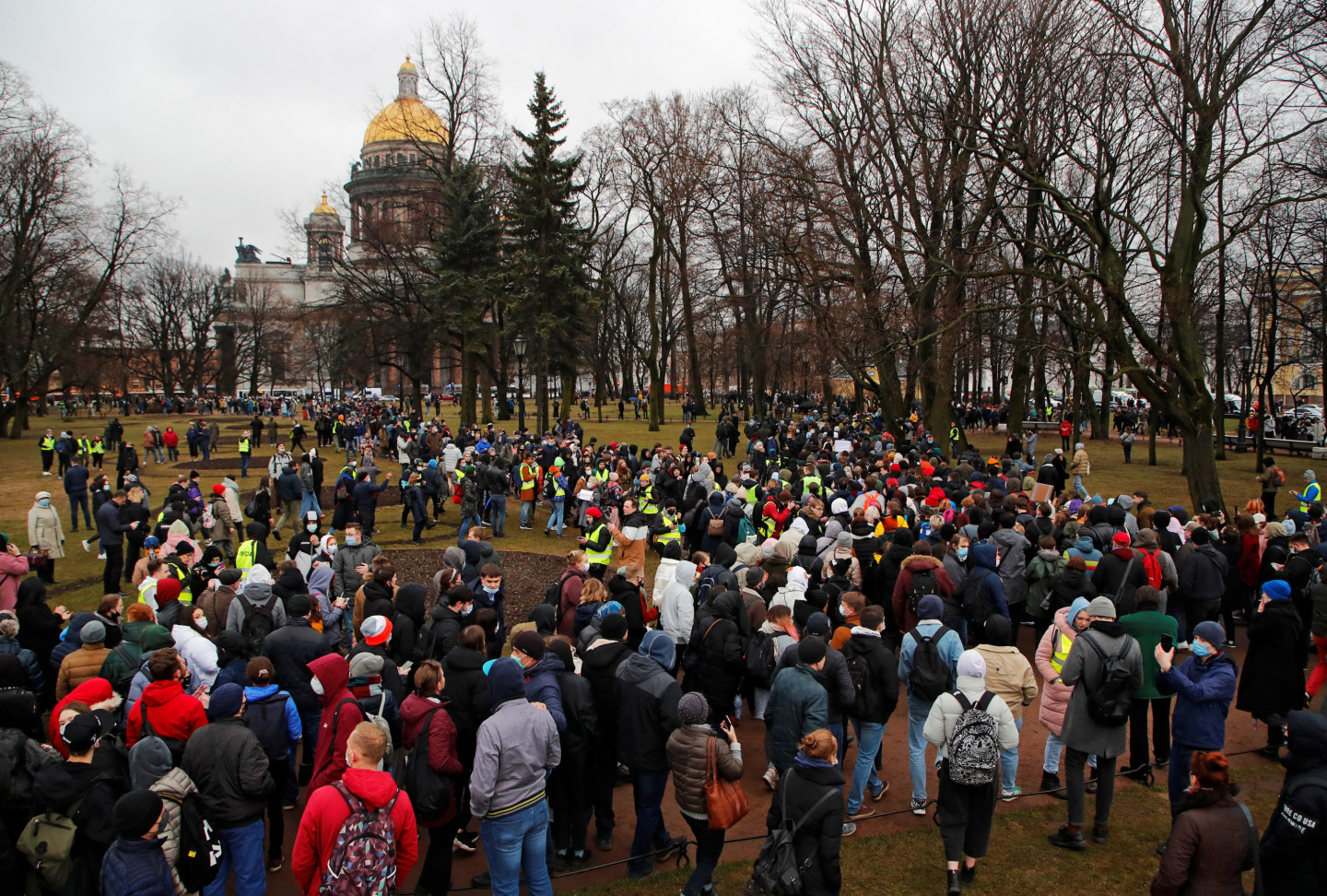 Krievijā policija trešdien aizturēja cilvēkus opozicionāra Alekseja Navaļnija atbalsta mītiņos vairākos desmitos valsts pilsētu. Nevalstiskā organizācija "OVD-Info" vēstīja, ka policija veikusi kratīšanas un aizturējusi aktīvistus 82 pilsētās, kopējais aizturēto skaits ir vismaz 1004 cilvēki. Sanktpēterburgā aizturēti vairāk nekā 350 cilvēku, Maskavā - 20, Sočos - 50, un Kazaņā - 40, ziņoja "OVD-Info". Policija brīdinājusi, ka nesaskaņotās protesta akcijas ir nelikumīgas. Maskavā un Sanktpēterburgā drošībnieki ar nožogojumiem un tehniku noslēguši pilsētu centrus. Maskavā tūkstošiem cilvēku virzās pa centram tuvākajām ielām, policija viņus pa skaļruņiem brīdina, ka akcija nav saskaņota un aicina cilvēkus doties prom. Maskavā protestētājiem pievienojusies Navaļnija māte Ļudmila un brālis Oļegs, kā arī sieva Jūlija. Arī Sanktpēterburgā tūkstošiem cilvēku virzās pa centra ielām, nespējot nokļūt drošībnieku noslēgtajā centrā vai Ņevas bulvārī. "OVD-Info" ziņo, ka Sanktpēterburgā policisti masveidā pret protestētājiem pielieto elektrošokerus. Vēl pirms mītiņu sākuma policija veica kratīšanu Navaļnija organizācijas birojos Sanktpēterburgā, bet Maskavā aizturēta viņa līdzgaitniece Ļubova Soboļa un preses sekretāre Kira Jarmiša, ziņo Navaļnija atbalstītāji. Jarmišai piespriests desmit diennakšu administratīvais arests par aicinājumiem internetā uz mītiņu, lai gan viņa jau divarpus mēnešus atrodas mājas arestā, iziet no mājām viņa var vienu stundu diennaktī un viņai nav piekļuves internetam. Maskavā aizturēts opozīcijas politiķis Vladimirs Rižkovs, kuram sastādīts protokols par nesankcionētas akcijas organizēšanu, par ko draud desmit diennakšu arests. Navaļnija atbalstītāji trešdien rīko masu protestus pēc prezidenta Vladimira Putina uzstāšanās ar ikgadējo runu par stāvokli valstī. Protesti bija plānoti vairāk nekā 100 Krievijas pilsētās un tie izsludināti plkst.19 pēc vietējā laika. Navaļnija atbalsta demonstrācijās janvārī un februārī tika aizturēti vairāk nekā 10 000 cilvēku. Mītiņi beigušies Tālo Austrumu un Sibīrijas pilsētās, kuros pulcējās no dažiem desmitiem līdz vairākiem simtiem cilvēku.