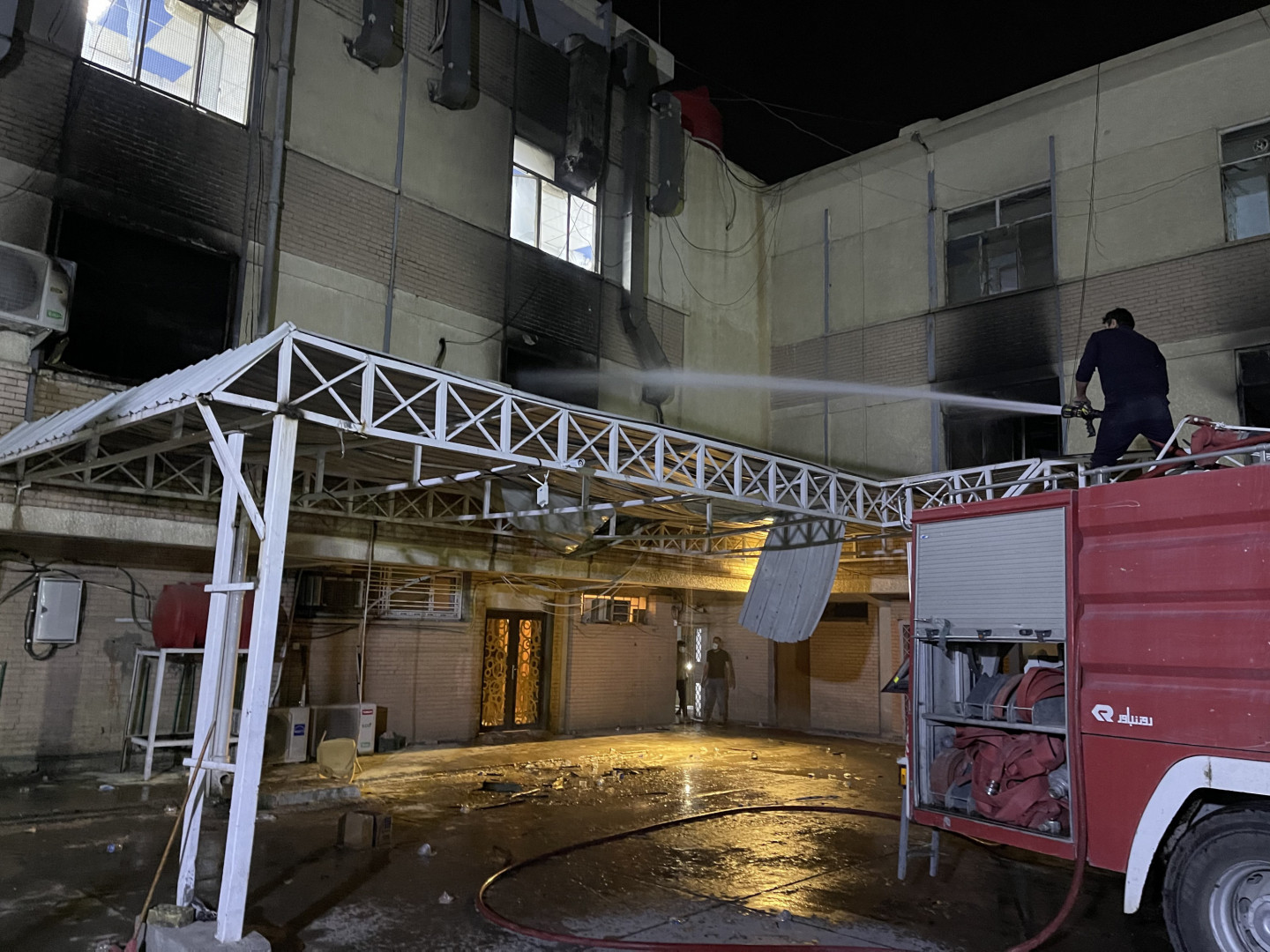 Svētdien ugunsgrēkā Bagdādes Covid-19 pacientu intensīvās aprūpes nodaļā gājuši bojā vismaz 82 cilvēki, paziņojusi Irākas Iekšlietu ministrija. "Iekšlietu ministrija paziņo, ka 82 cilvēku nāvi un 110 ievainotajiem ugunsgrēkā Ibn al Hatiba slimnīcā," teikts ministrijas paziņojumā, kuru izplatījuši valsts mediji. Ministrija izslēdz noziedzīgu motīvu ugunsnelaimē. Ugunsgrēks sācies pēc balona sprādziena skābekļa glabātuvē, ziņo avoti. Kā pavēstīja civilās aizsardzības dienests, ugunsgrēks ātri izplatījies, jo slimnīcai nav uguns aizsardzības sistēmas un iekārtie griesti ļāva liesmām ātri apņemt viegli izliesmojošus produktus. Nakts vidū, kad pie 30 pacientu gultām intensīvās aprūpes nodaļā atradās desmitiem radinieku, liesmas izplatījās pa vairākiem Ibn al Hatiba slimnīcas stāviem, kas Bagdādē rezervēta vissmagākajiem Covid-19 gadījumiem. Civilās aizsardzības dienests pavēstīja, ka izglābis 90 no 120 pacientiem un viņu radiniekiem, bet nespēja sniegt precīzu bojāgājušo un ievainoto skaitu. Ugunsgrēks izraisījis sašutumu Irākas sociālajos medijos un premjers aicinājis veikt izmeklēšanu par ugunsgrēku. Premjers arī atlaidis slimnīcas vadošās amatpersonas.