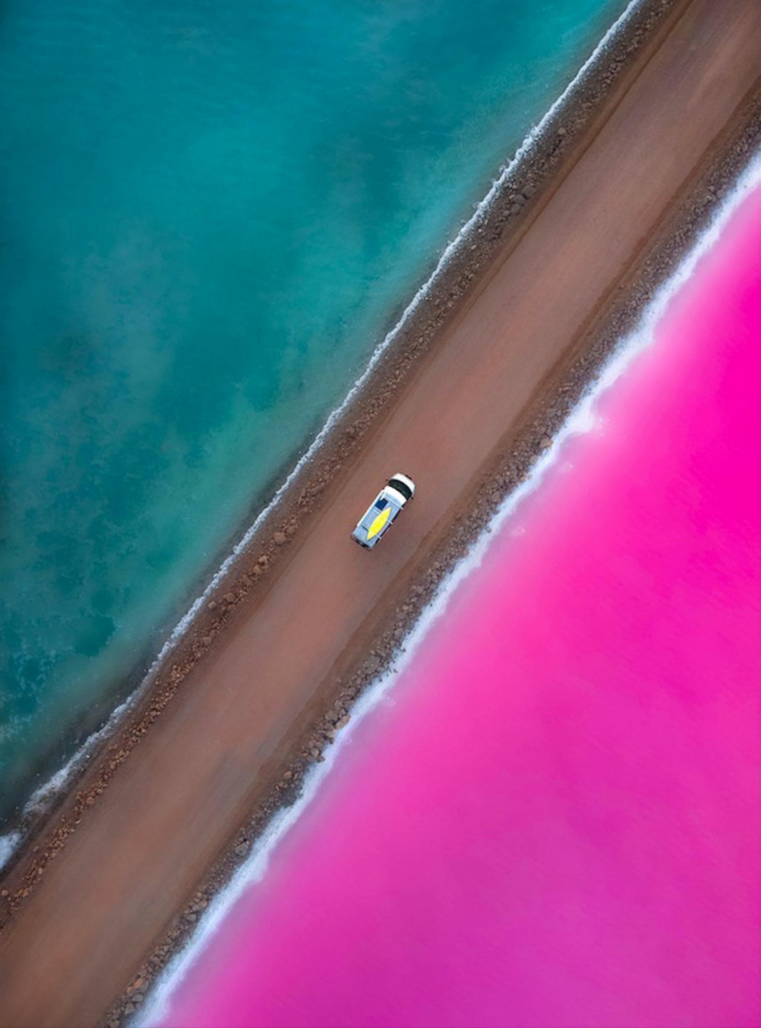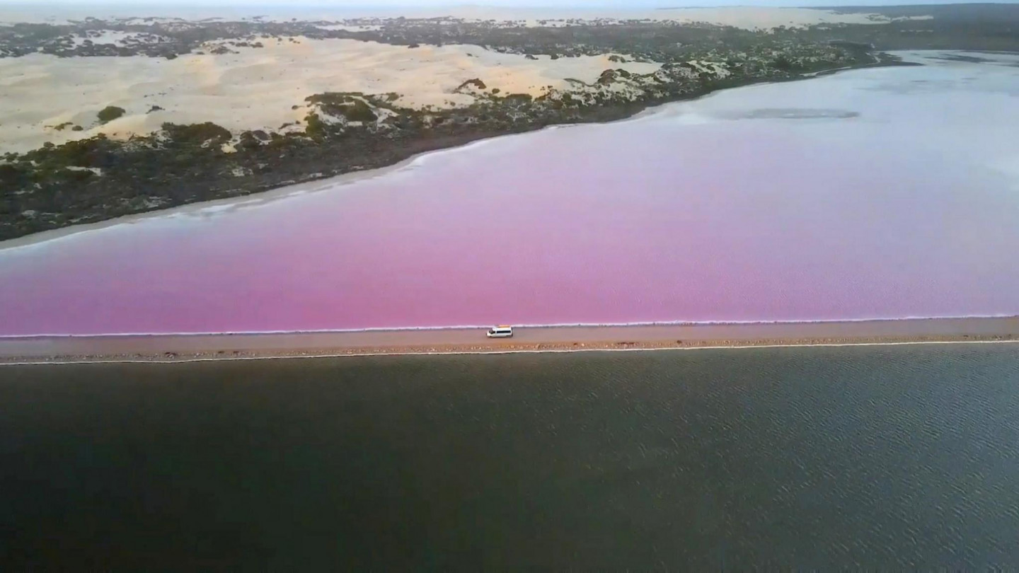 Austrālijas dienvidos atrodas Makdonela ezers, kurš iekrāsojies rozā krāsā. Kā izrādās, tas ir pavisam dabiski! Augstā sāls koncentrācija apvienojumā ar īpaša veida aļģēm un baktērijām, rada ūdenim maģiski rozā nokrāsu.