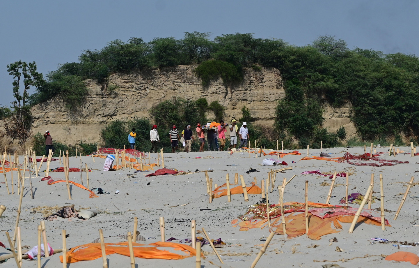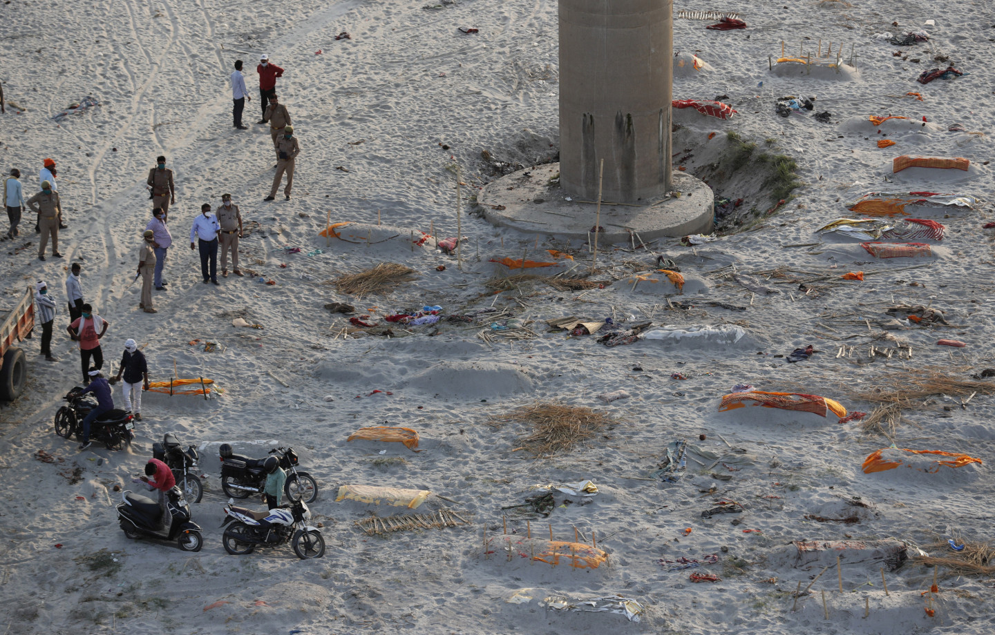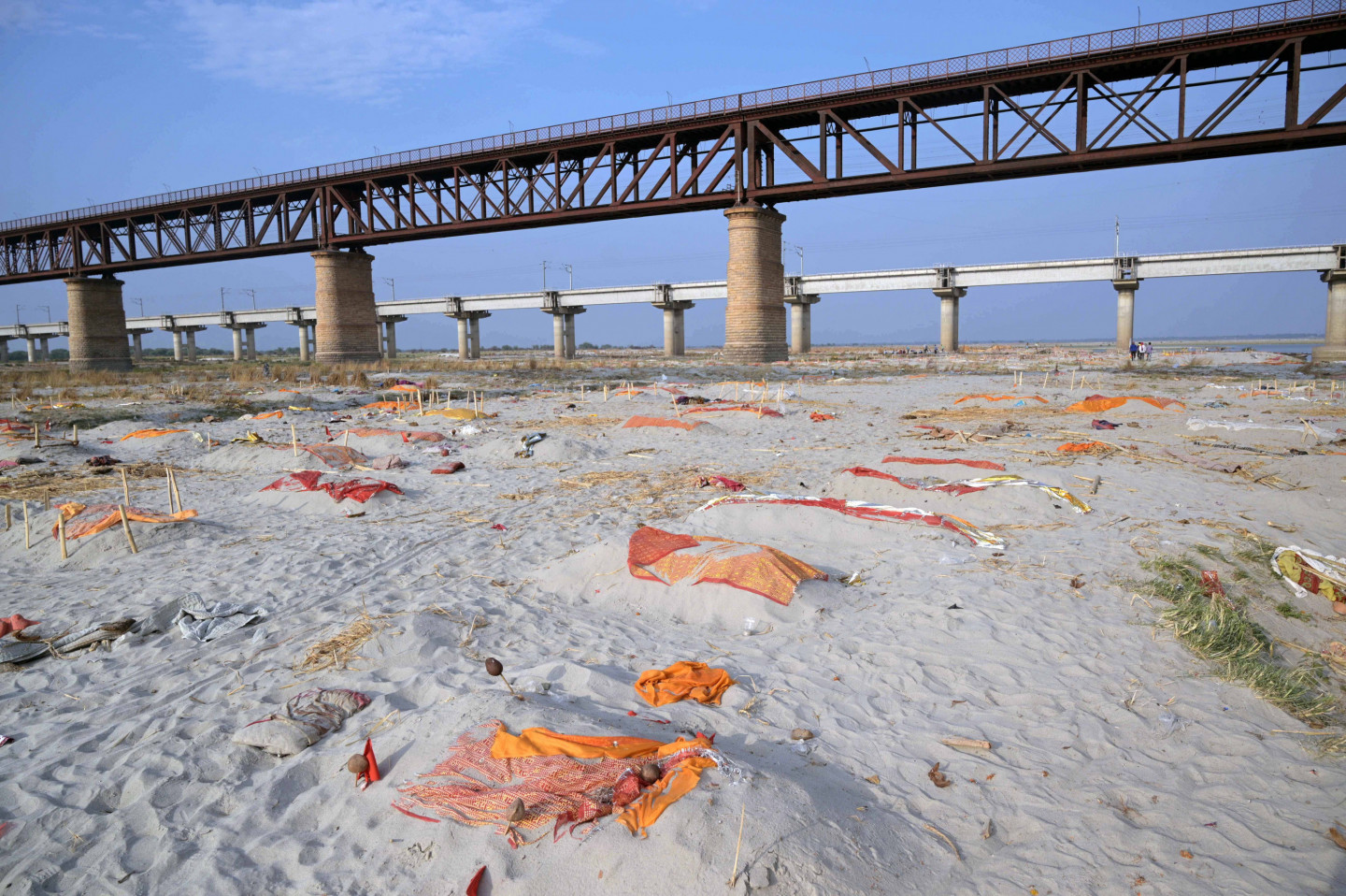 Pieaugot mirstībai pandēmijas laikā, Indijā Gangas upes krastos seklos kapos atrasti aprakti simtiem cilvēku līķu. Mirušo nāves cēlonis nav noskaidrots, bet sociālajos medijos izplatījušās bažas, ka tie varētu būt Covid-19 upuri. Piektdien Prajāgrādžā, Utarpradēšas štatā, lietus atsedza cilvēku mirstīgās atliekas, kas bija apraktas smiltīs upes malā. Lai gan mirušo apglabāšana pie upes notiek jau gadiem ilgi, mirušo skaita pieaugums pandēmijas laikā licis varasiestādēm pievērst lielāku uzmanību šai praksei. Utarpradēšas štata valdības preses pārstāvis šodien noliedza vietējo mediju ziņoto, ka pēdējo divu nedēļu laikā no upēm izvilkti vai upju krastos atrasti vairāk nekā 1000 Covid-19 upuru. Viņš sacīja, ka šiem mirušajiem, visticamāk, nav nekādas saistības ar Covid-19. Viņš skaidroja, ka daži vietējie iedzīvotāji izvēlējušies nekremēt savus aizgājējus, bet atbrīvojušies no tiem upēs vai aprakuši upju krastos.
