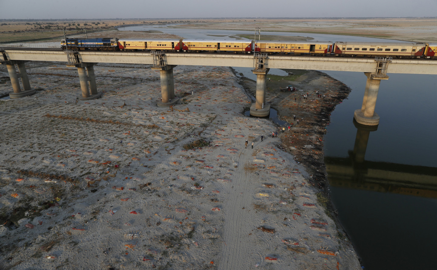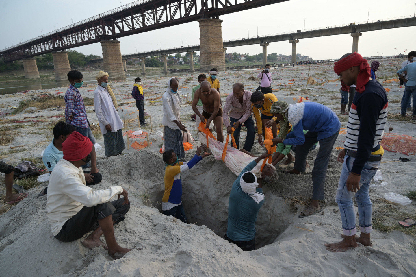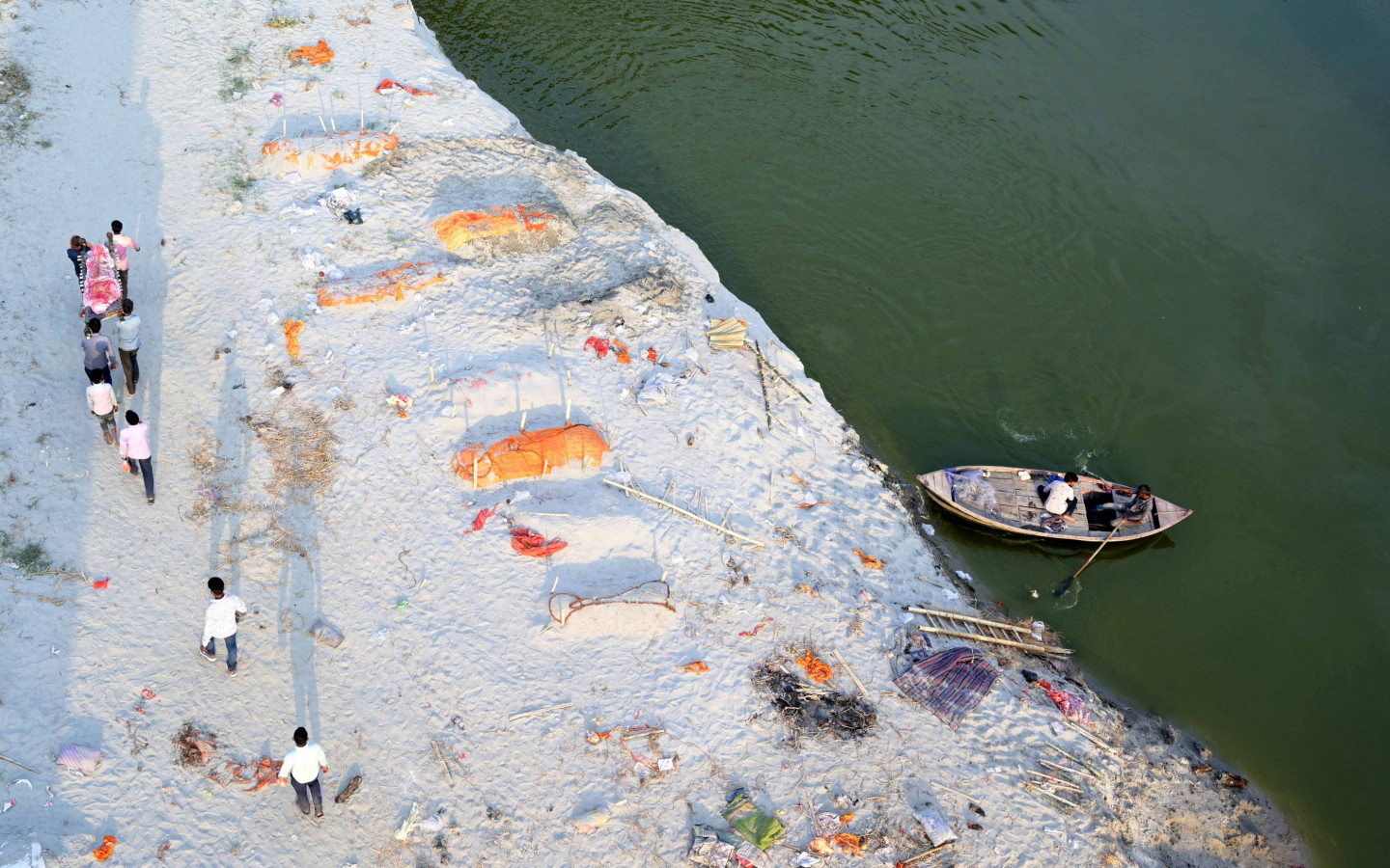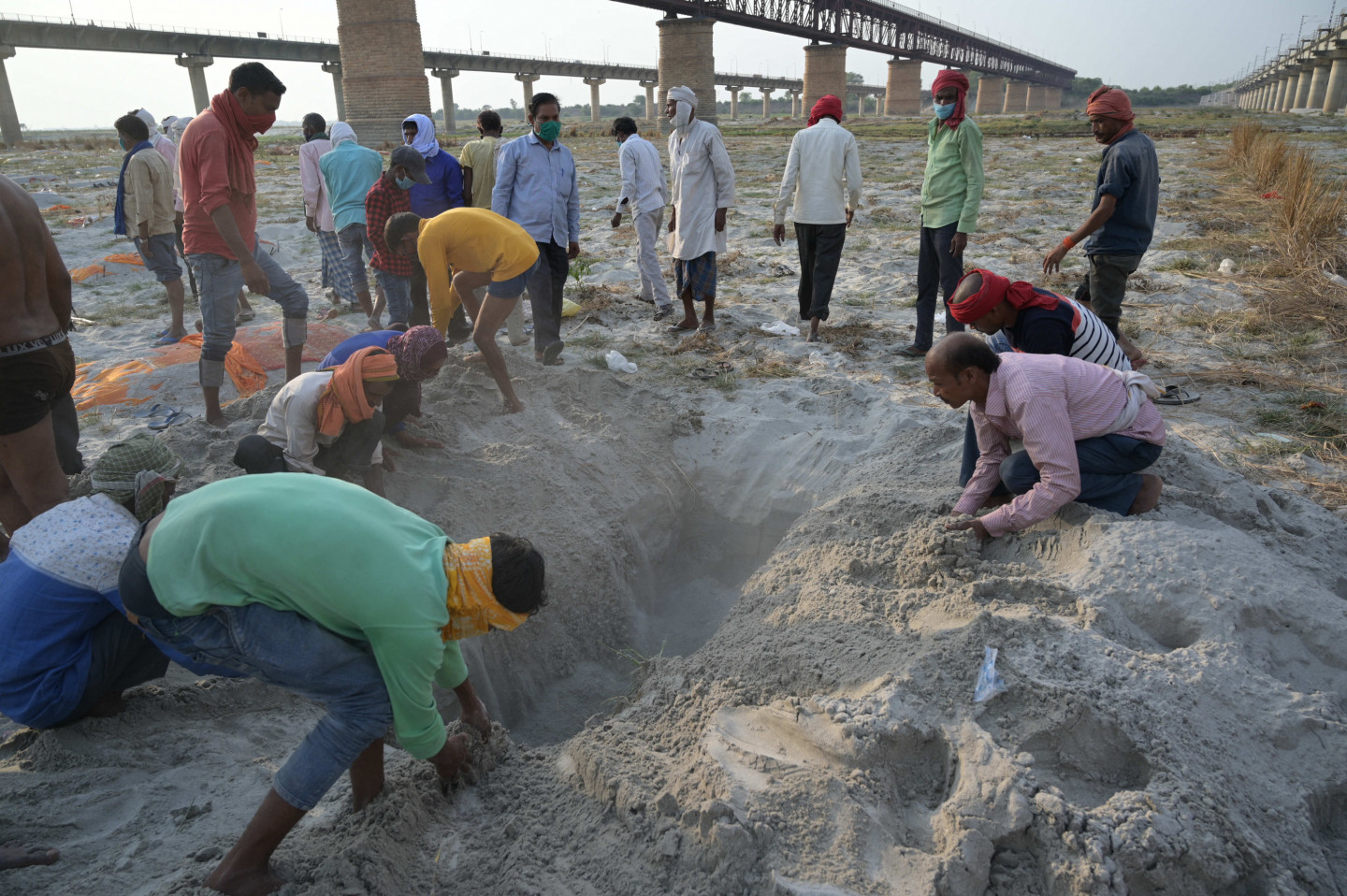 Pieaugot mirstībai pandēmijas laikā, Indijā Gangas upes krastos seklos kapos atrasti aprakti simtiem cilvēku līķu. Mirušo nāves cēlonis nav noskaidrots, bet sociālajos medijos izplatījušās bažas, ka tie varētu būt Covid-19 upuri. Piektdien Prajāgrādžā, Utarpradēšas štatā, lietus atsedza cilvēku mirstīgās atliekas, kas bija apraktas smiltīs upes malā. Lai gan mirušo apglabāšana pie upes notiek jau gadiem ilgi, mirušo skaita pieaugums pandēmijas laikā licis varasiestādēm pievērst lielāku uzmanību šai praksei. Utarpradēšas štata valdības preses pārstāvis šodien noliedza vietējo mediju ziņoto, ka pēdējo divu nedēļu laikā no upēm izvilkti vai upju krastos atrasti vairāk nekā 1000 Covid-19 upuru. Viņš sacīja, ka šiem mirušajiem, visticamāk, nav nekādas saistības ar Covid-19. Viņš skaidroja, ka daži vietējie iedzīvotāji izvēlējušies nekremēt savus aizgājējus, bet atbrīvojušies no tiem upēs vai aprakuši upju krastos.