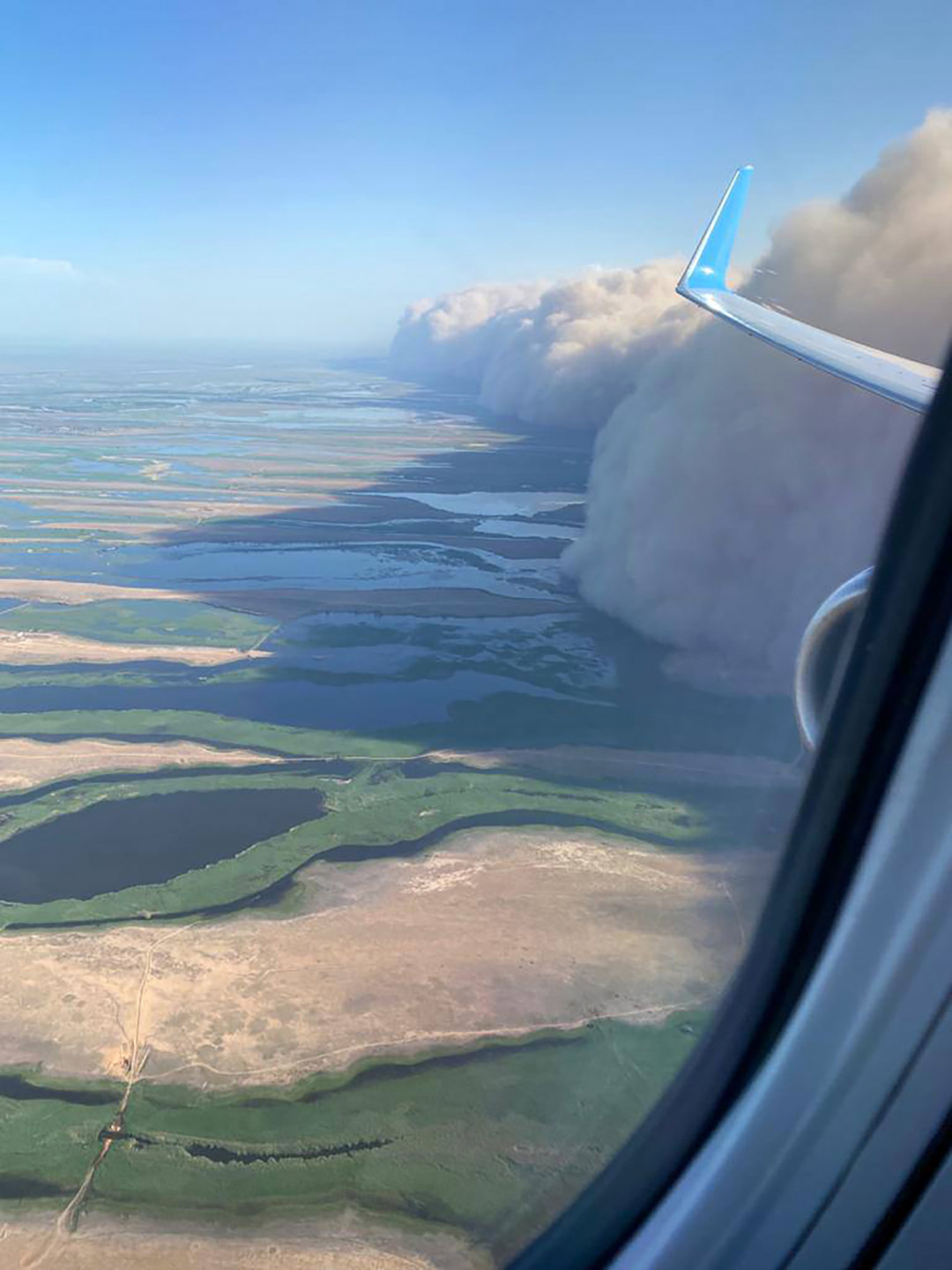 Vakar, 19. maijā, Krievijā, Astrahaņas apgabalā meteorologi prognozēja spēcīgu ziemeļrietumu vēju, kas brāzmās sasniedza līdz pat 20 metrus sekundē. Pateicoties spēcīgajam vējam, netālu no Astrahaņas apagabal izcēlās milzu putekļu vētra.