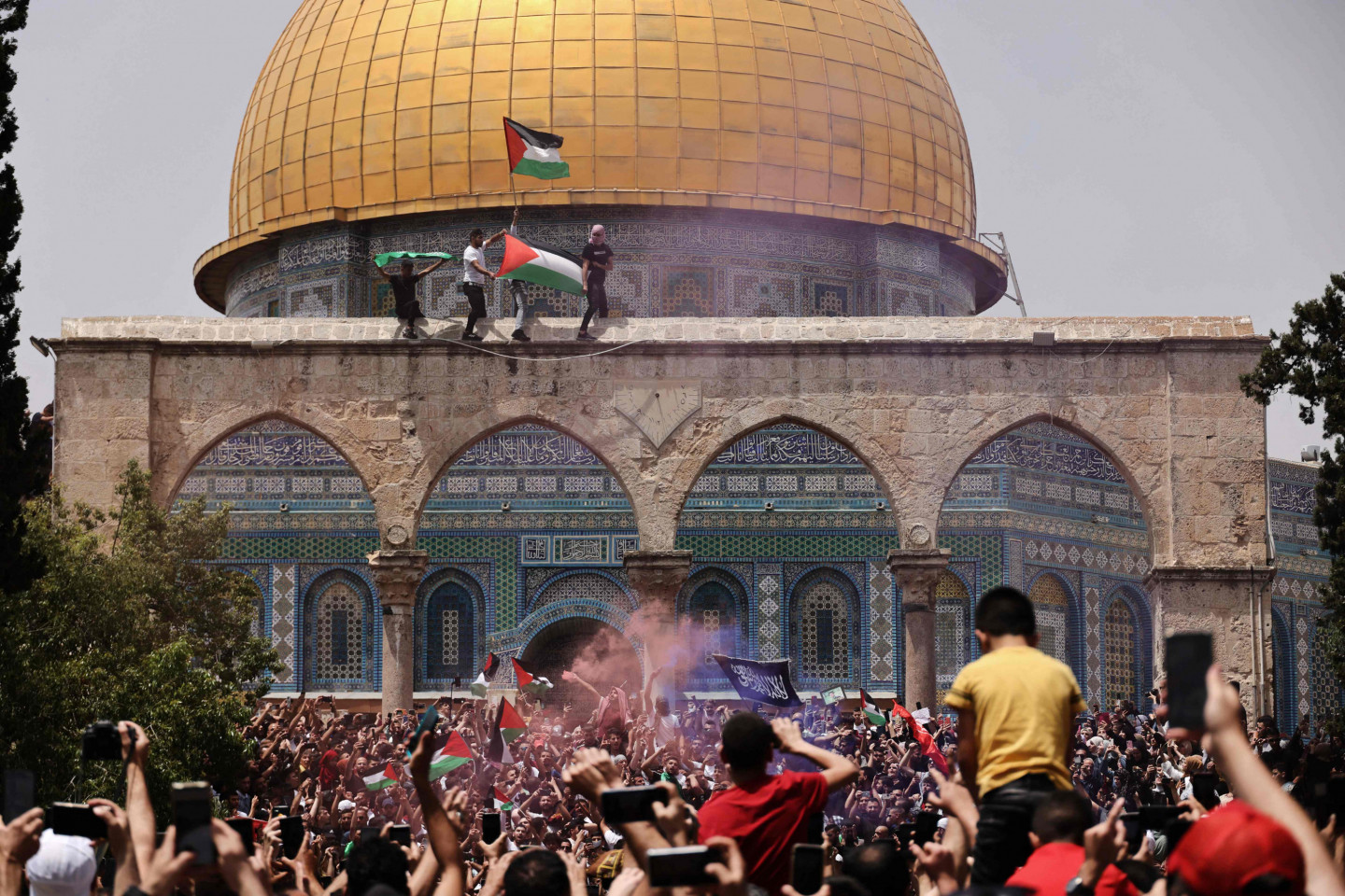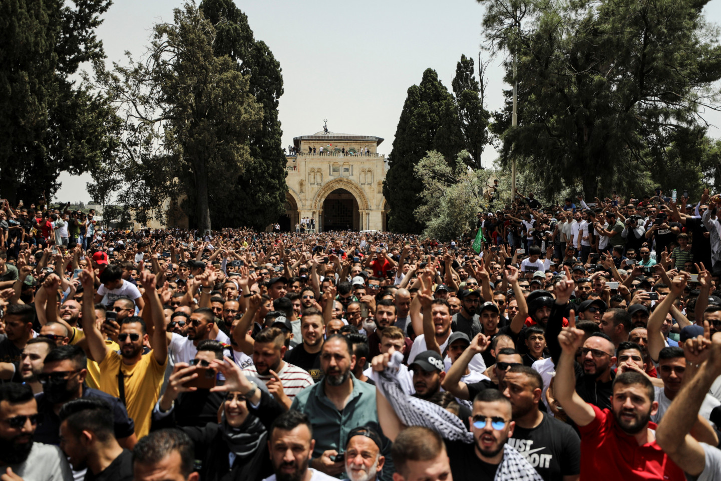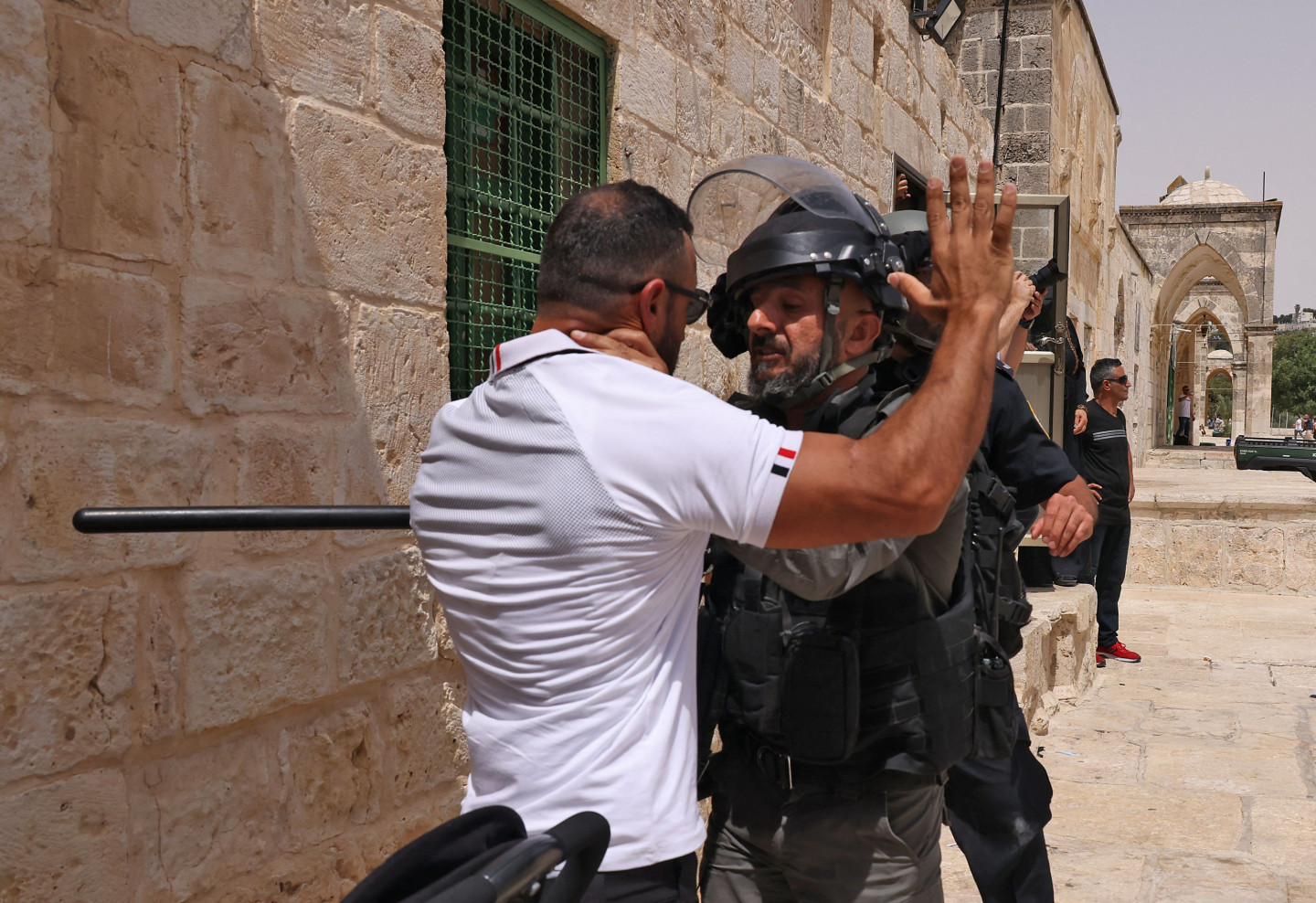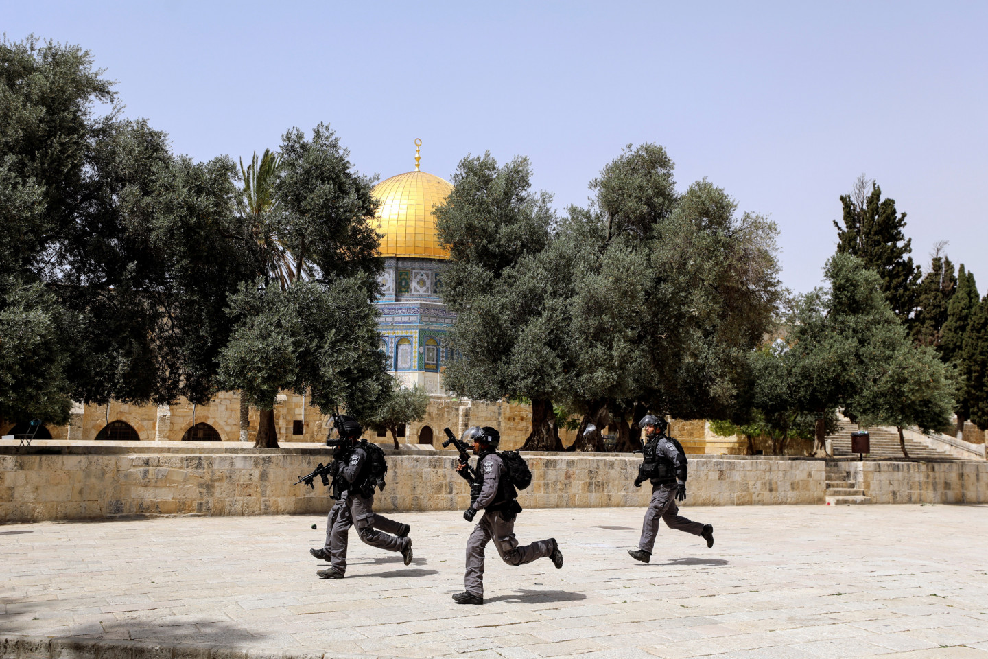 Jeruzalemē Aksas mošejas kompleksā piektdien atkal izcēlušās sadursmes Izraēlas policijas un palestīniešu protestētāju starpā. Izraēlas policijas preses pārstāvis Mikijs Rozenfelds sacīja, ka sadursmes izcēlušās Aksas mošejas esplanādē. Aksas mošeja atrodas Jeruzalemes vecpilsētā, vietā, kuru ebreji dēvē par Tempļa kalnu, bet musulmaņi par Al Haram aš Šarīfu - Cēlo svētnīcu. Mošejas komplekss ir trešā nozīmīgākā musulmaņu svētvieta pēc Mekas un Medīnas un visnozīmīgākā jūdaisma svētvieta, kur atradies Bībelē aprakstītais Jeruzalemes templis. "Simtiem cilvēku apmētāja policistus ar akmeņiem un degbumbām," sacīja Rozenfelds, norādot, ka policija atbildējusi un sākusi izklīdināt pūli. Ziņu aģentūras AFP žurnālisti ziņoja, ka sadursmes turpinās, un policija izmanto gumijas lodes un trokšņa granātas pret neapbruņotiem palestīniešiem, tostarp pret grupu vīriešu, kas vienkārši sarunājušies. Vienam no viņiem pāri plecam bijis pārsviests lūgšanu paklājiņš. Pirms divām nedēļām līdzīgas sadursmes Aksas mošejas kompleksā un ebreju kolonistu draudi anektētajā Austrumjeruzalemē izlikt no mājām palestīniešus noveda pie karadarbības izcelšanās starp Gazas joslā valdošo islāmistu kustību "Hamas" un Izraēlas armiju. Kopš 10.maija karadarbībā Izraēlas gaisa triecienos tika nogalināti apmēram 230 palestīniešu Gazas joslā, bet no Gazas joslas raidītas raķetes nogalināja 12 cilvēkus Izraēlā. Naktī uz piektdienu abas puses vienojās par pamieru. Palestīniešu Sarkanais Pusmēness ziņoja, ka šodien sadursmēs pie Aksas mošejas ievainots 21 cilvēks, no kuriem divi hospitalizēti. Palestīniešu pašpārvalde nosodīja "Izraēlas okupācijas spēku iebrukumu Aksas mošejā pēc piektdienas lūgšanām un viņu uzbrukumu ticīgajiem". Rietumkrastā pēc piektdienas lūgšanām simtiem cilvēku vairākās pilsētās sapulcējās, lai atzīmētu Izraēlas gaisa uzlidojumu pārtraukšanu Gazas joslai. Sarkanais Pusmēness ziņoja, ka vairākās vietās Izraēlas drošības spēki izmantojuši pret cilvēku pūļiem gumijas un īstas lodes, trokšņa granātas un asaru gāzi, kā rezultātā ievainoti vairāki desmiti cilvēku. Avots: LETA