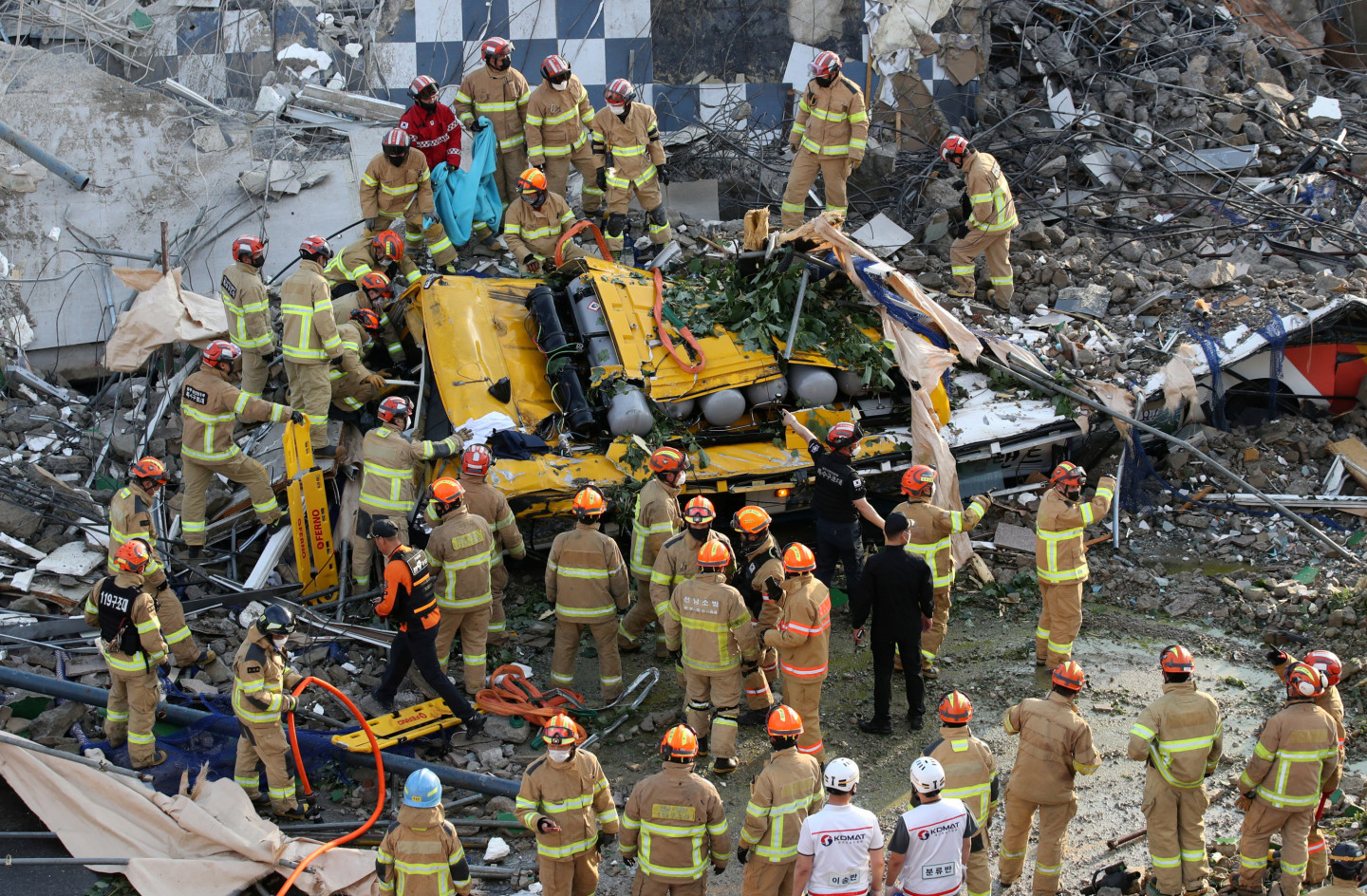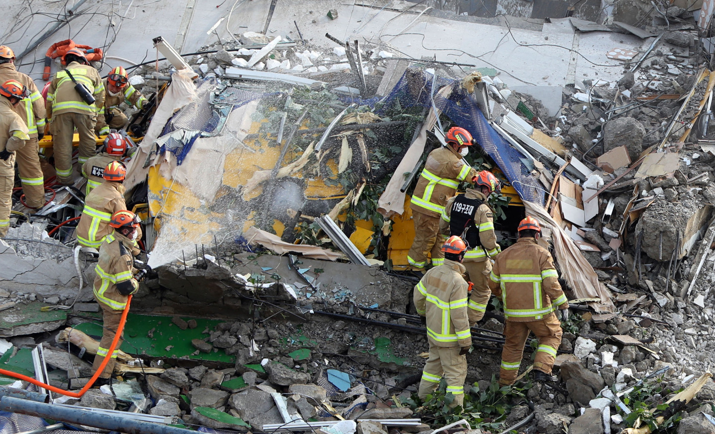 Dienvidkorejā ir gājuši bojā vismaz deviņi cilvēki, kad nojaukšanā esoša piecstāvu ēka pēkšņi sagruva, sadragājot autobusu, paziņoja amatpersonas. Katastrofa notika trešdien Gvandžu pilsētā uz dienvidrietumiem no Seulas, kad autobuss ar 17 cilvēkiem bija apstājies nojaucamās ēkas priekšā. Deviņi no autobusa pasažieriem gāja bojā, bet pārējie astoņi tika nopietni ievainoti, informēja Nacionālā ugunsdzēsības aģentūra. Visi ēkas nojaukšanā strādājošie bija evakuēti pirms tās sagrūšanas. Ēkas sagrūšanas cēlonis vēl nav noskaidrots. Policija ir sākusi izmeklēt šo lietu. Lielākā mierlaika katastrofa Dienvidkorejā notika 1995.gadā, kad vairāk nekā 500 cilvēku gāja bojā, sagrūstot lielveikalam. Avots: LETA